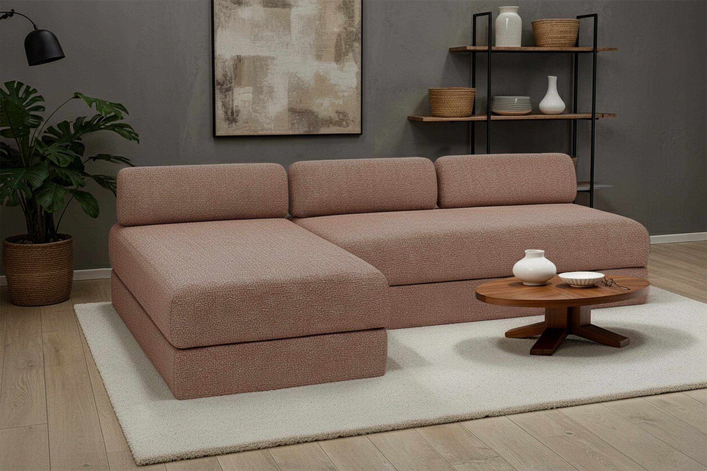 Canapé d'angle modulable et convertible 6 places - Tissu tweed - Rouge