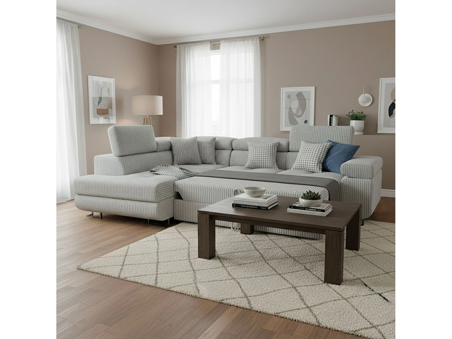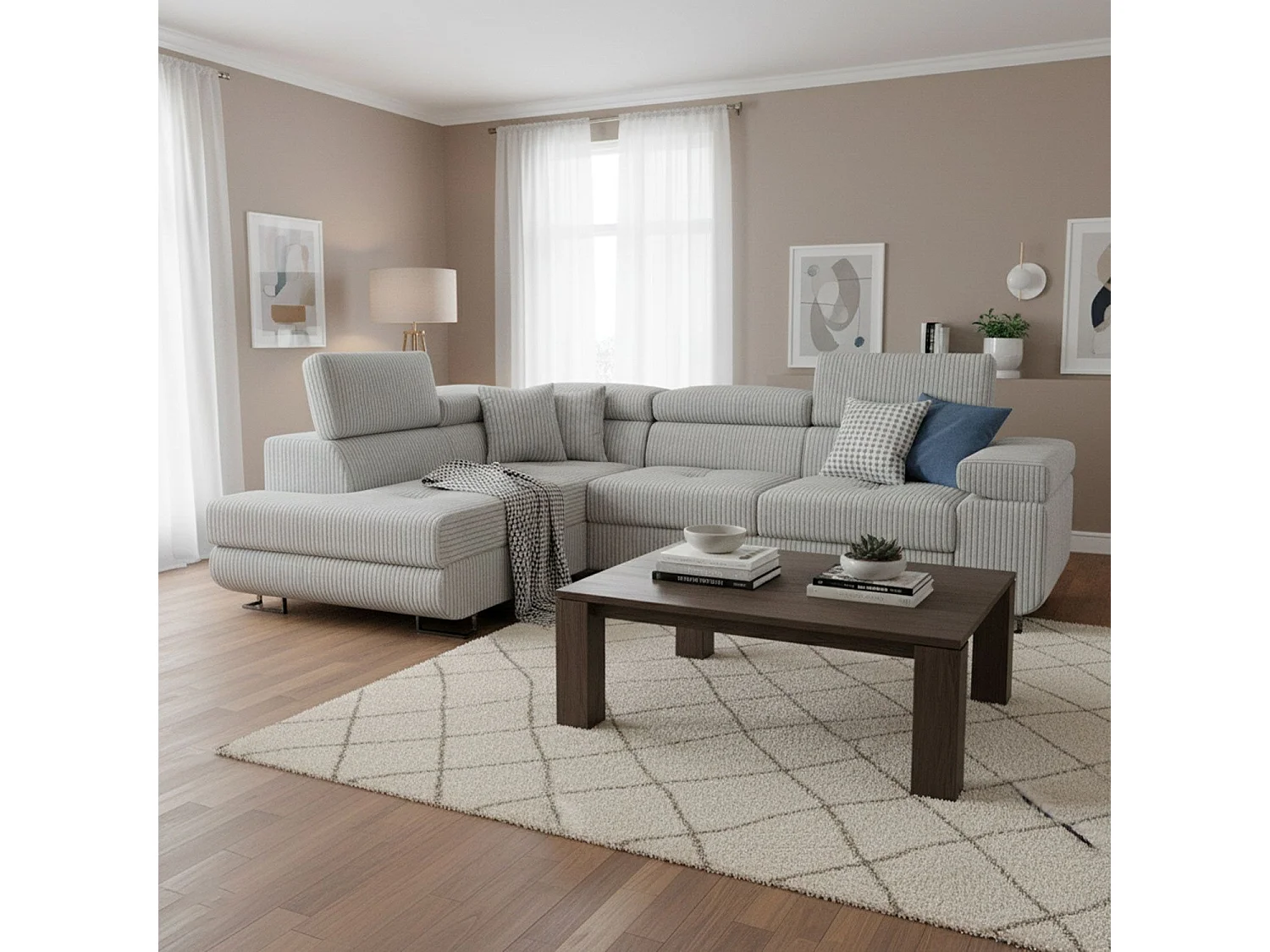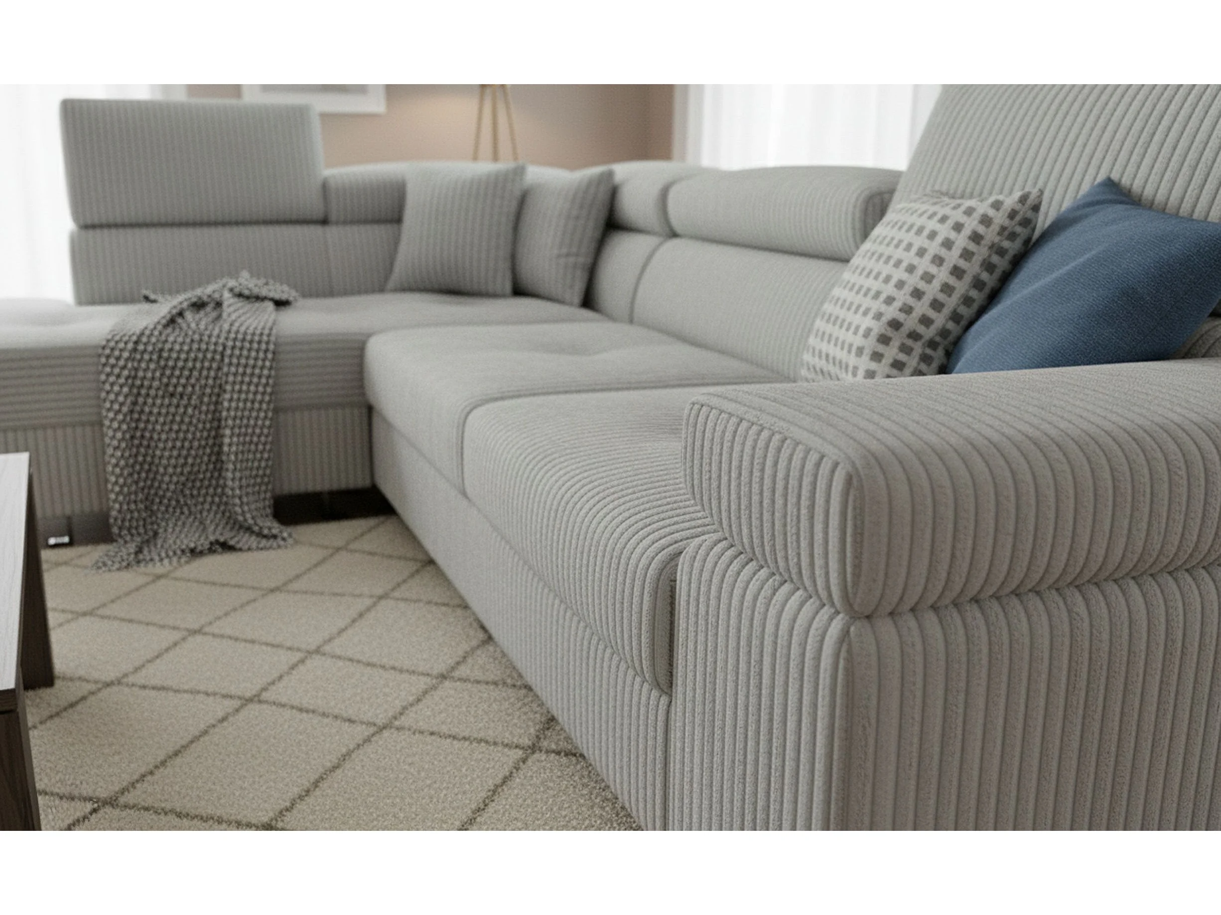 Canapé d'angle convertible Antoni avec têtières relevables angle à gauche Velours côtelé Gris