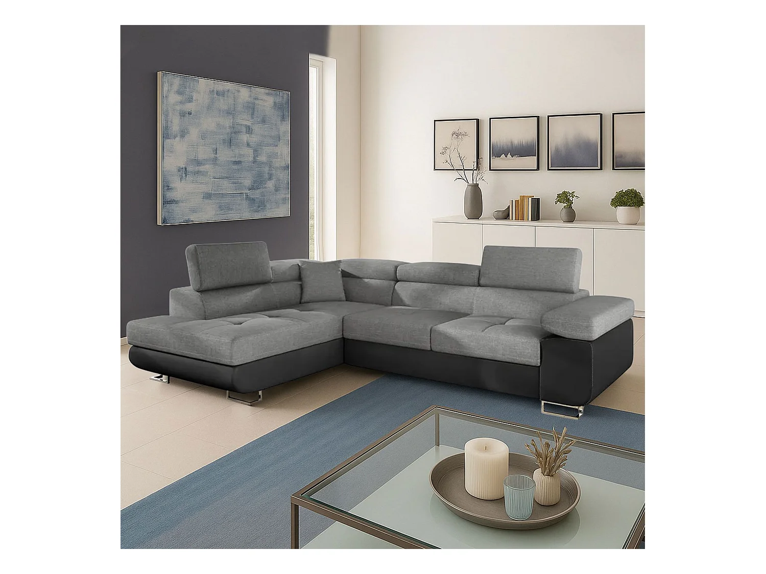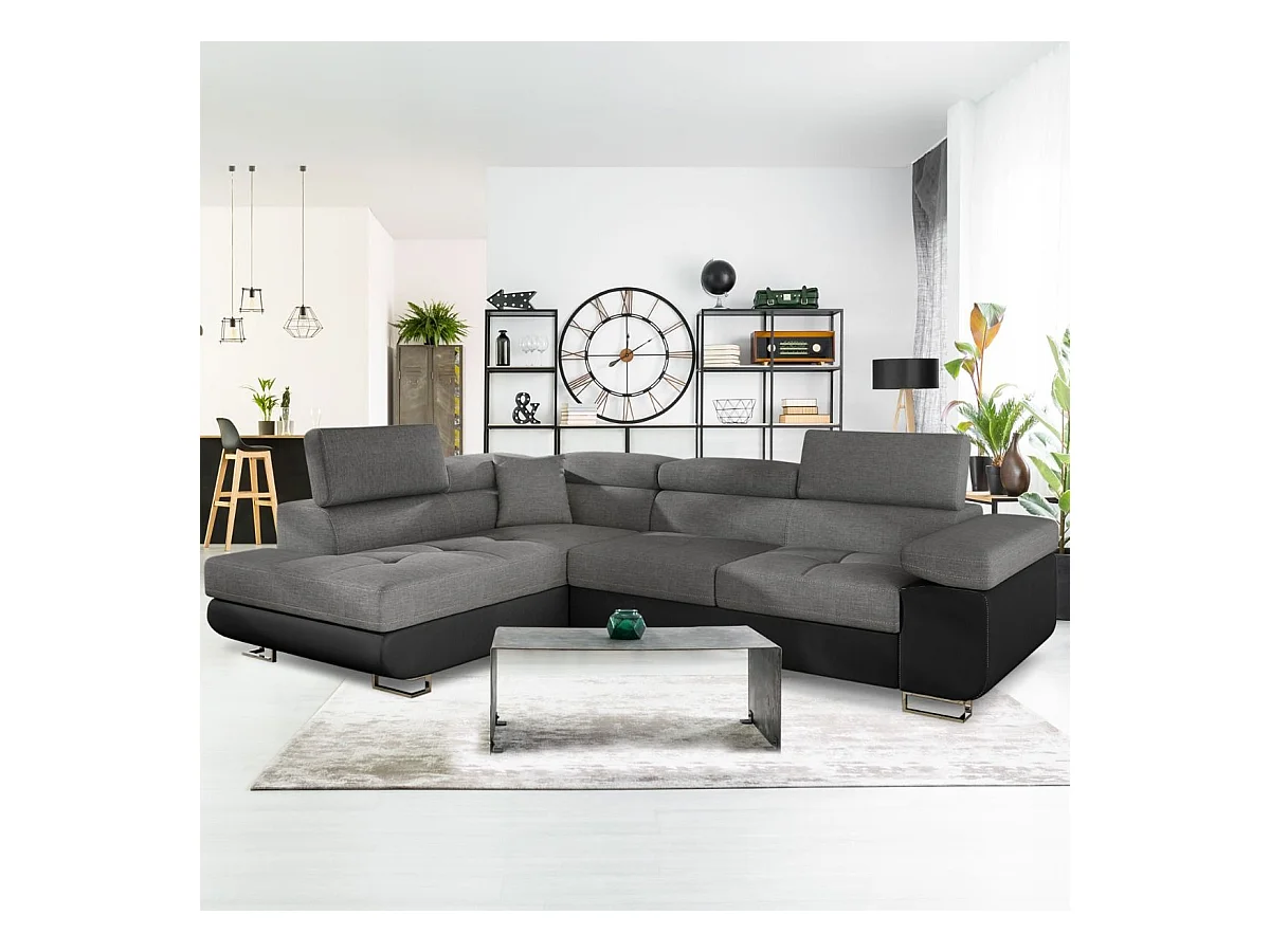 Canapé Convertible d'Angle Gauche "Toms" 275cm Gris