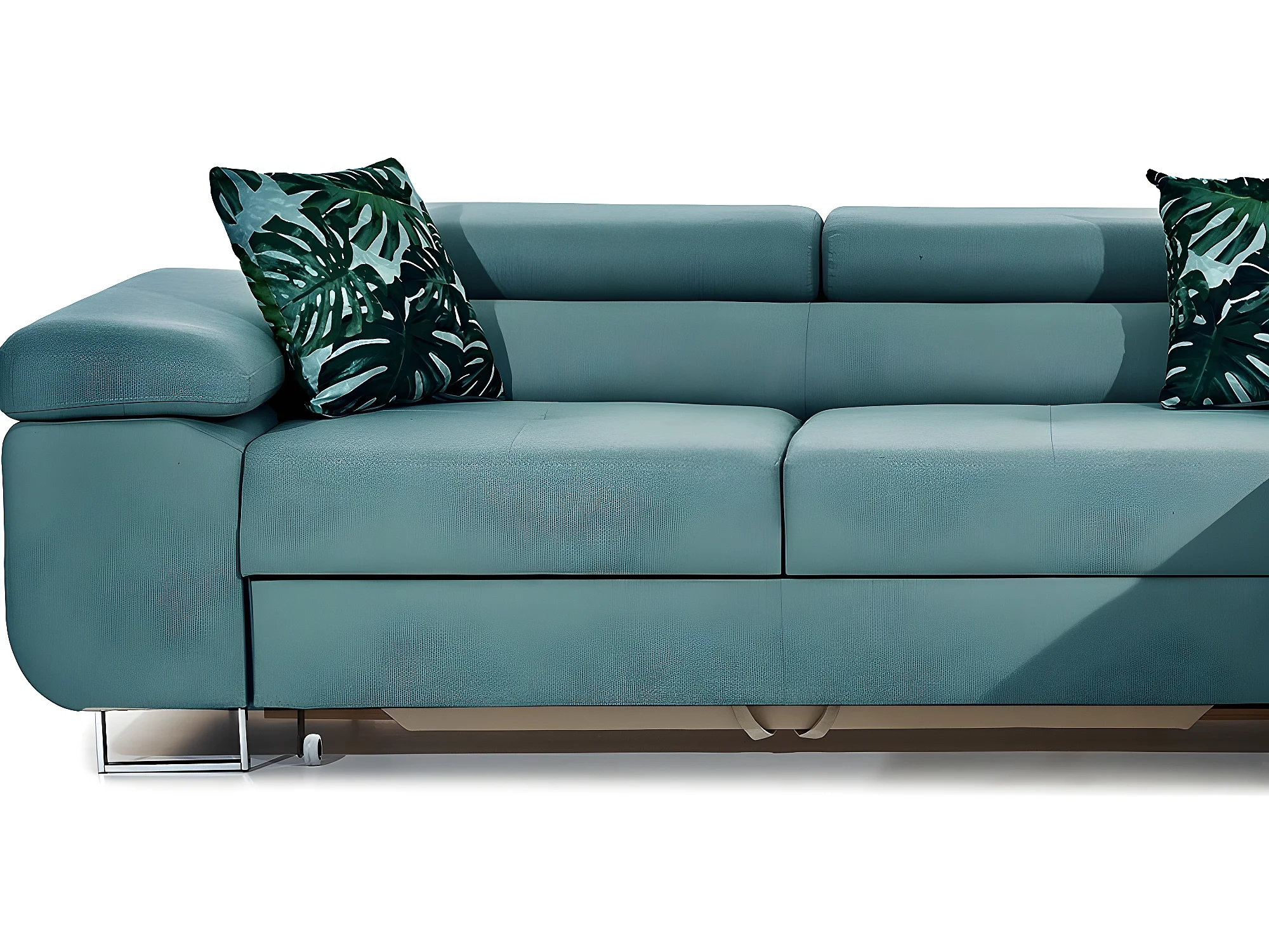 Canapé d'angle convertible ARMEL en tissu luxe 5 places, turquoise, avec coffre, angle droit (vu de face)