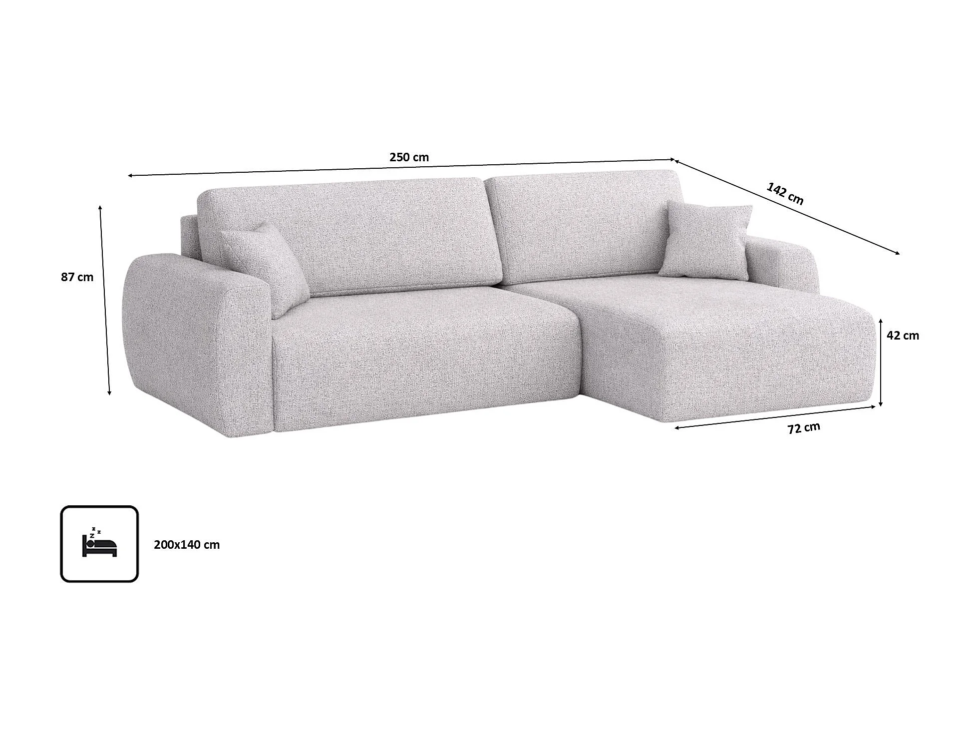 Canapé d'angle convertible avec coffre de rangement Ariel L, Chenille, tissu Artico, Ciment, côté droit