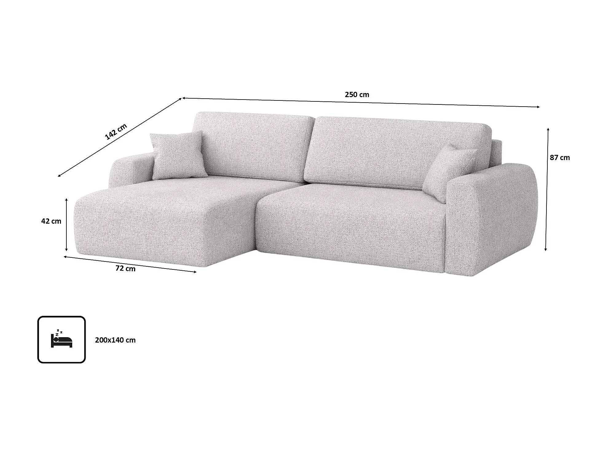 Canapé d'angle convertible avec coffre de rangement Ariel L, Chenille, tissu Artico, Ciment, côté gauche