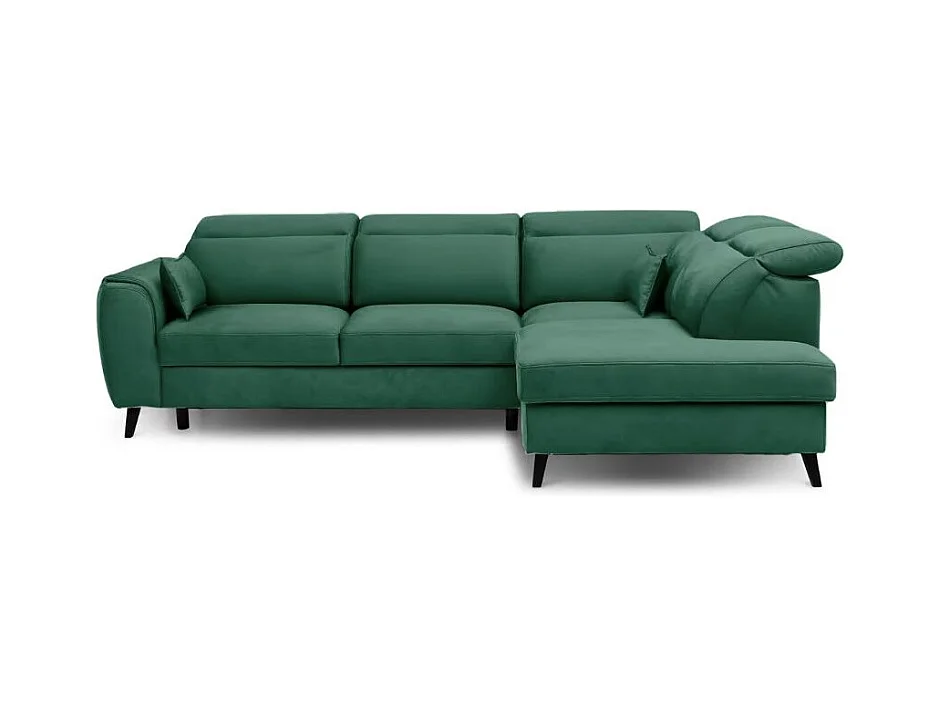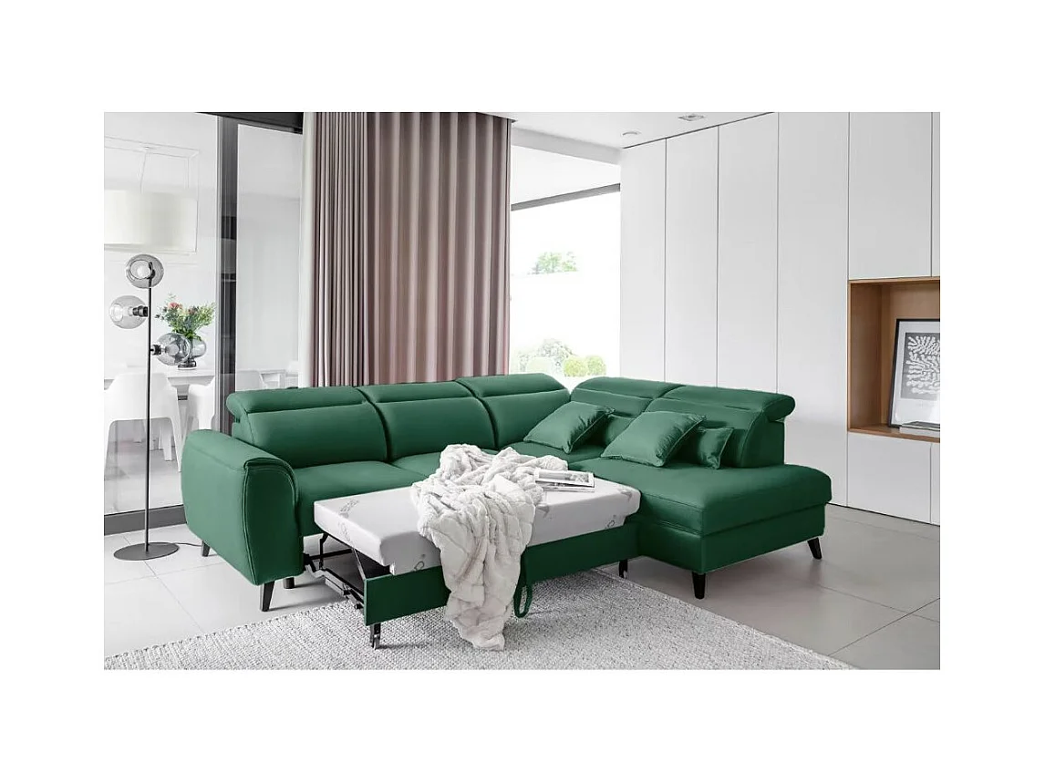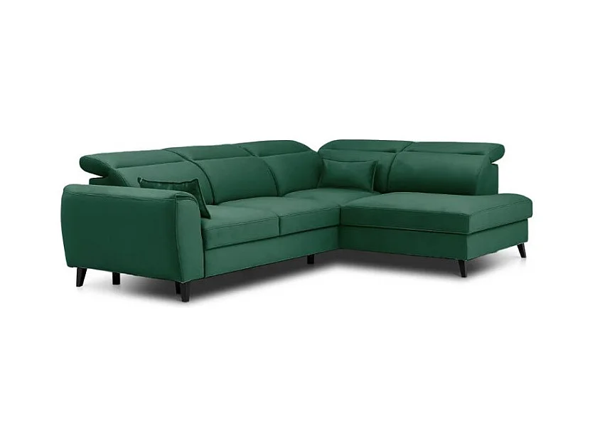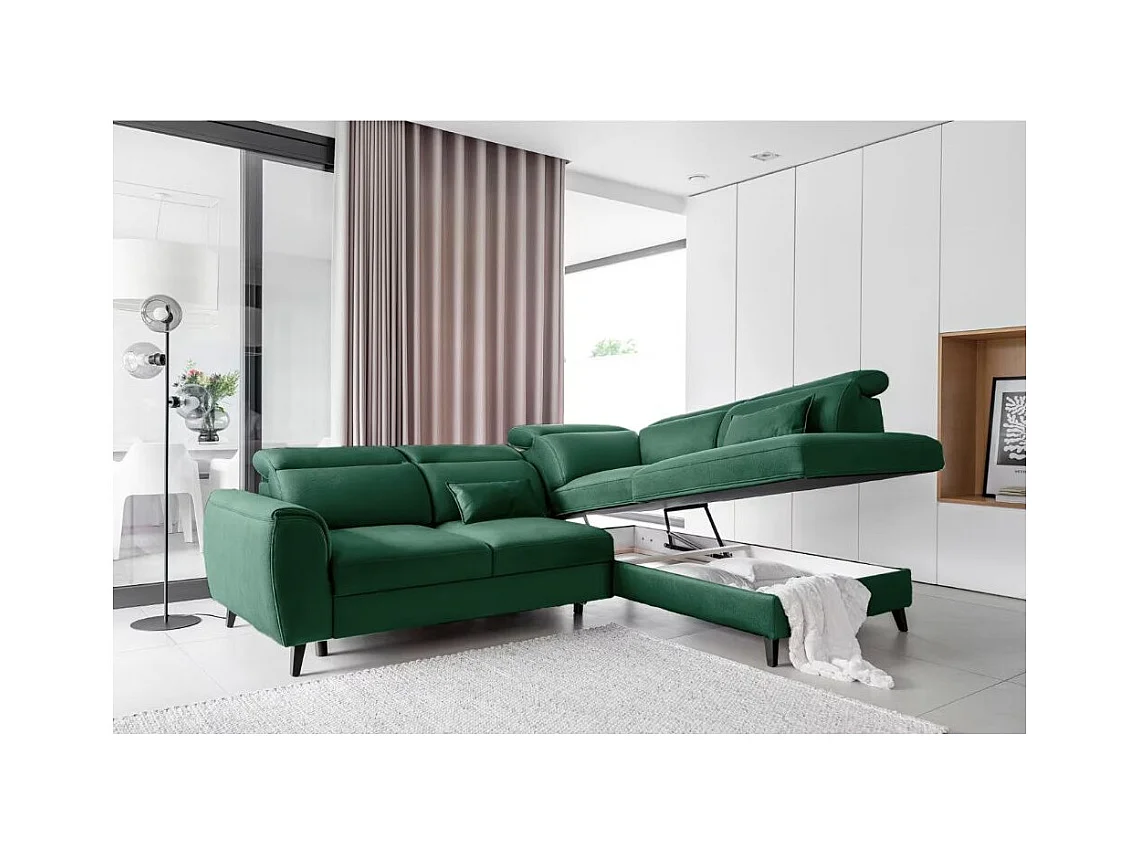 Canapé d'angle convertible avec rangement tissu NOBLESSE - Pieds bois noir-Vert-angle droit