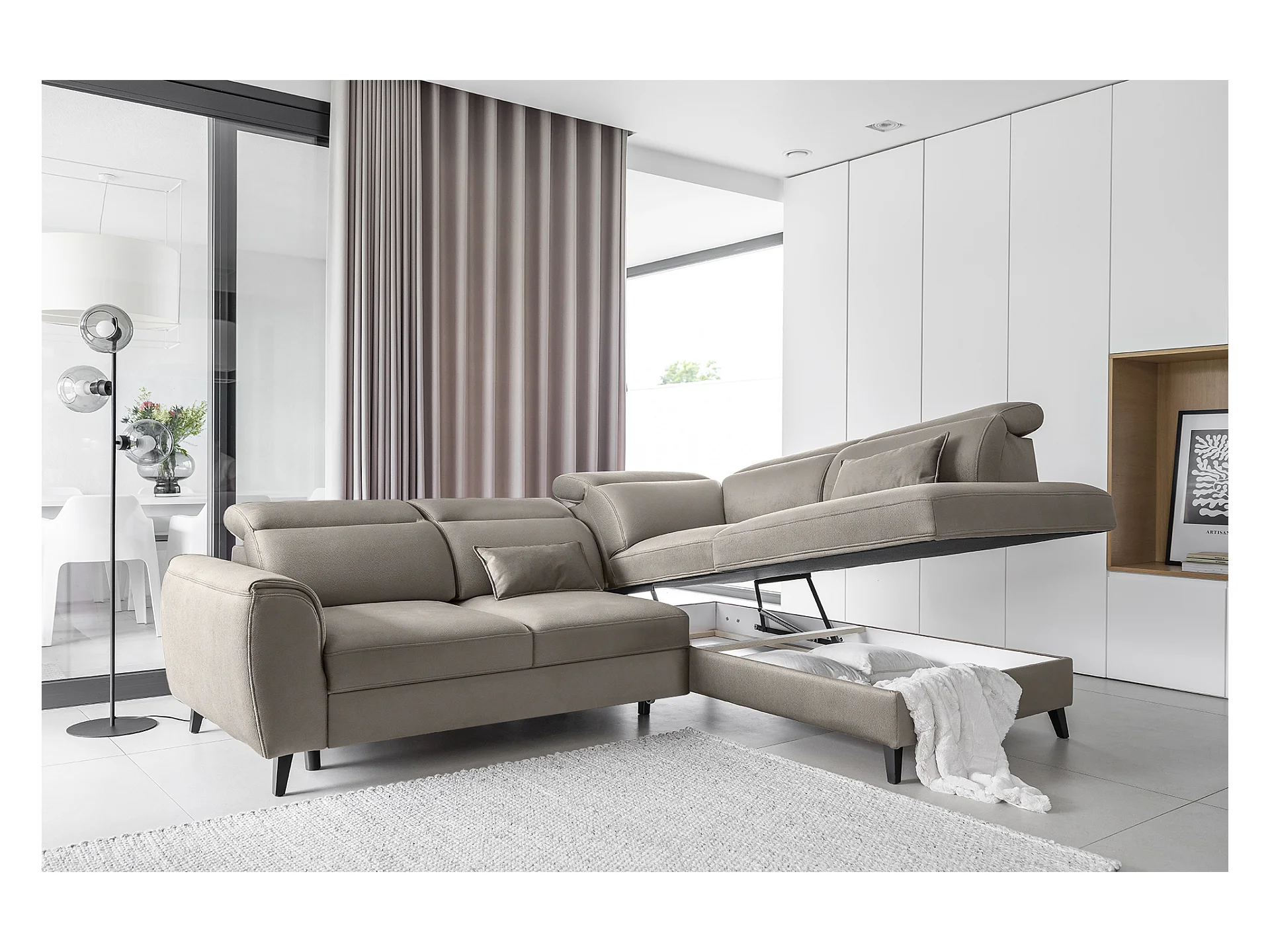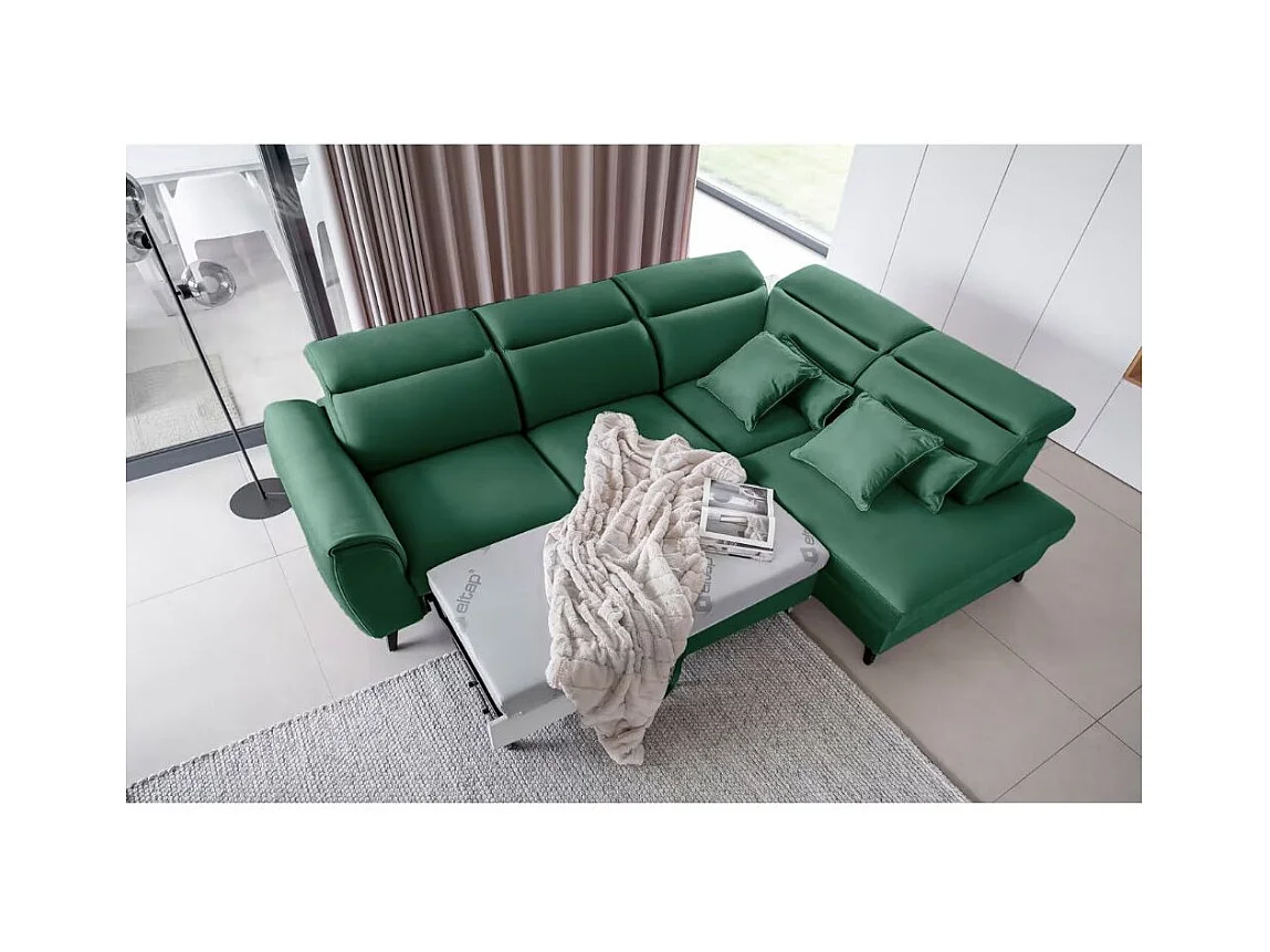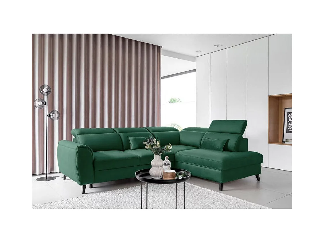Canapé d'angle convertible avec rangement tissu NOBLESSE - Pieds bois noir-Vert-angle droit