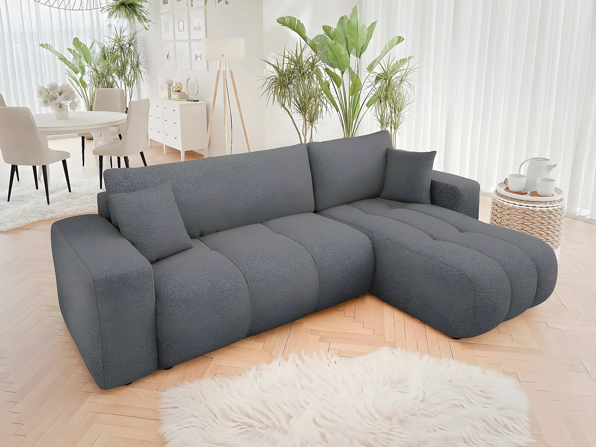 Canapé d'angle convertible bouclette "Larow" - 3 places - Anthracite