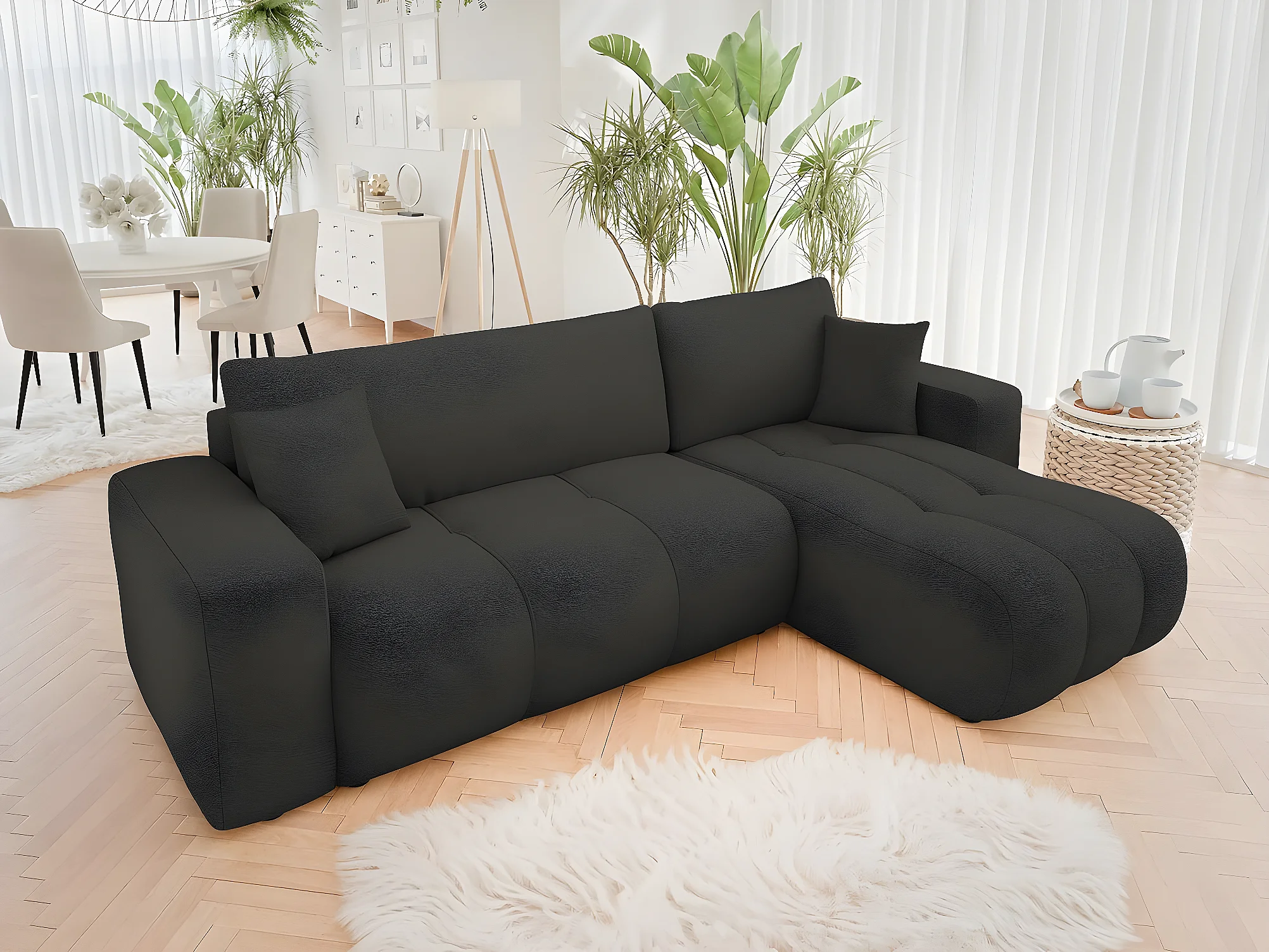 Canapé d'angle convertible bouclette "Larow" - 3 places - Gris anthracite