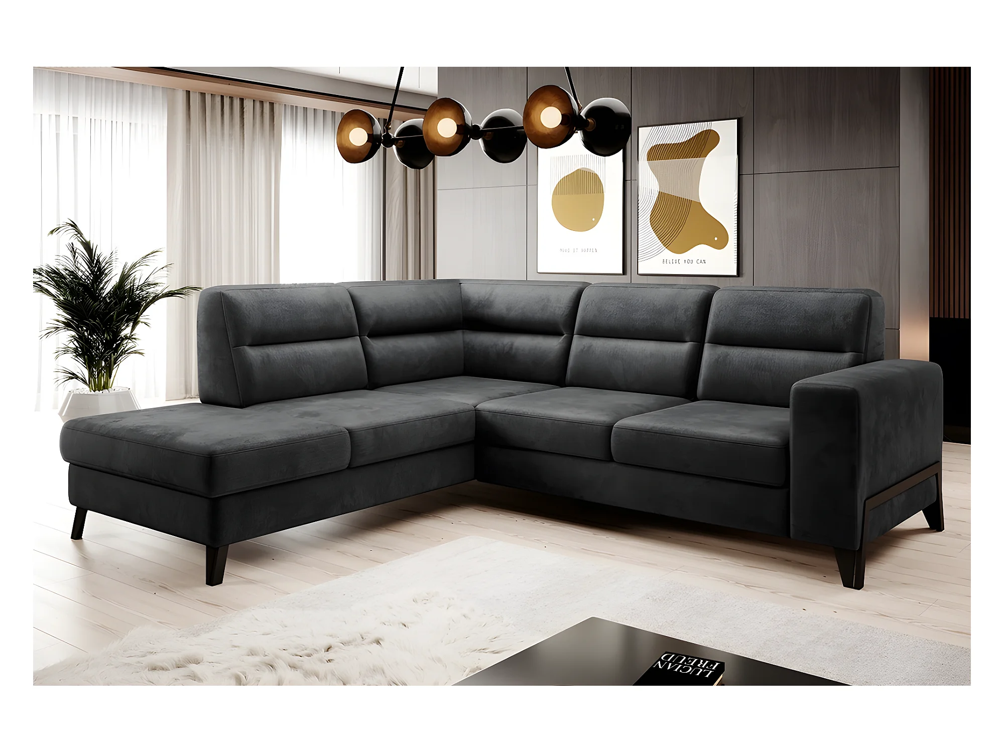Canapé d'angle convertible - CASTA VELOURS - en tissu Luxe, anthracite, 5/6 places, angle gauche (vu de face)