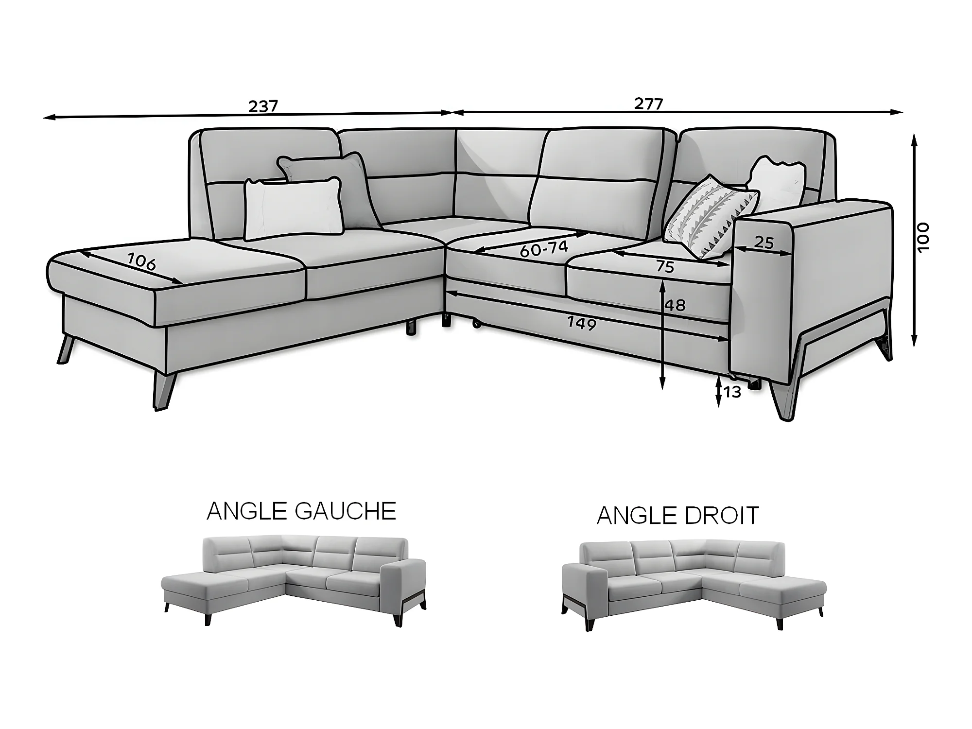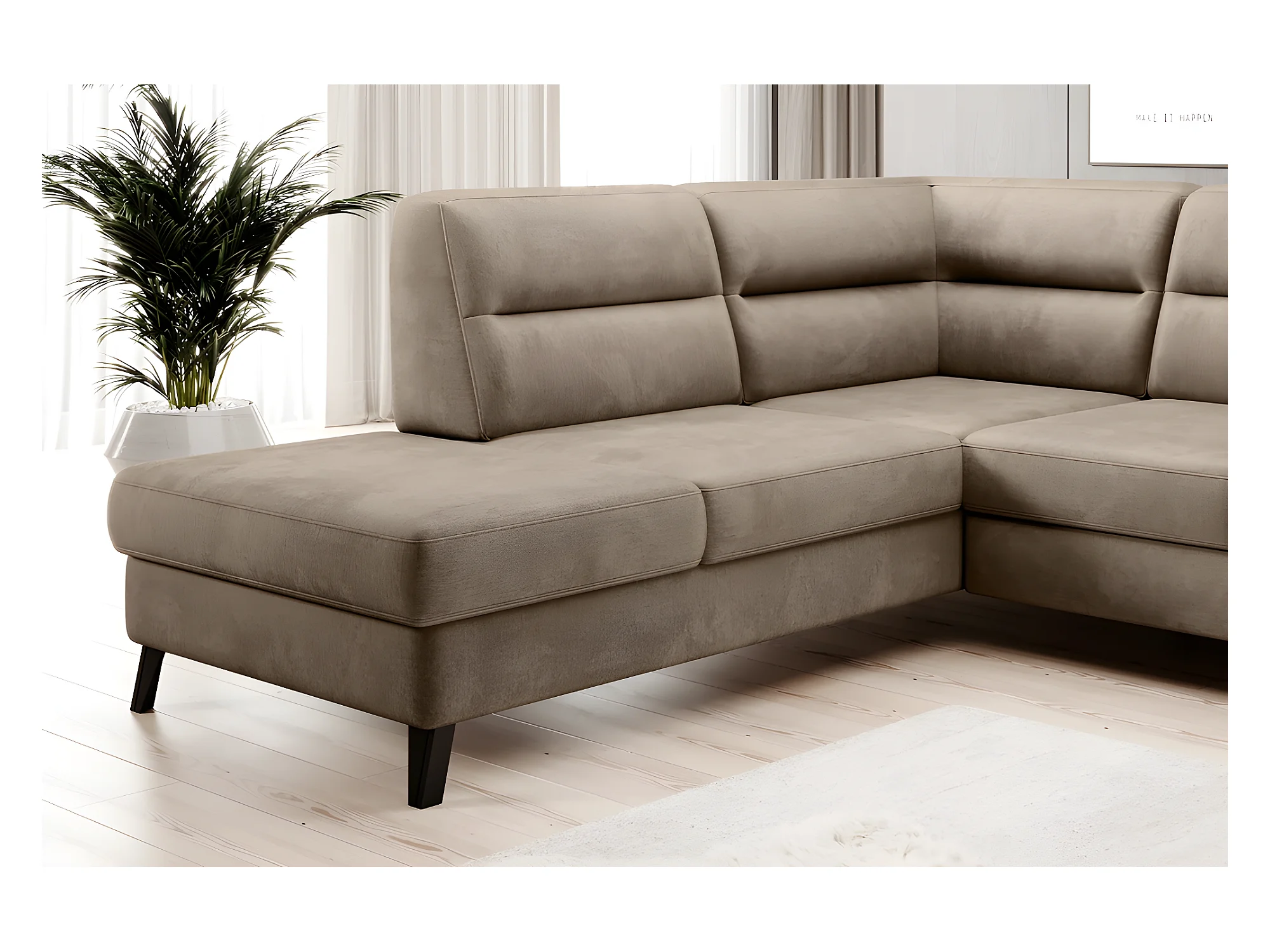 Canapé d'angle convertible - CASTA VELOURS - en tissu Luxe, beige, 5/6 places, angle gauche (vu de face)
