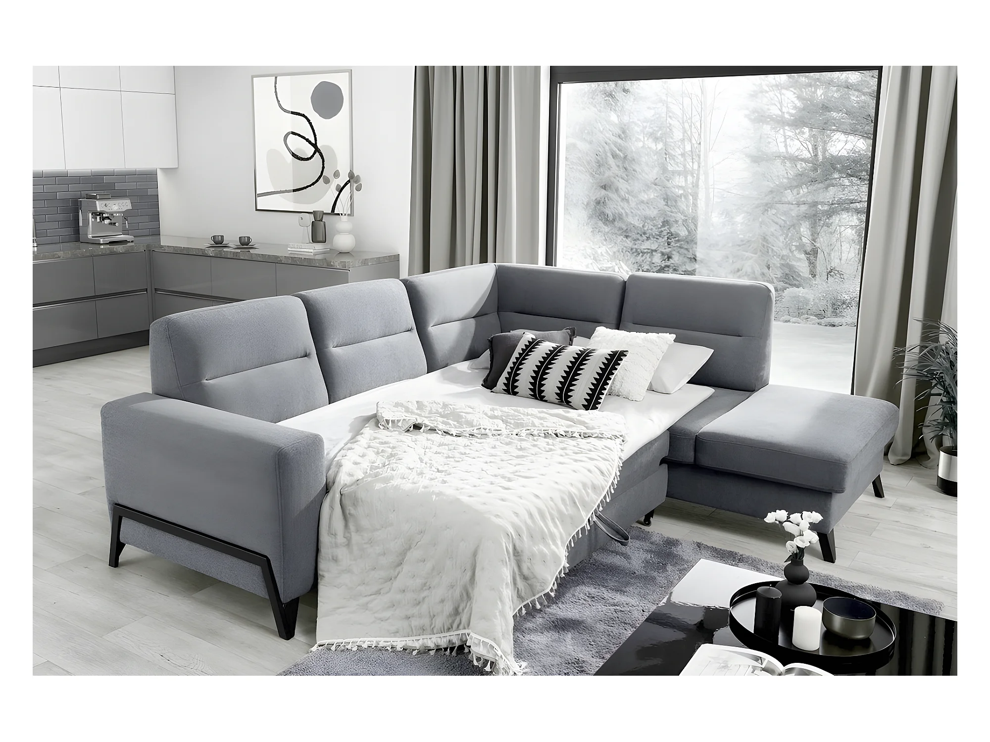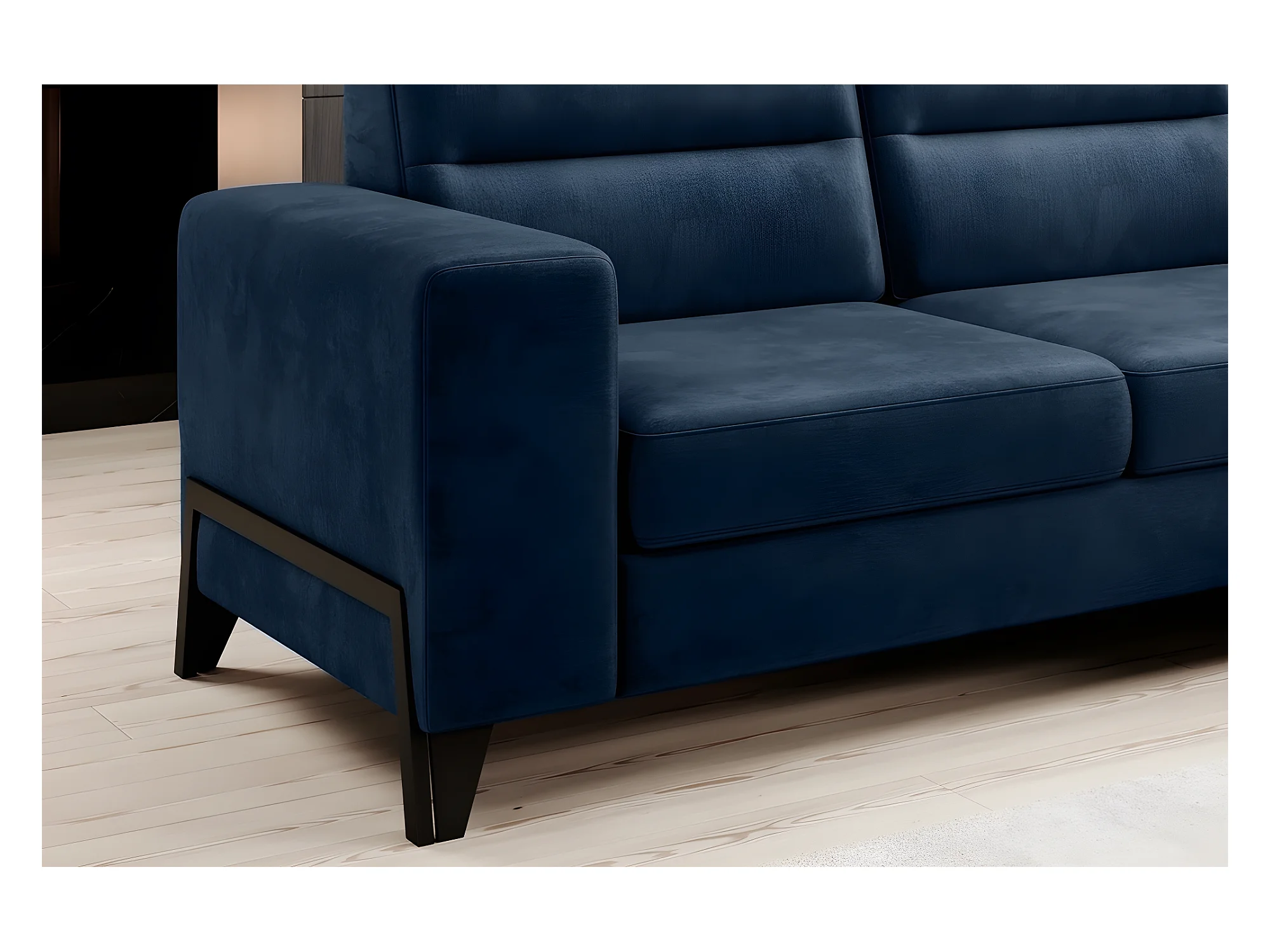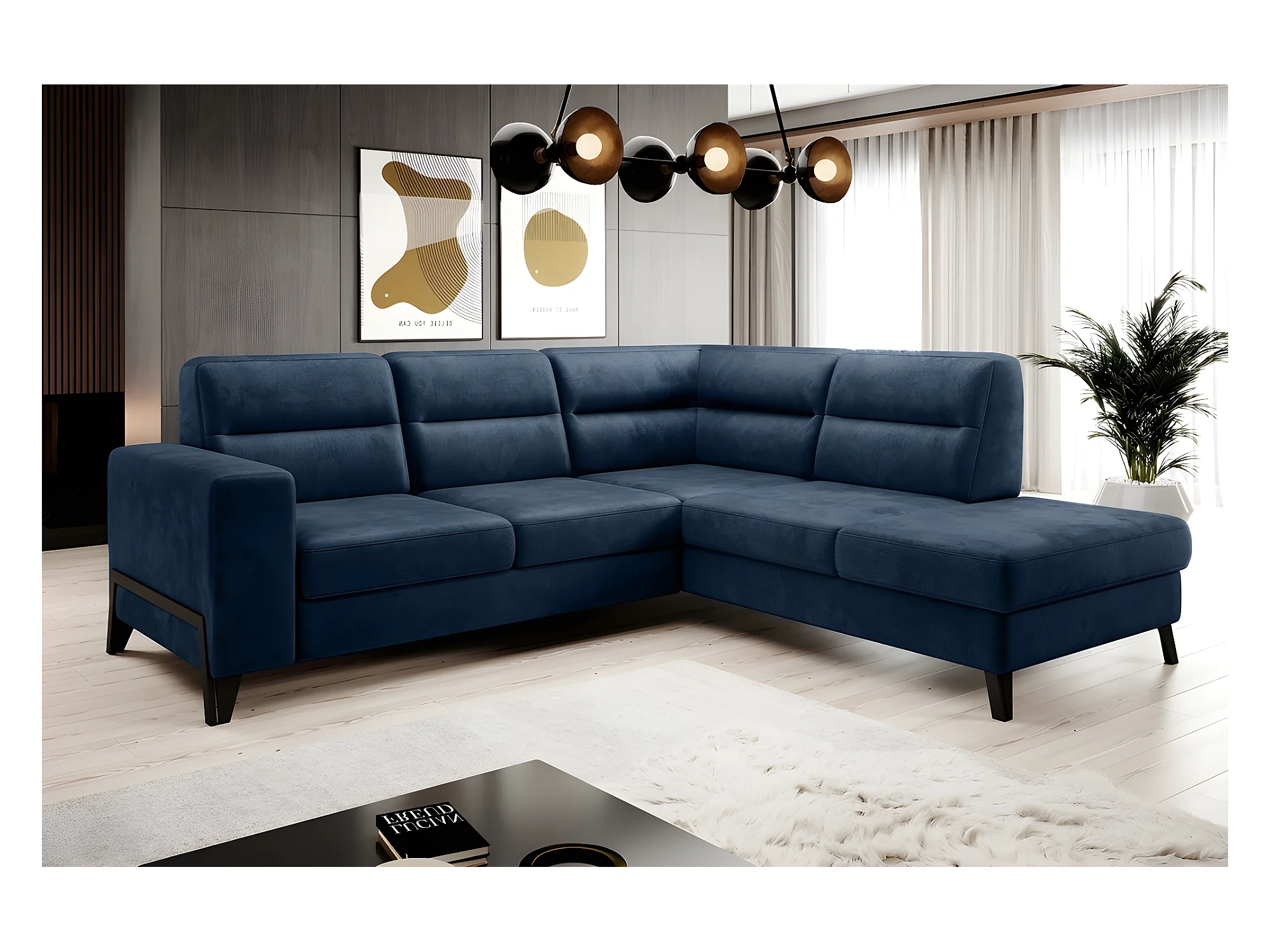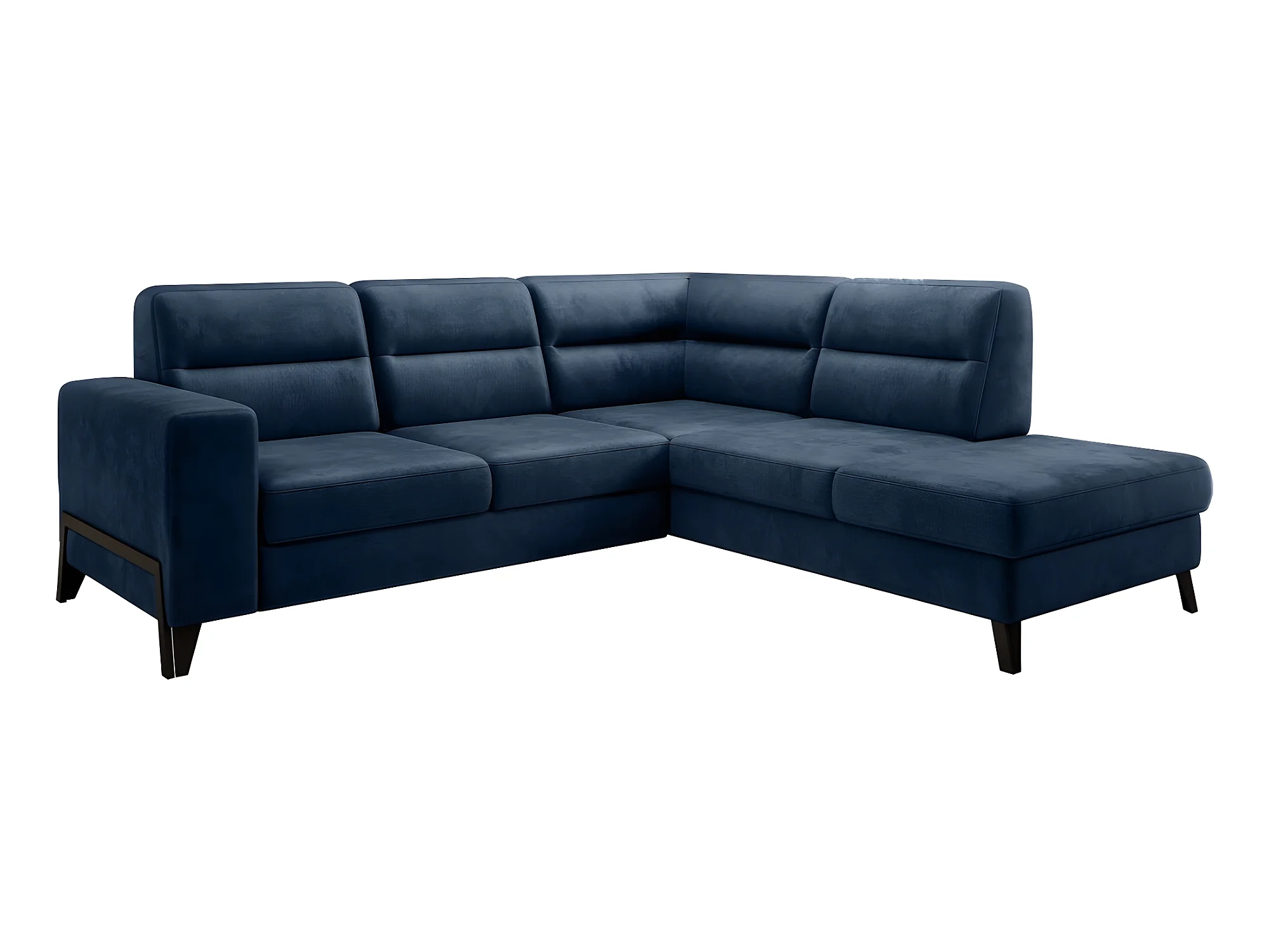 Canapé d'angle convertible - CASTA VELOURS - en tissu Luxe, bleu, 5/6 places, angle droit (vu de face)