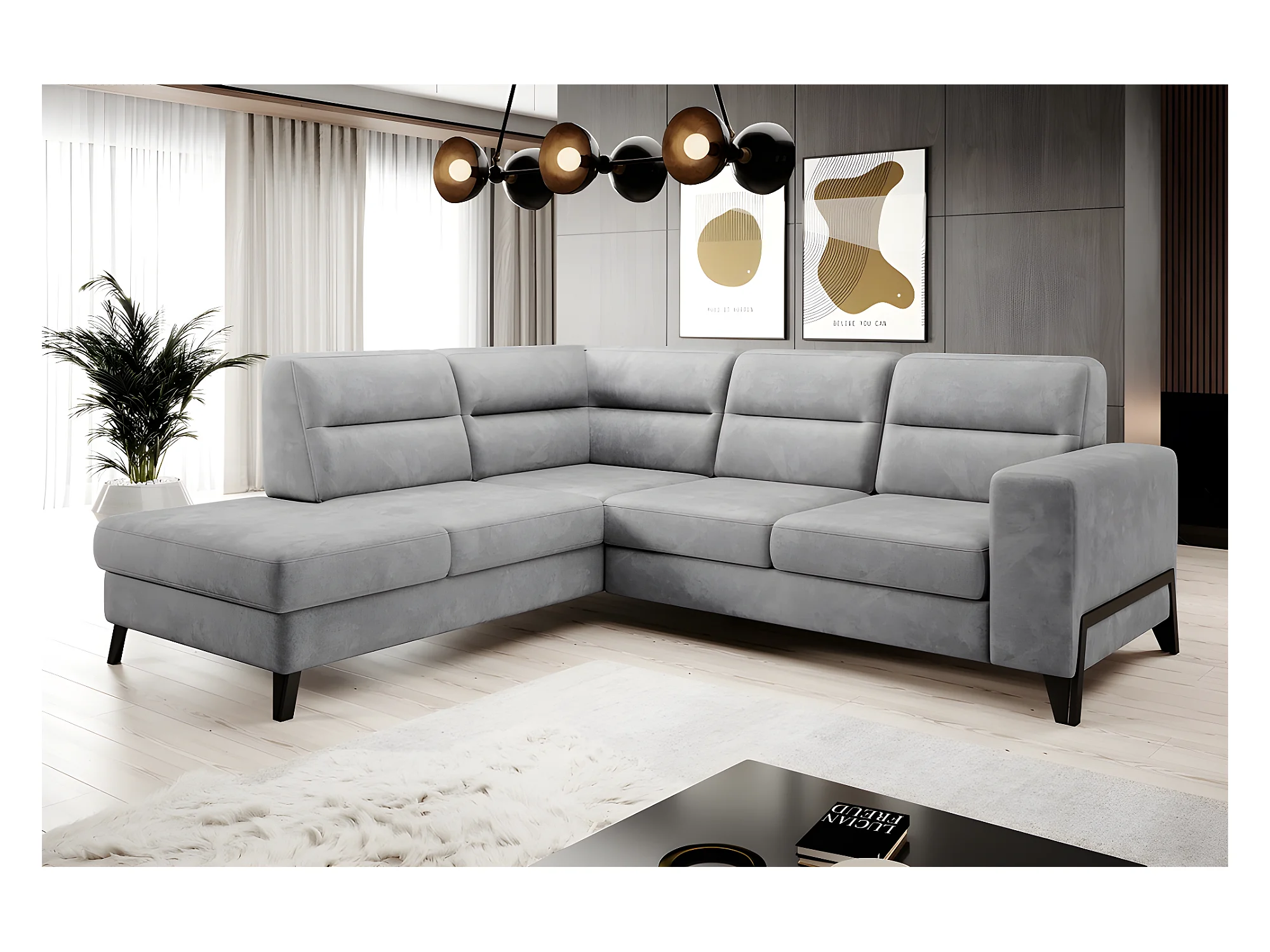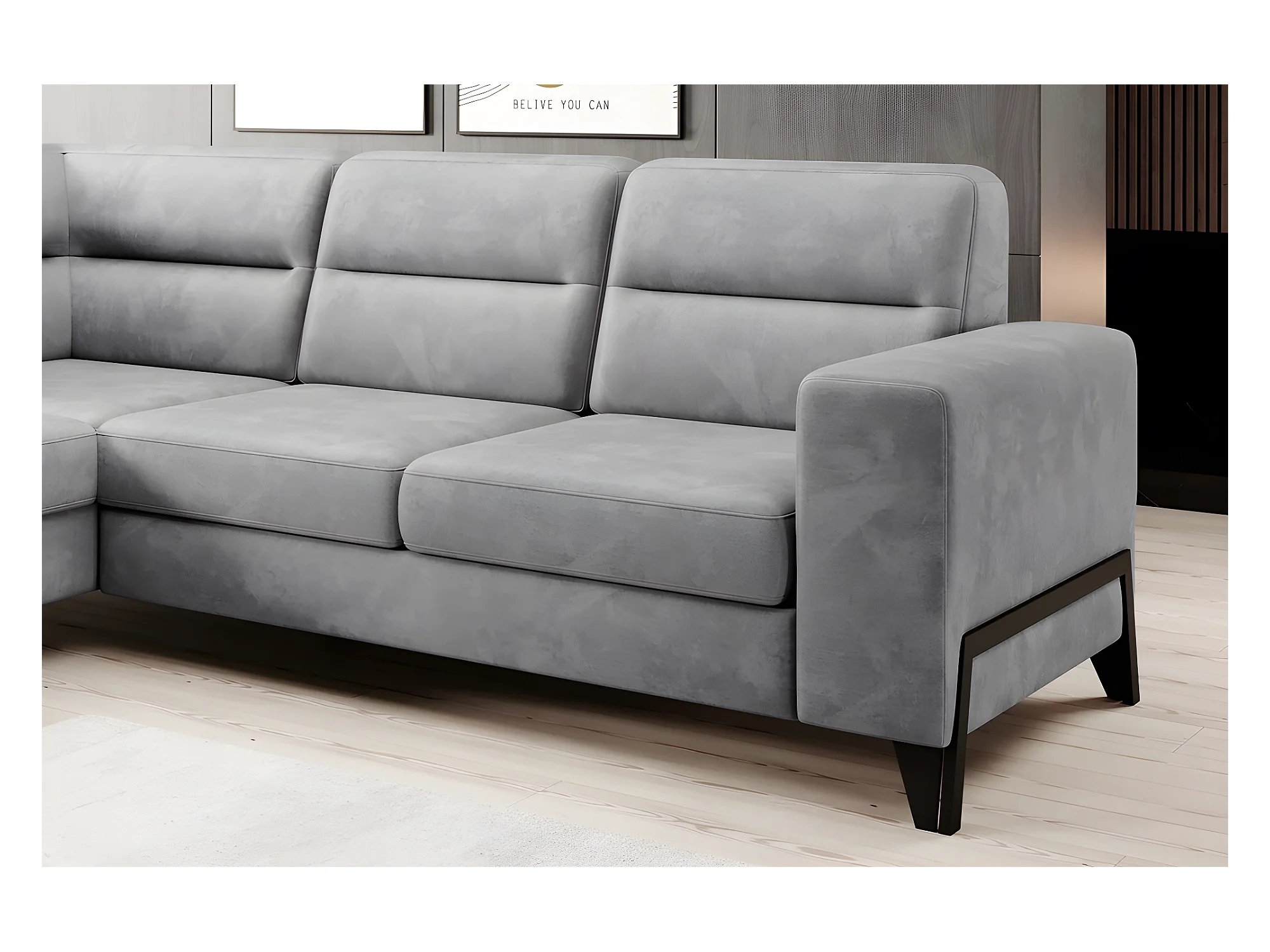 Canapé d'angle convertible - CASTA VELOURS - en tissu Luxe, gris, 5/6 places, angle gauche (vu de face)