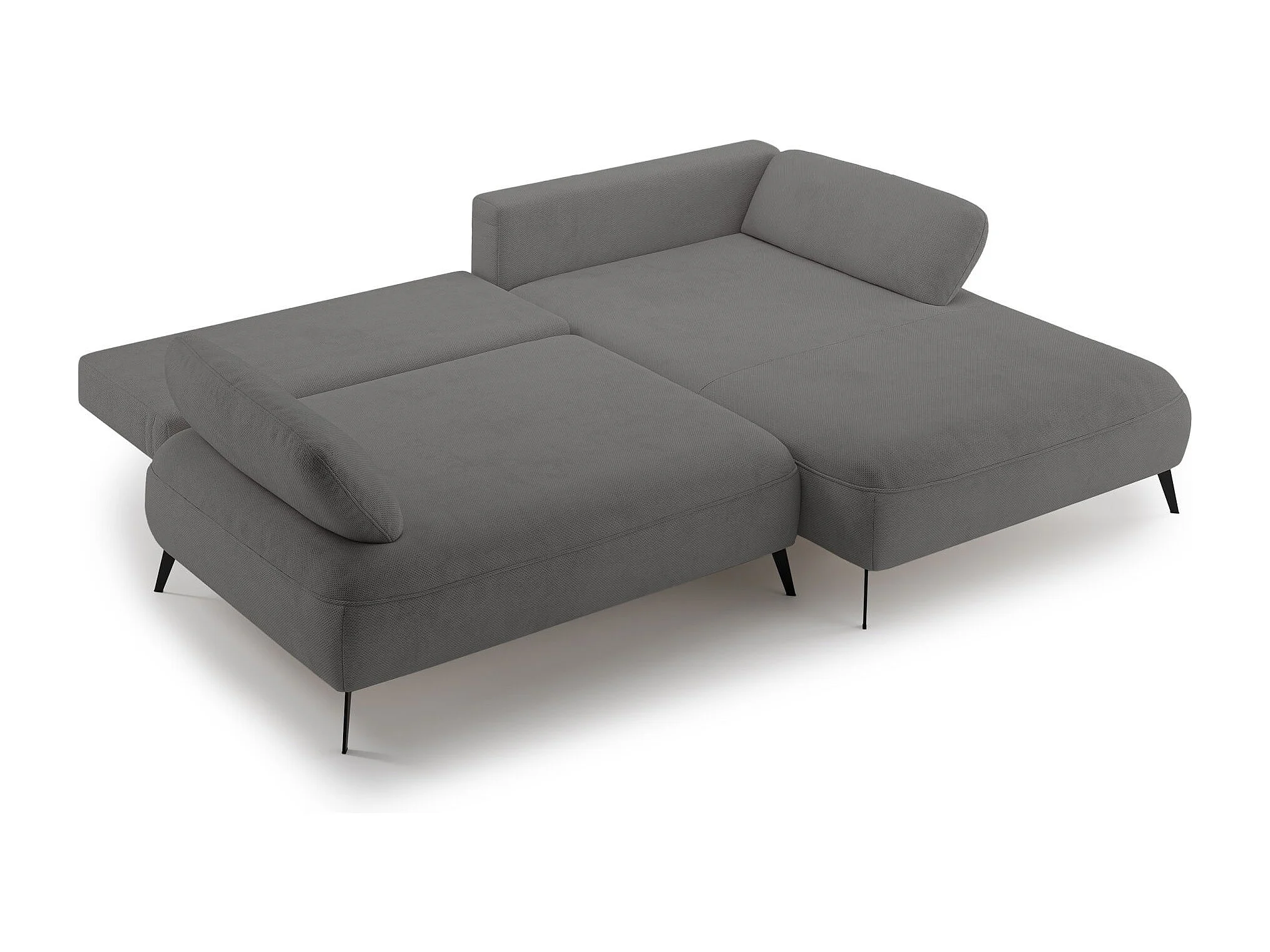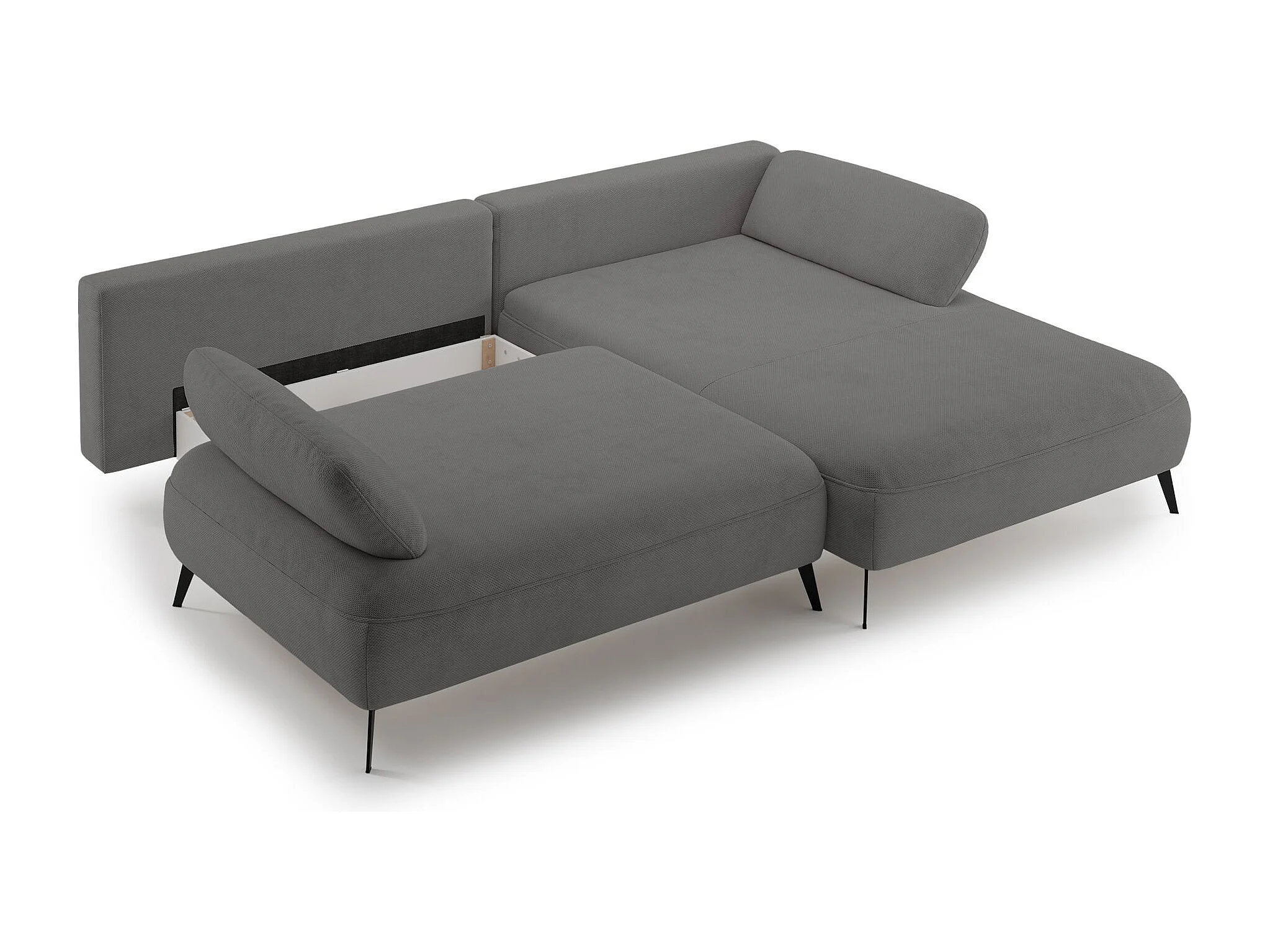 Canapé d’angle convertible – coffre de rangement – chenille hydrofuge – côté droit – gris – AVOLLA