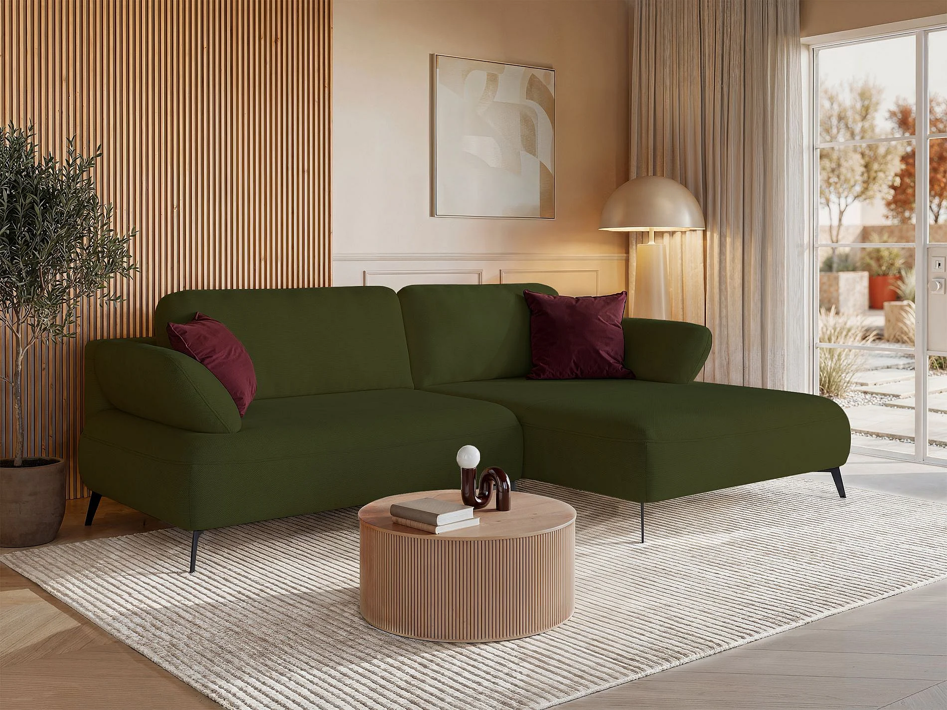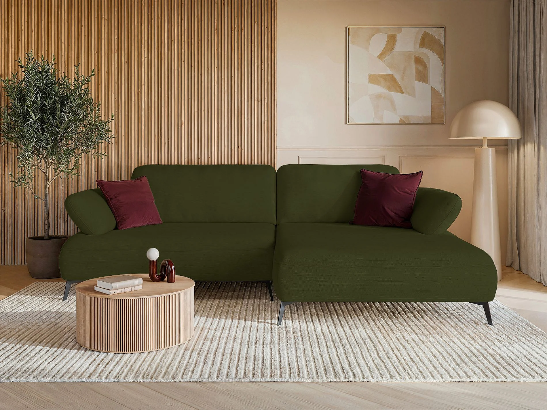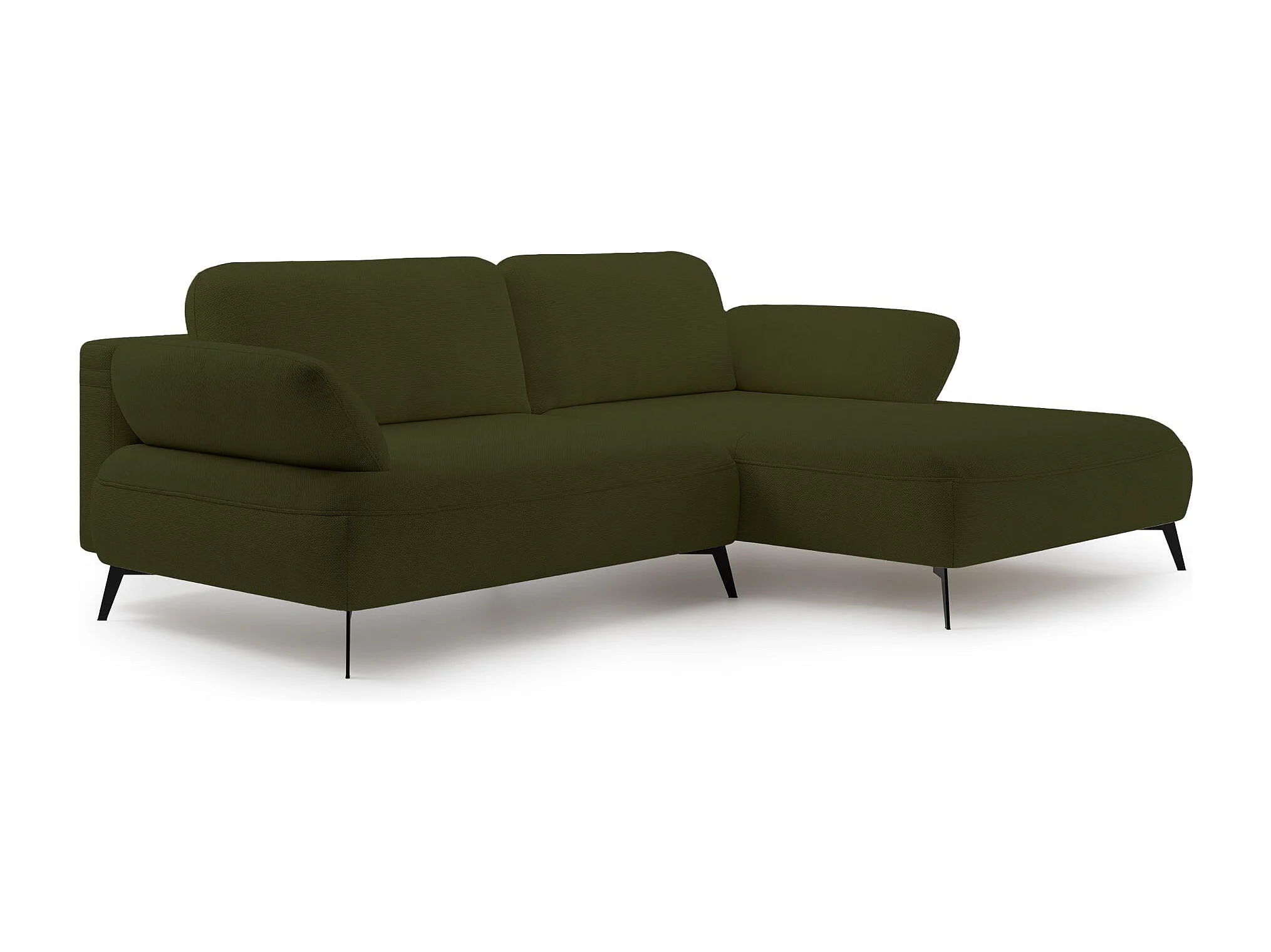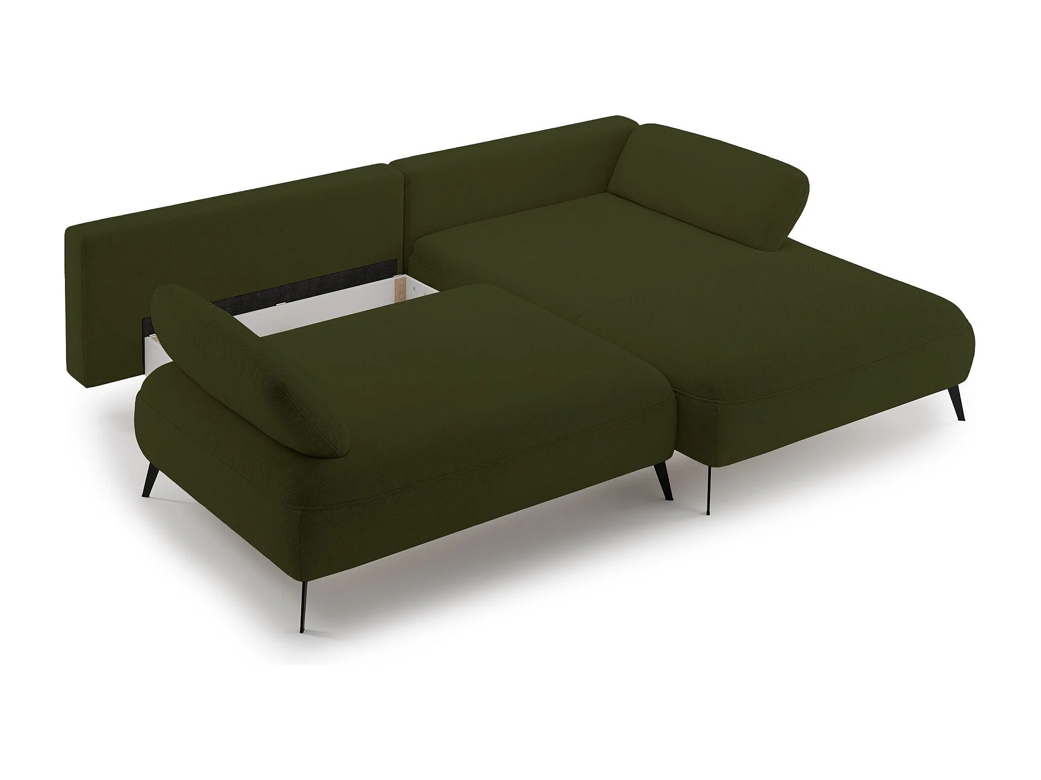 Canapé d’angle convertible – coffre de rangement – chenille hydrofuge – côté droit – vert olive – AVOLLA