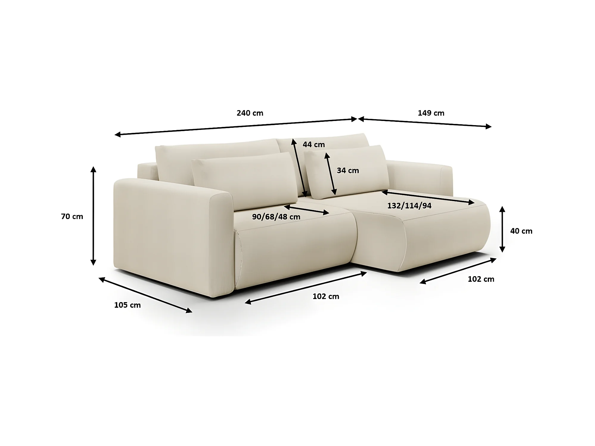 Canapé d'angle convertible CURIA en L en tissu hydrophobe anti tâche bleu