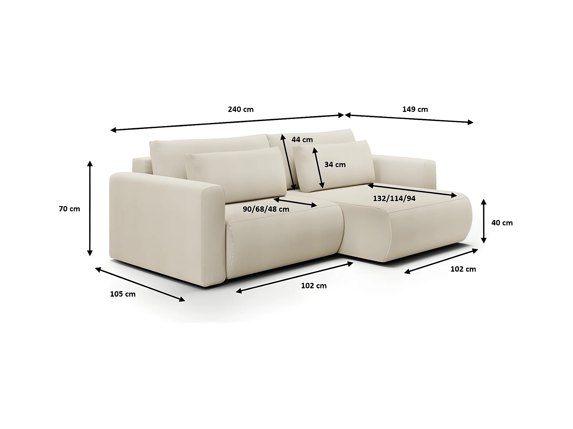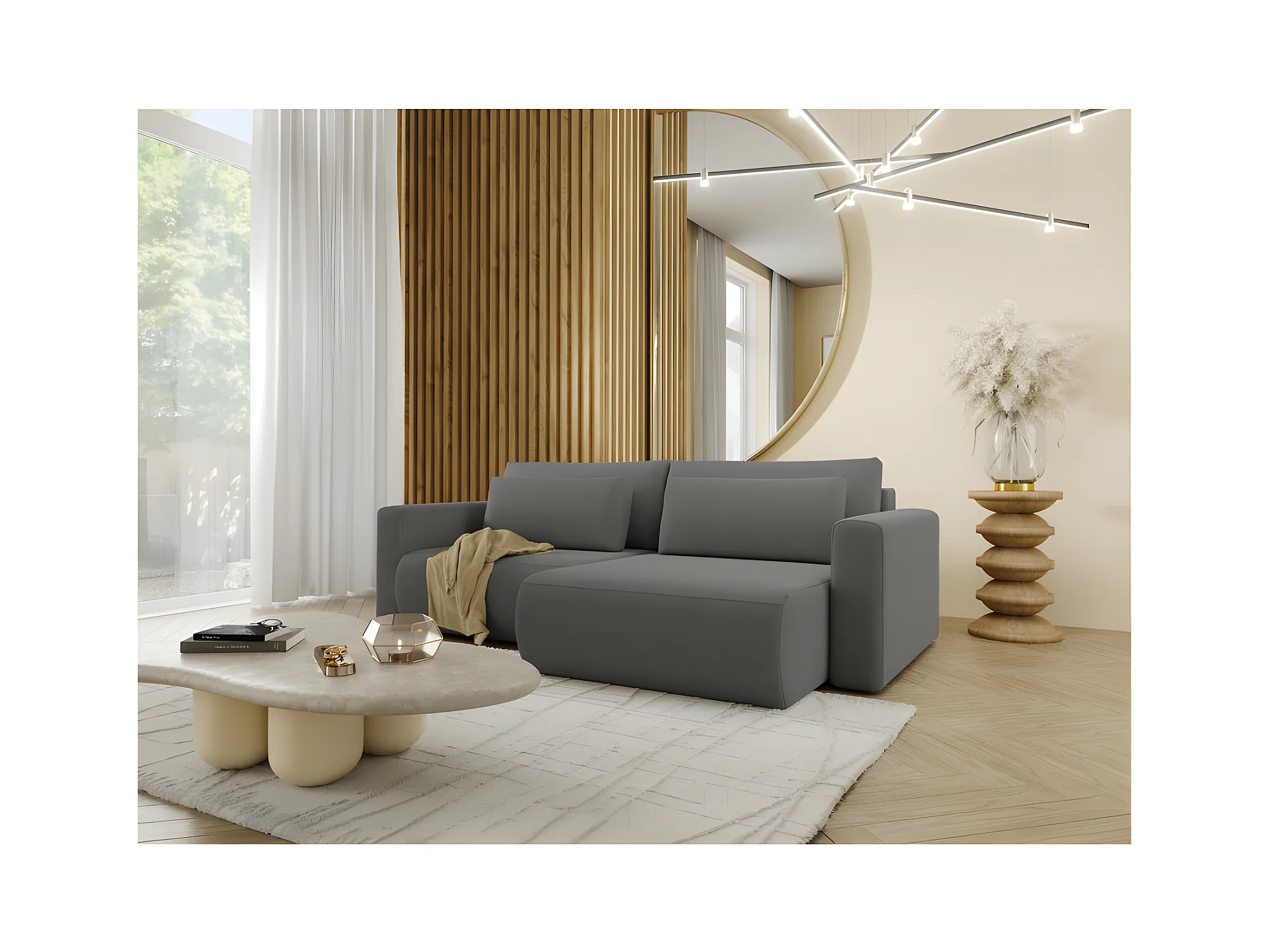 Canapé d'angle convertible CURIA en L en tissu hydrophobe anti tâche gris foncé