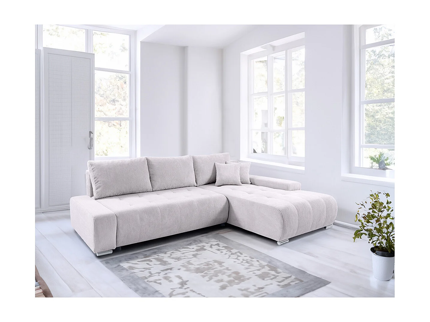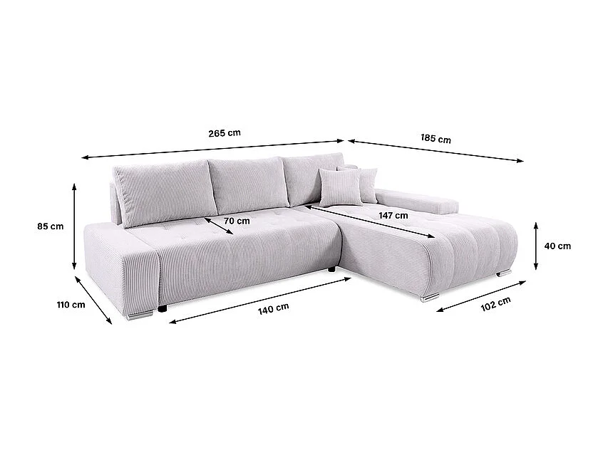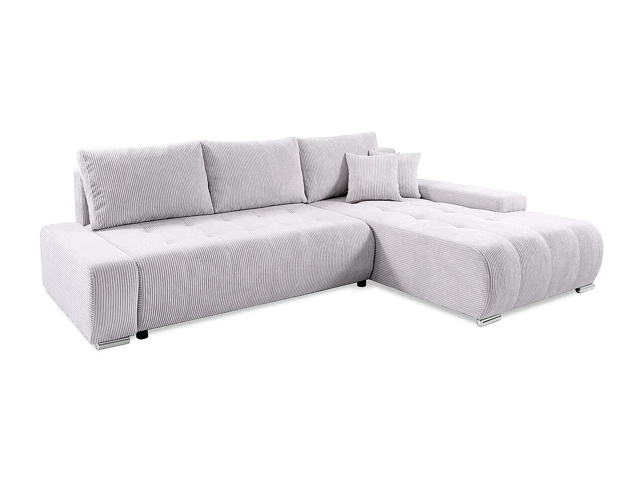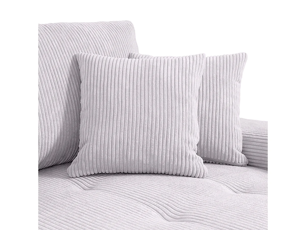 Canapé d'angle convertible droit 4 places coffre Jonas velours côtelé Blanc Cassé
