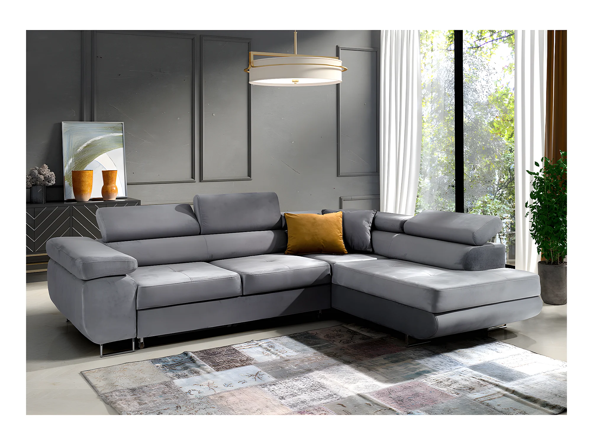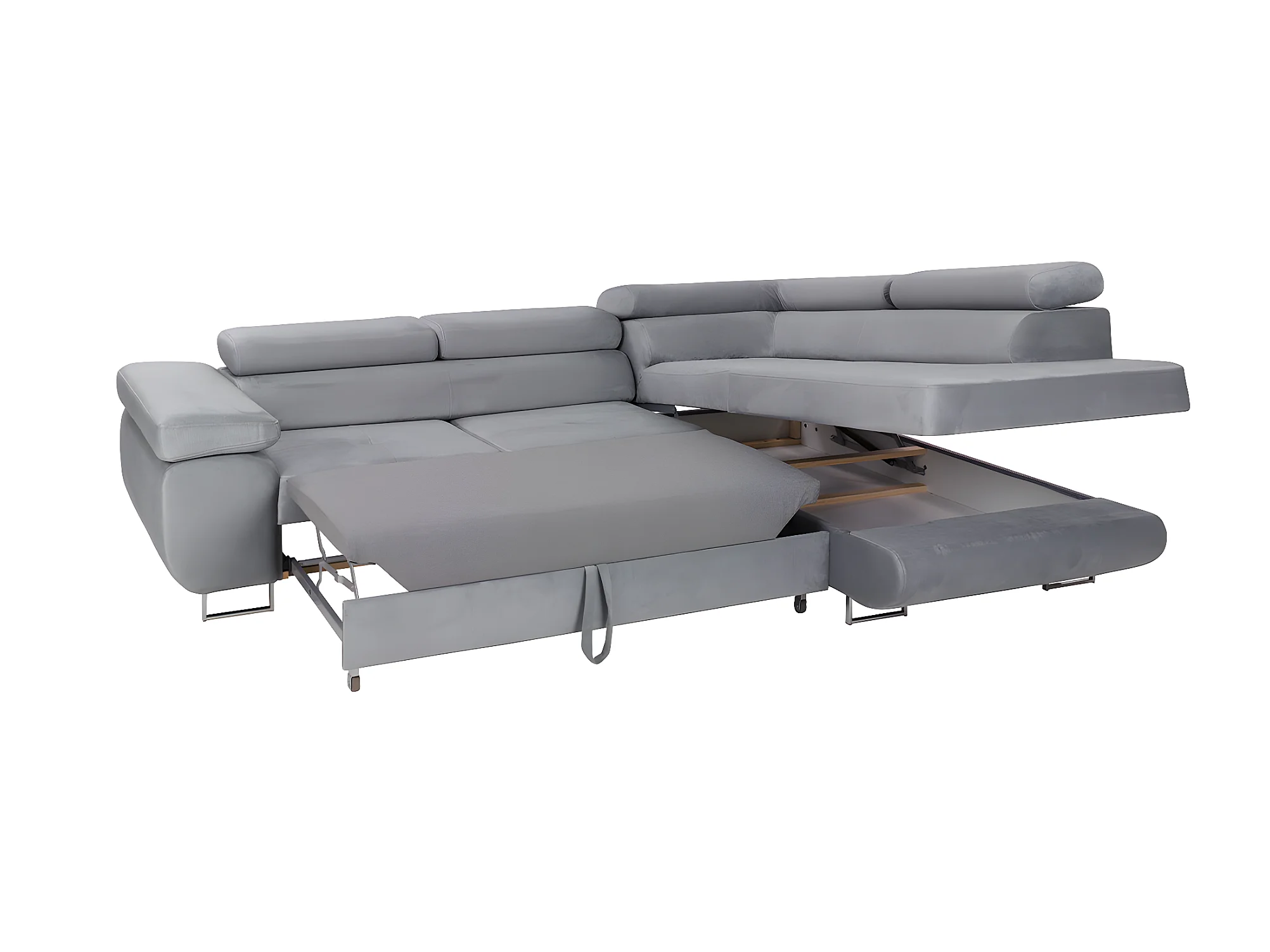 Canapé d'angle convertible droit 4 places Wilson velours Gris