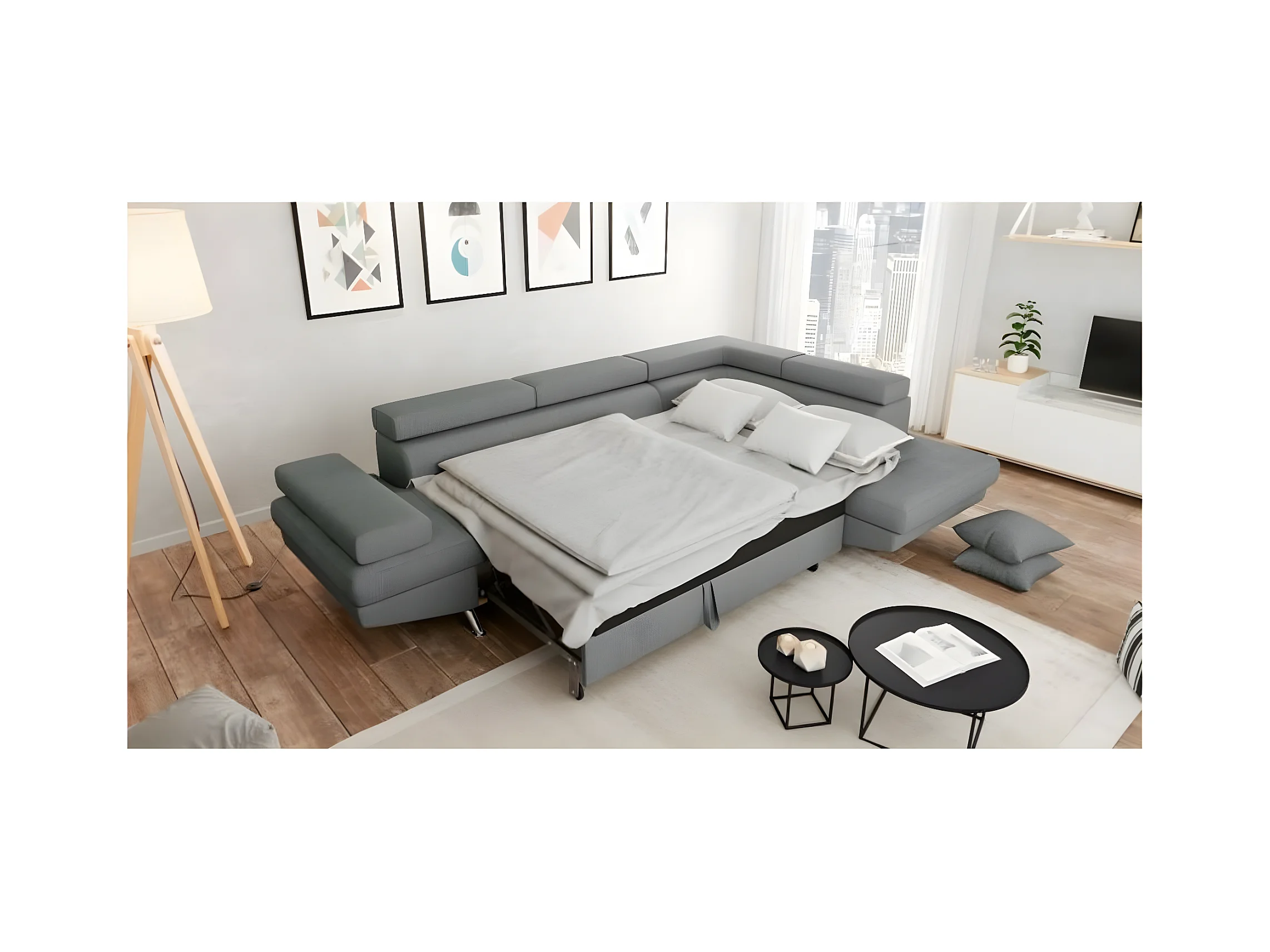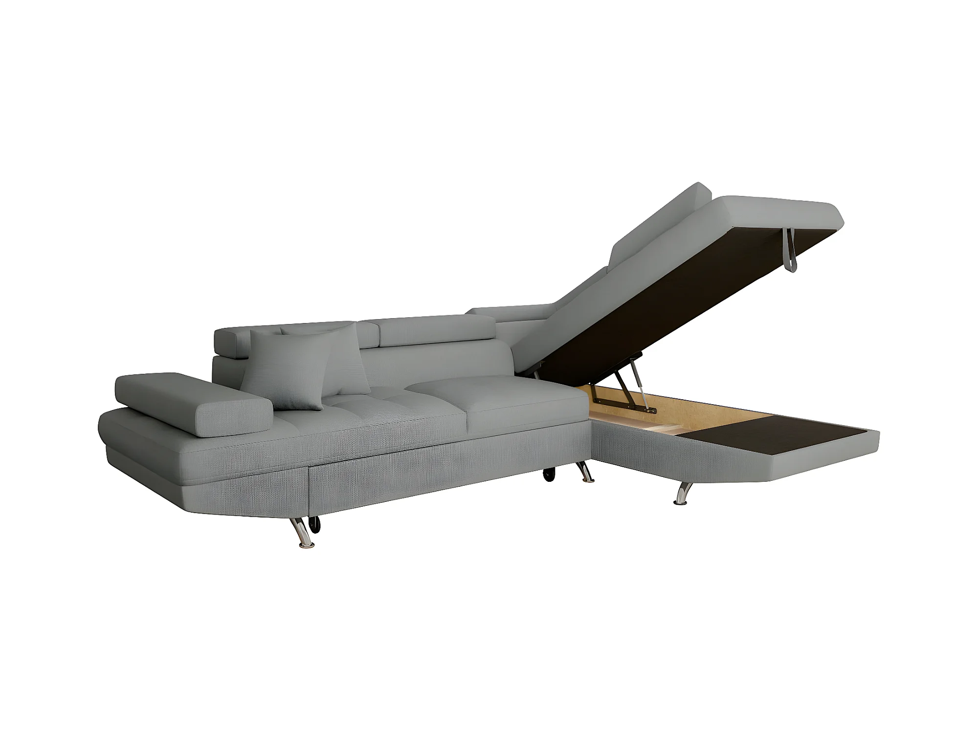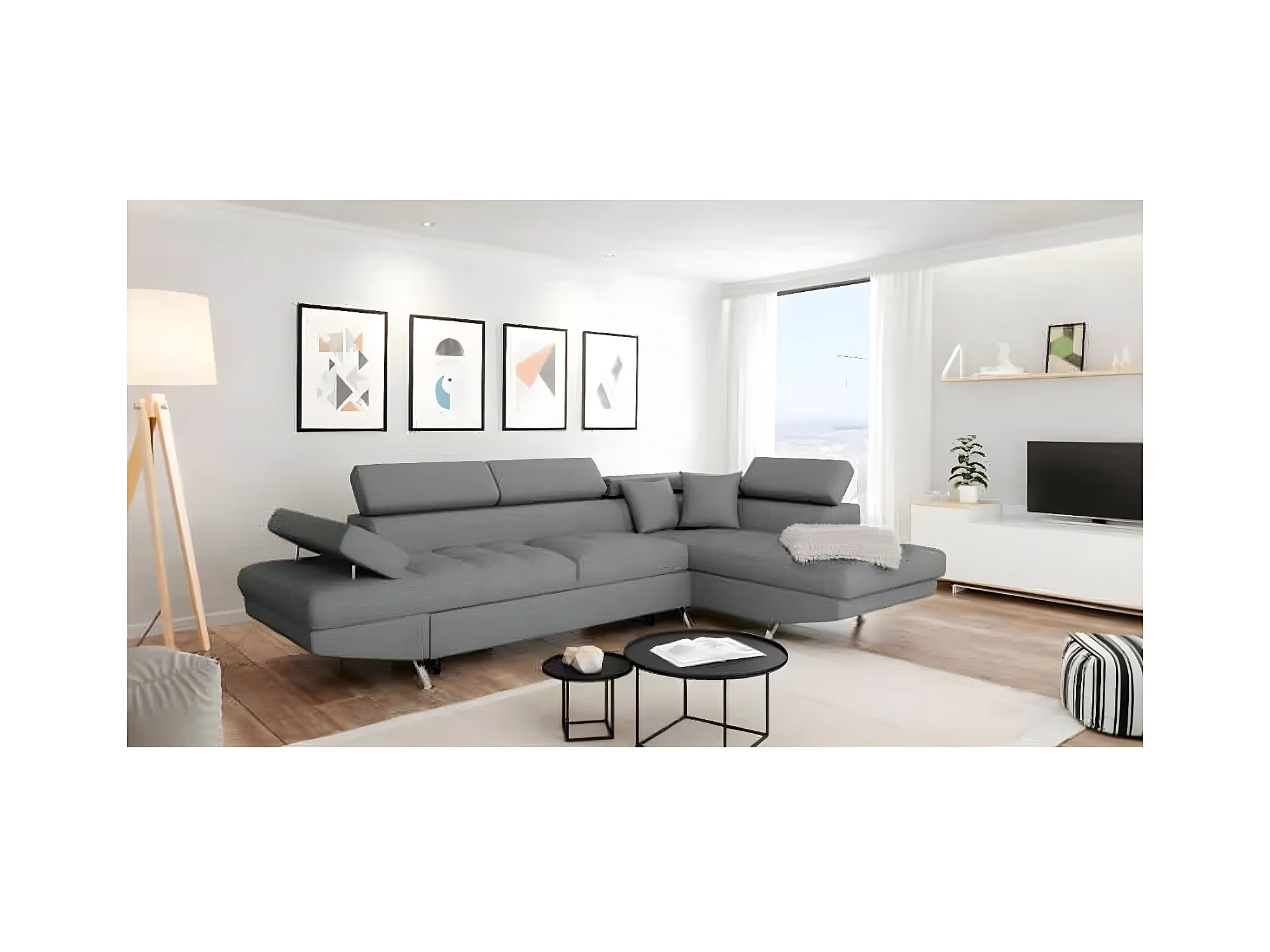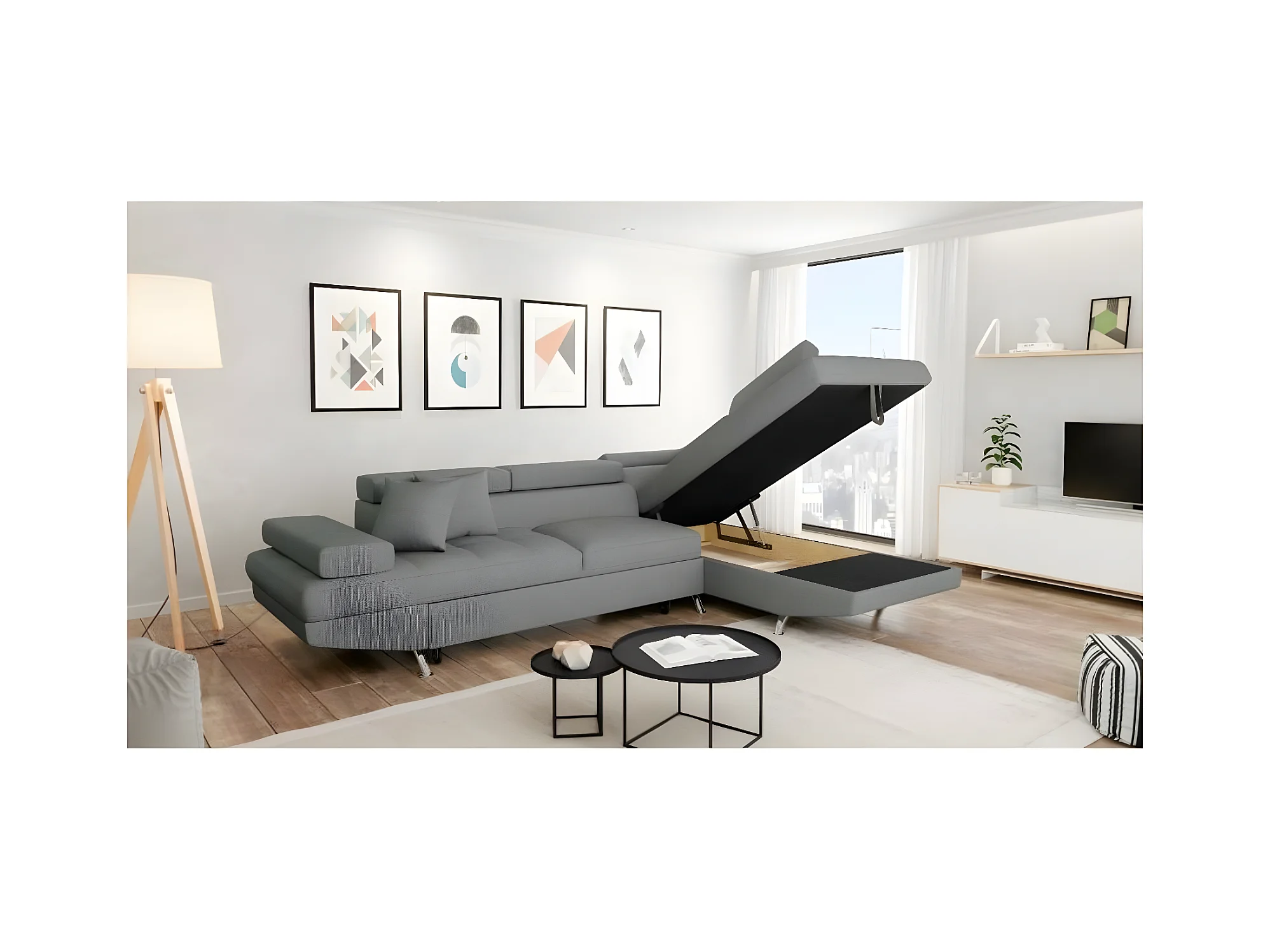 Canapé d'angle convertible droit avec coffre de rangement en tissu