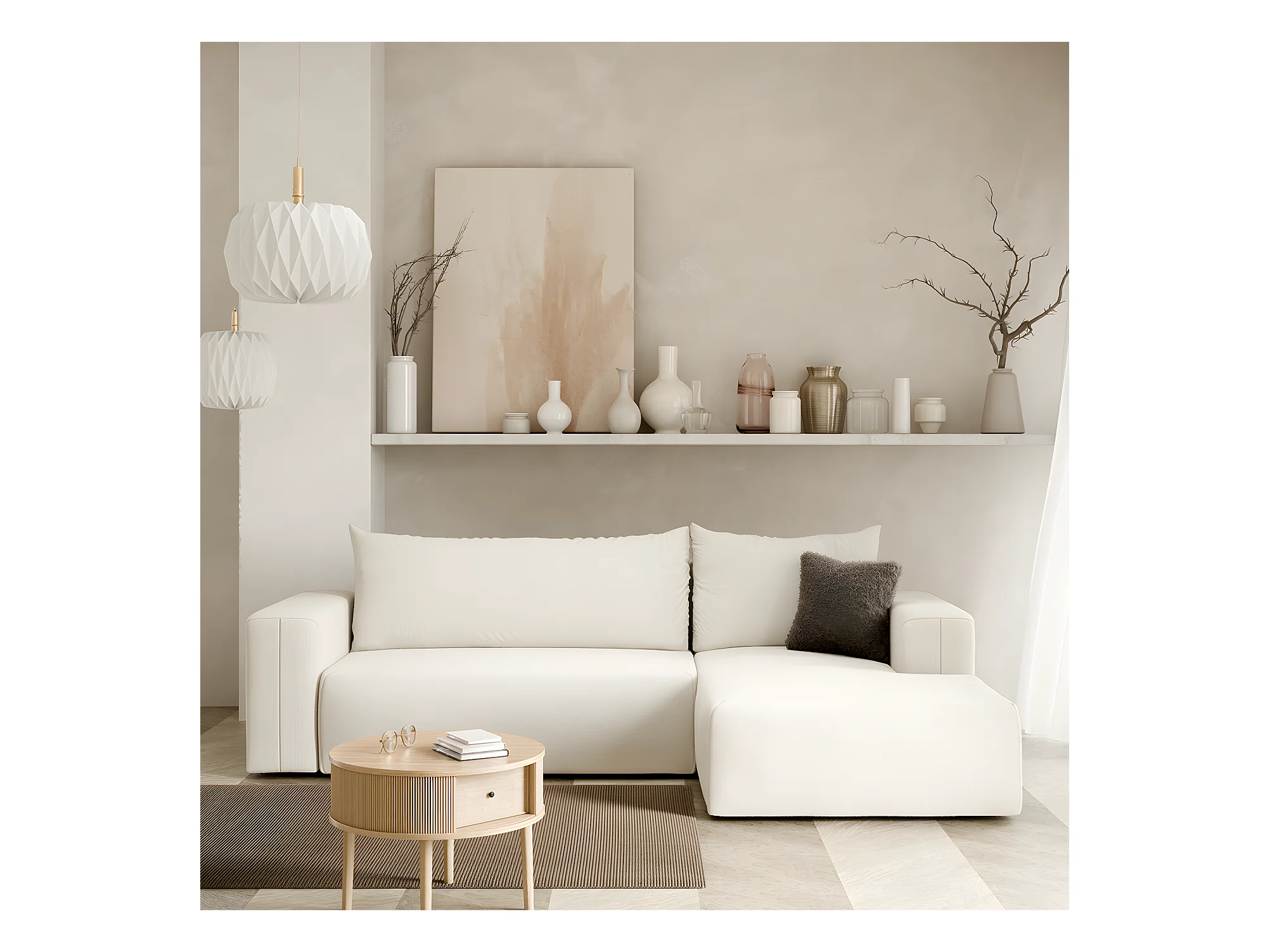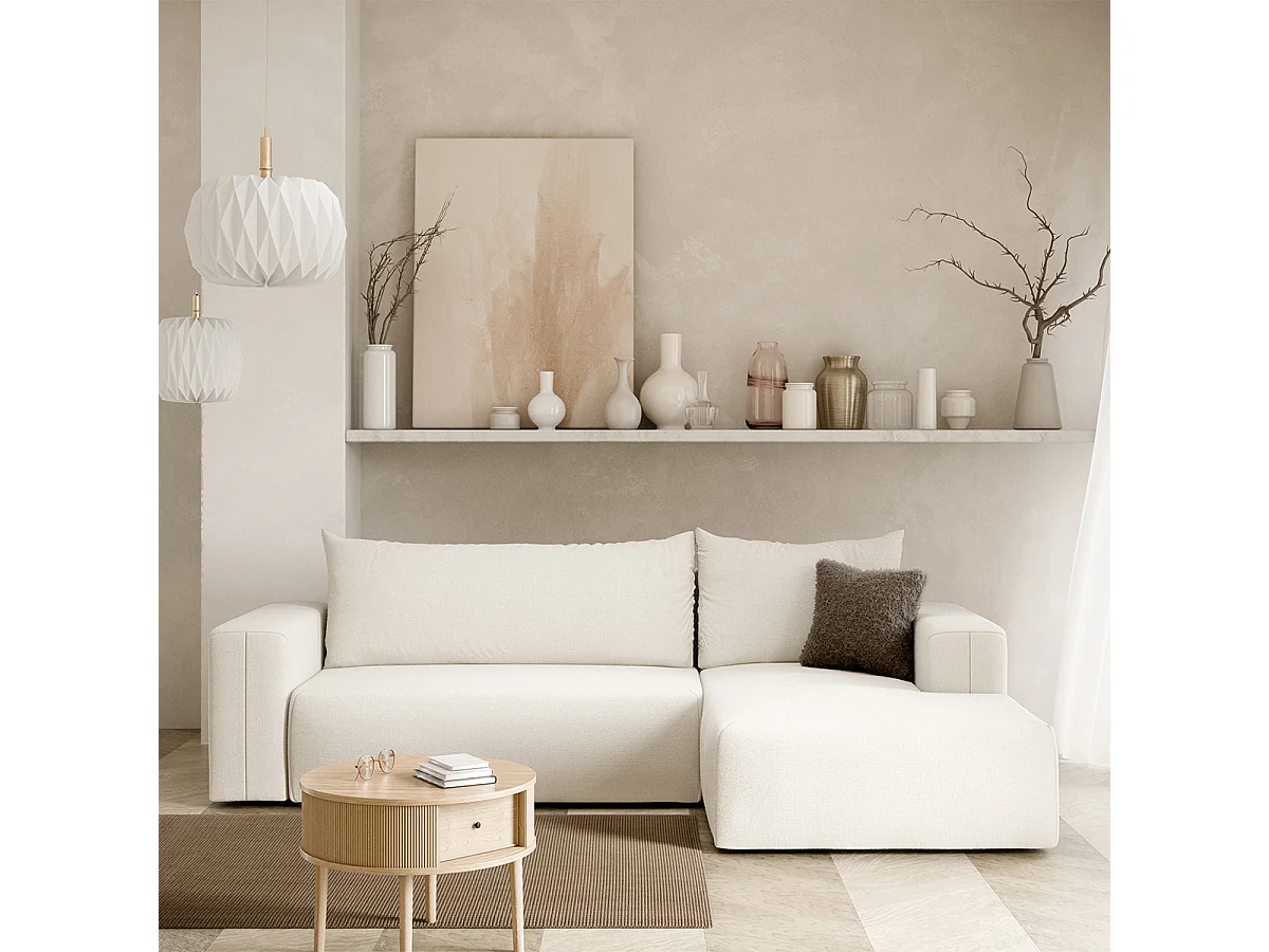 Canapé d'angle convertible droite 3 places coffre Bliss Blanc Cassé