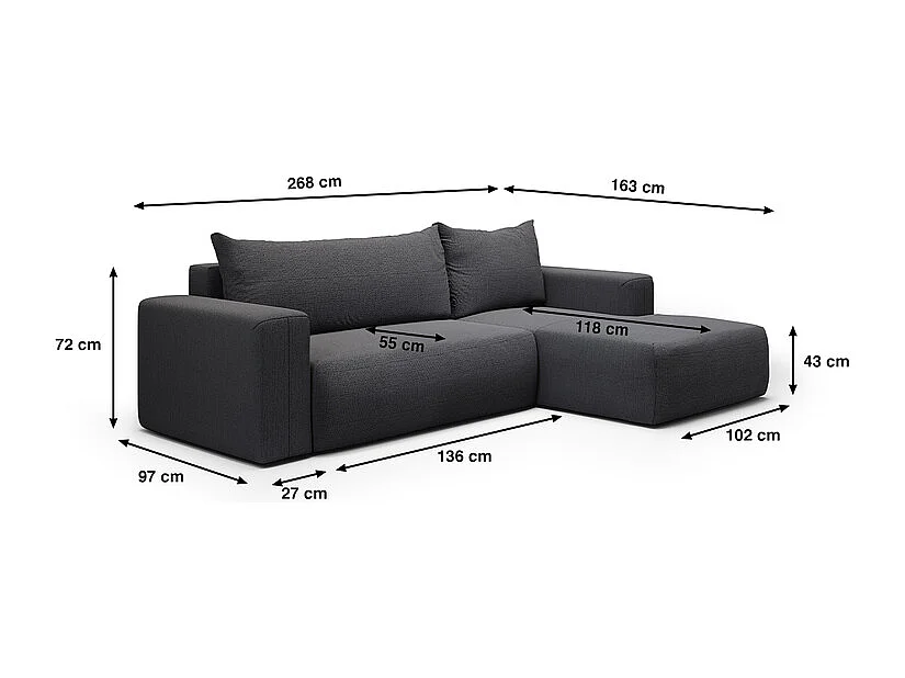 Canapé d'angle convertible droite 3 places coffre Bliss Gris foncé
