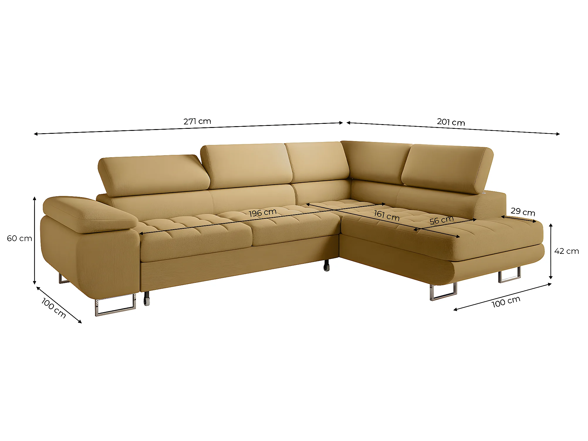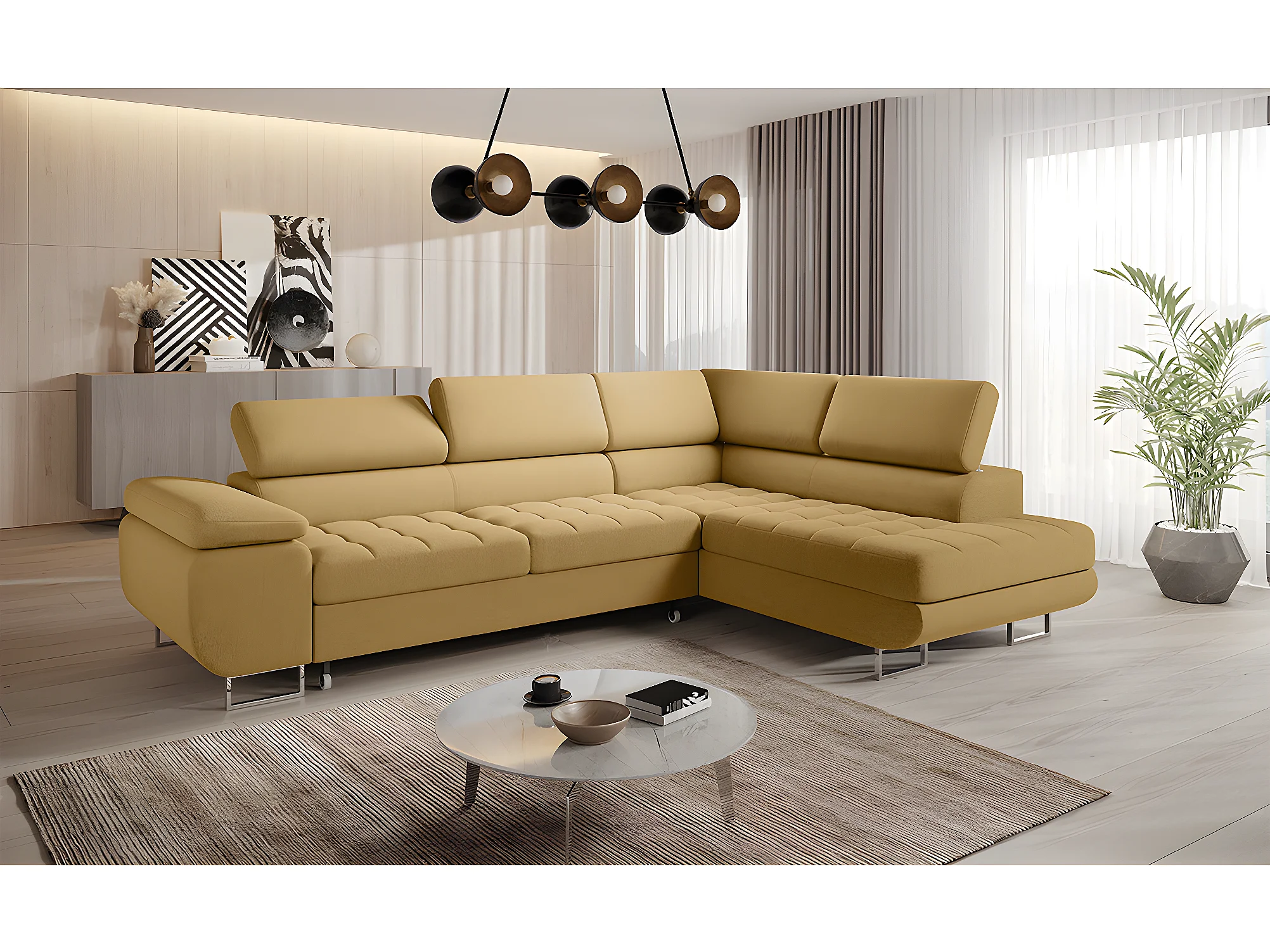 Canapé d'angle convertible droite 4 places Eden Jaune