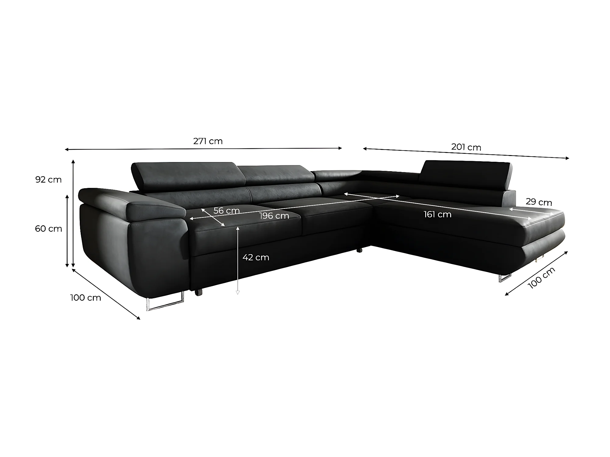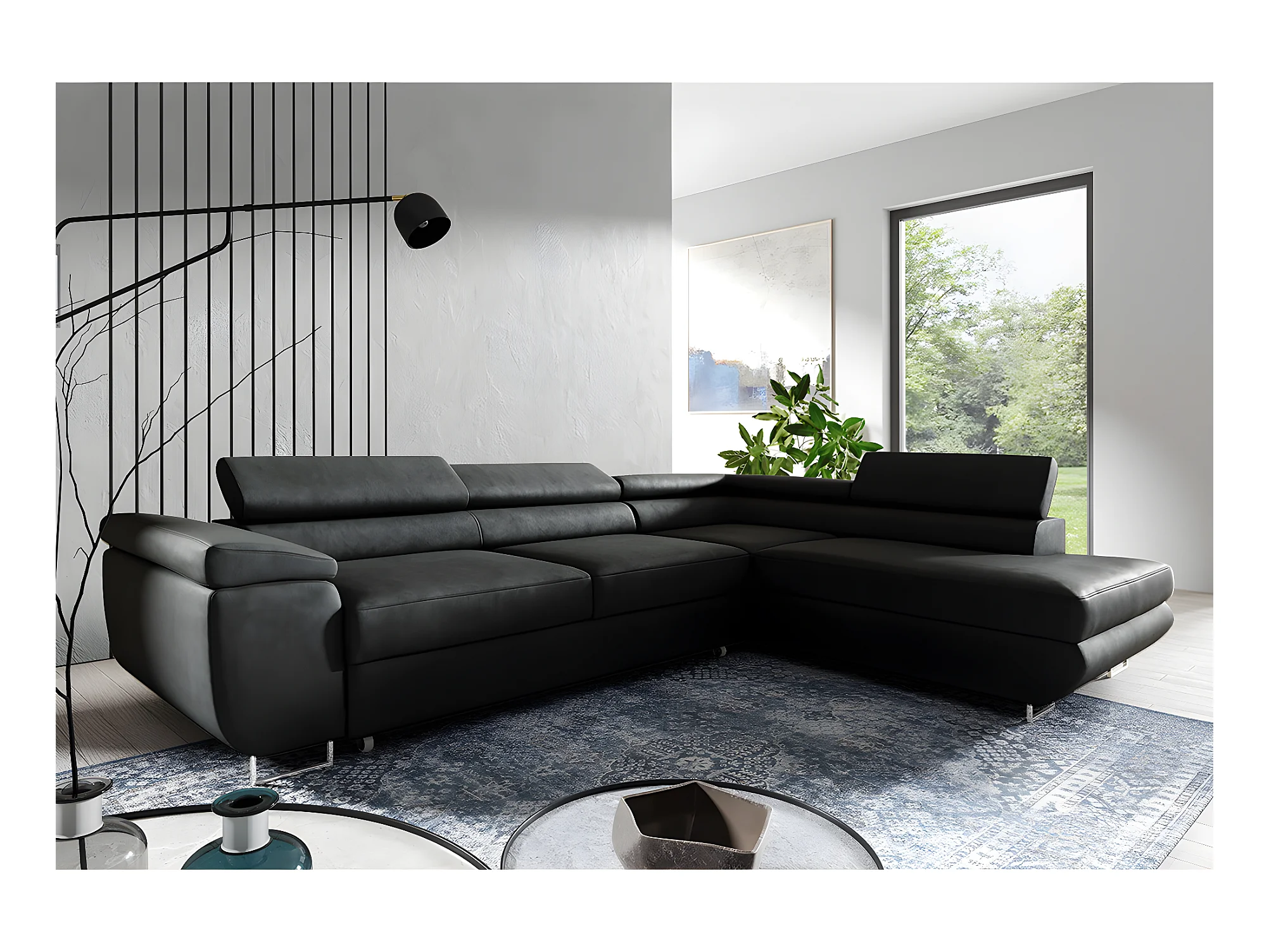 Canapé d'angle convertible droite 4 places Lyam Noir