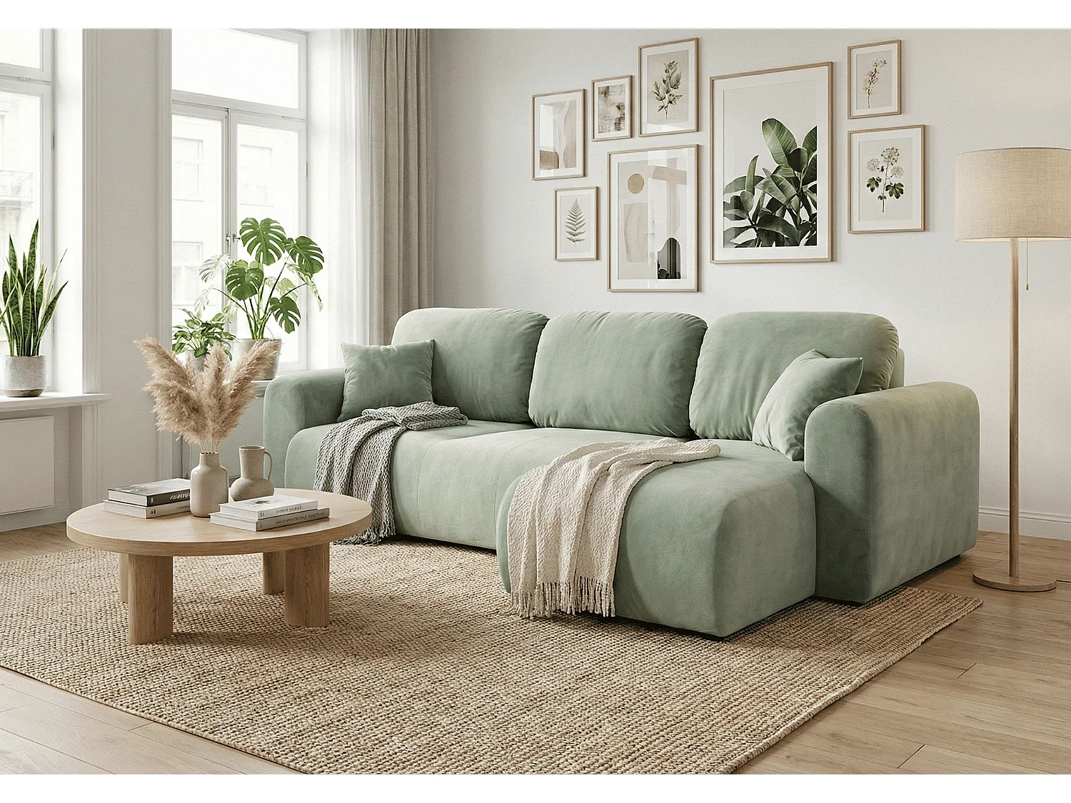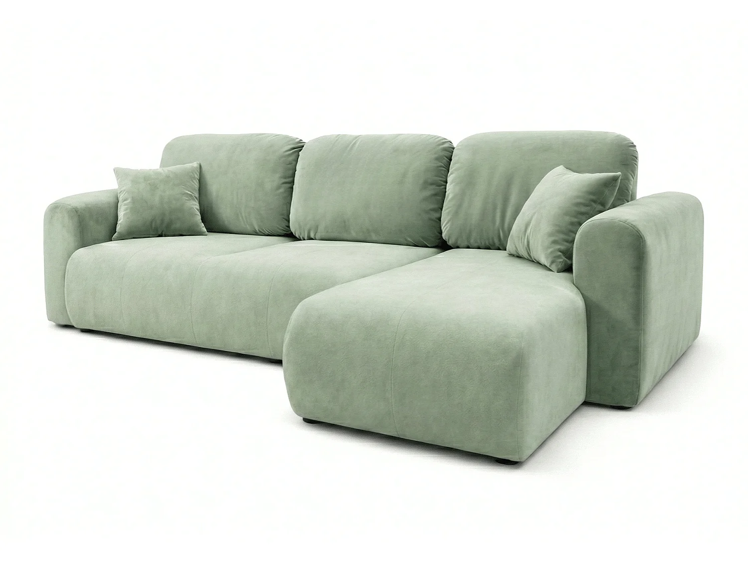 Canapé d’angle convertible élégant, version droite, BINGO L, 245 × 148 × 87 cm, en tissu Kronos 47 vert