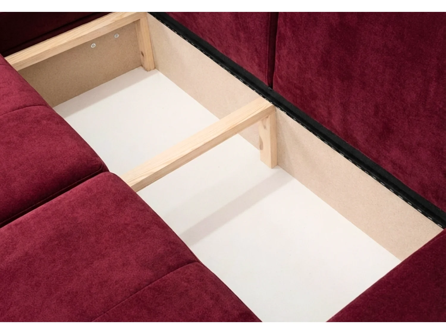 Canapé d’angle convertible élégant, version gauche, BINGO L, 245 × 148 × 87 cm, en tissu Kronos 2 bordeaux