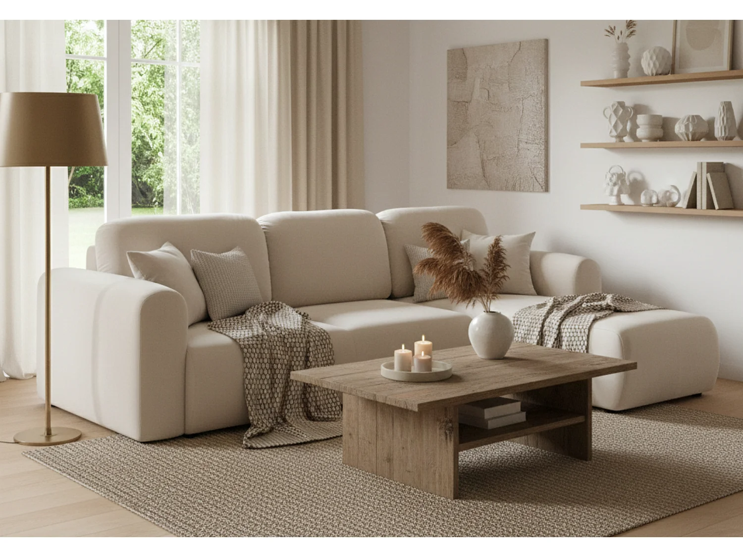 Canapé d’angle convertible élégant, version gauche, BINGO L, 245 × 148 × 87 cm, en tissu Paros 1 beige