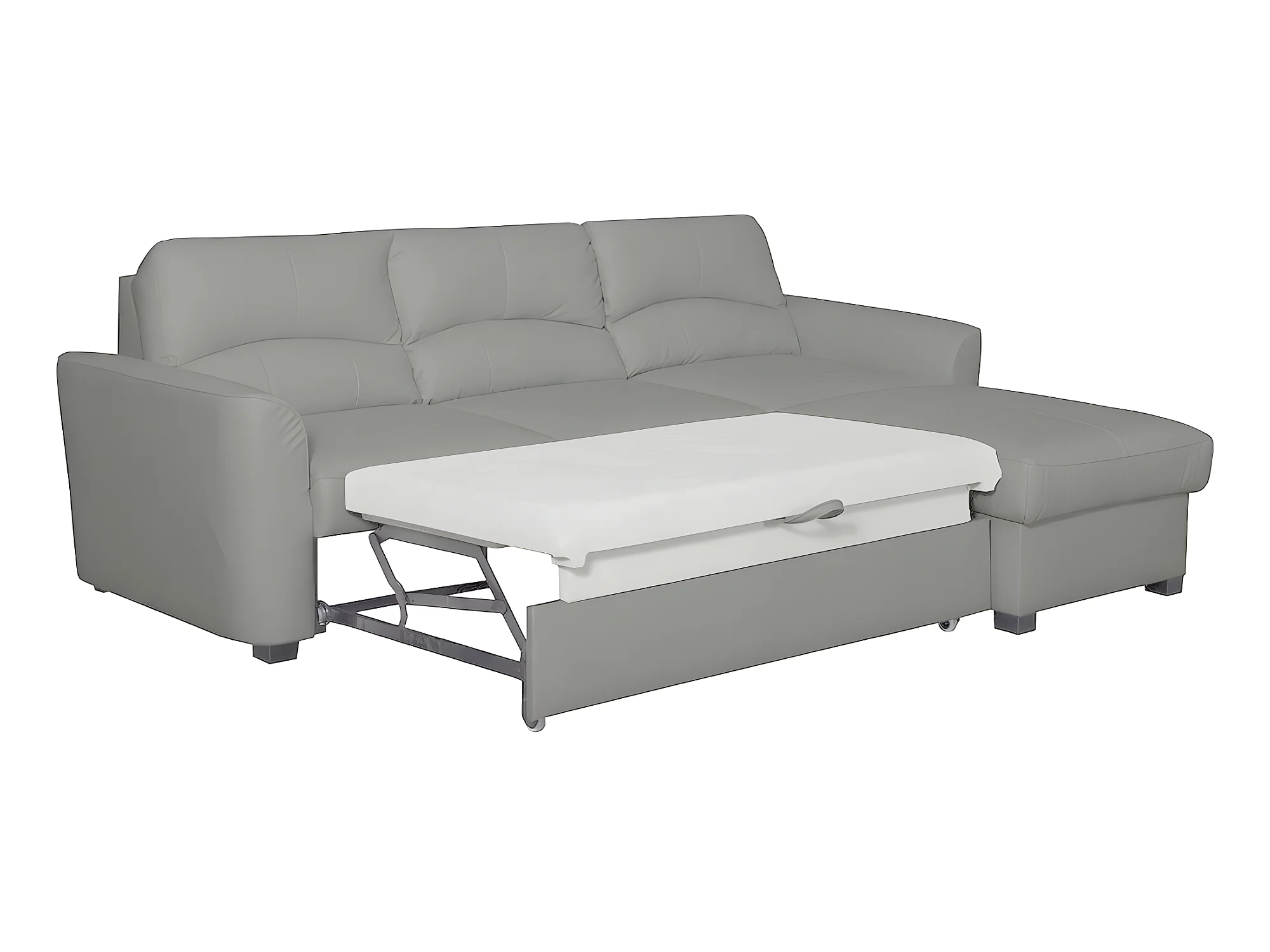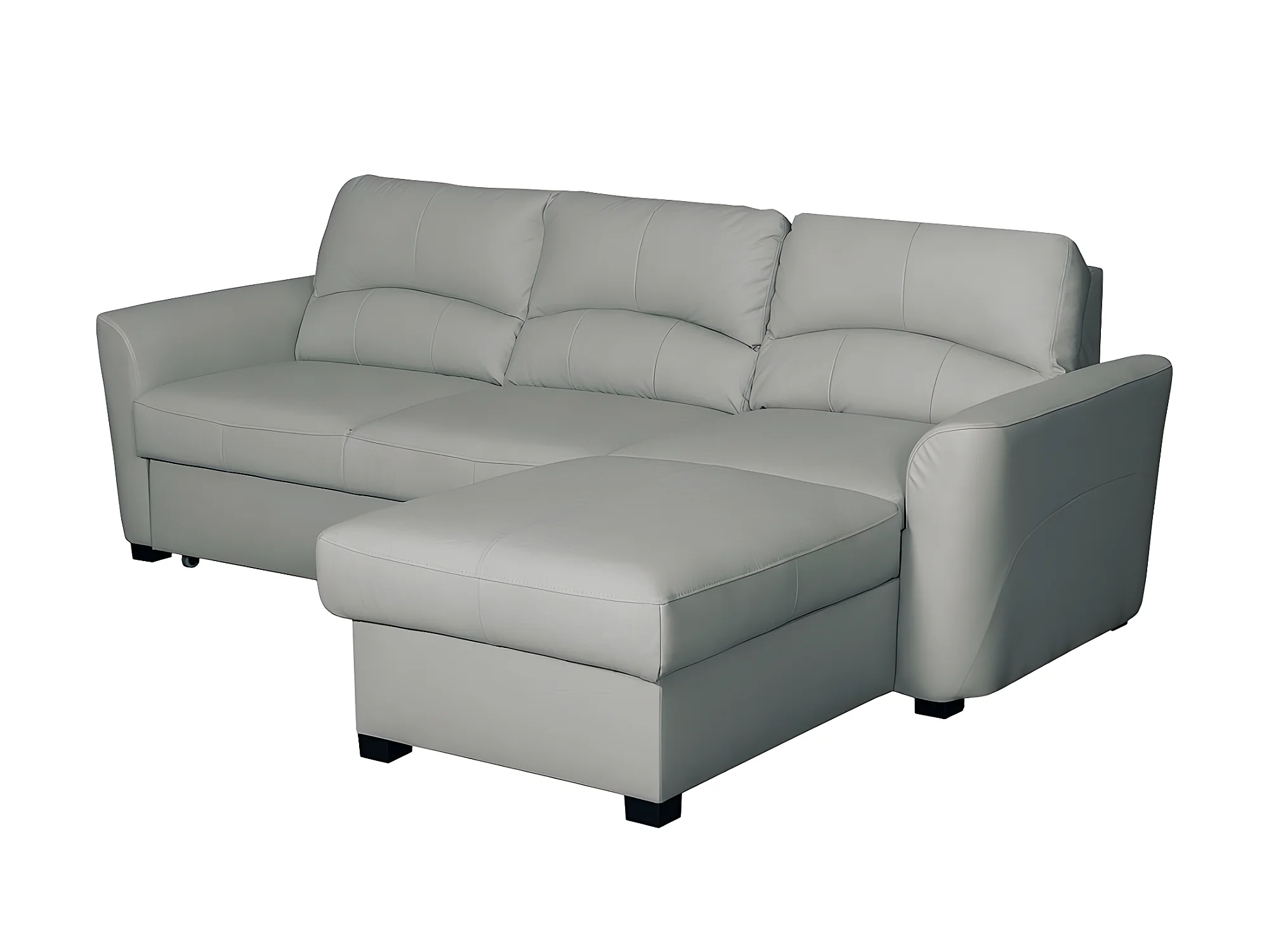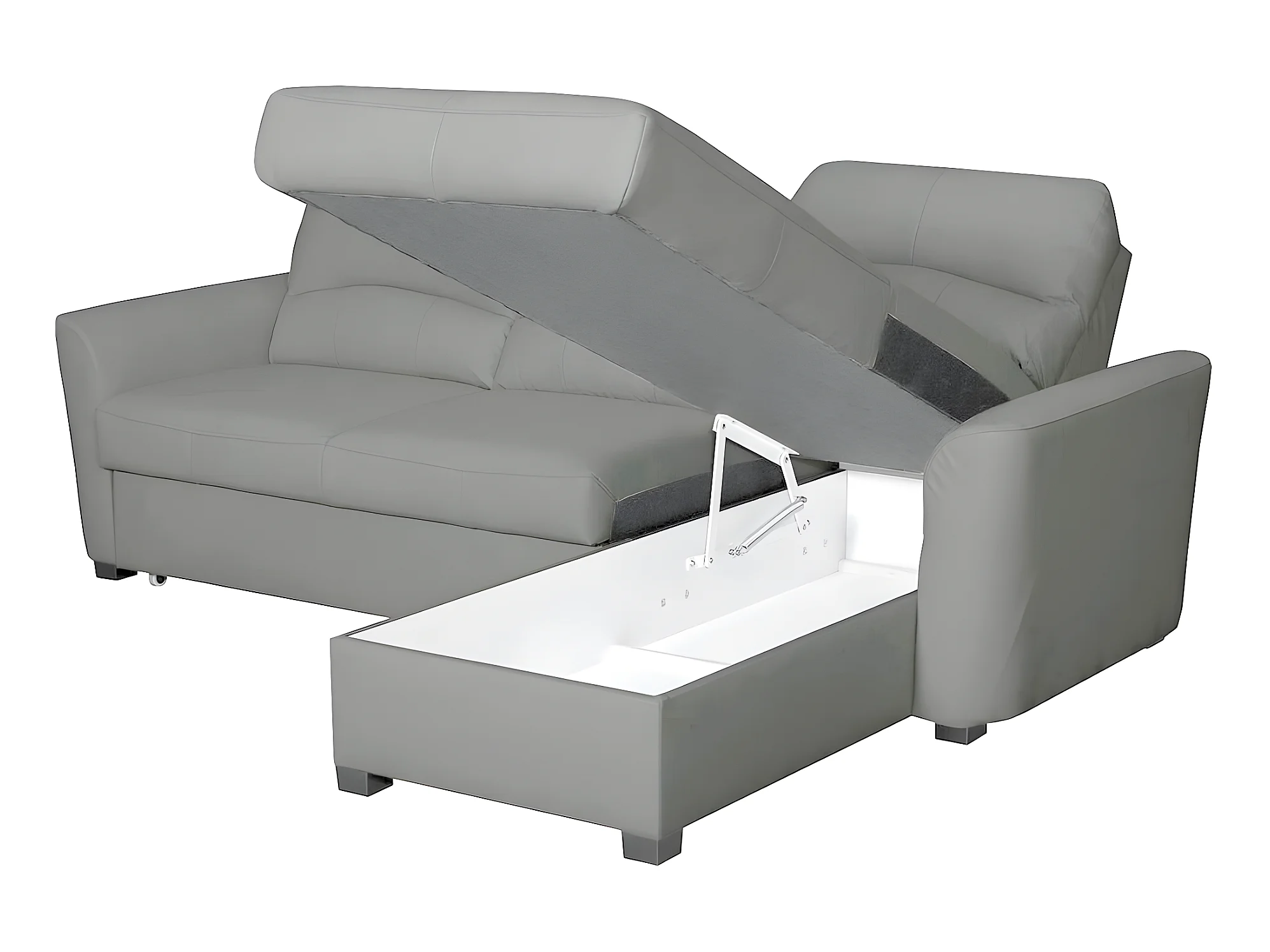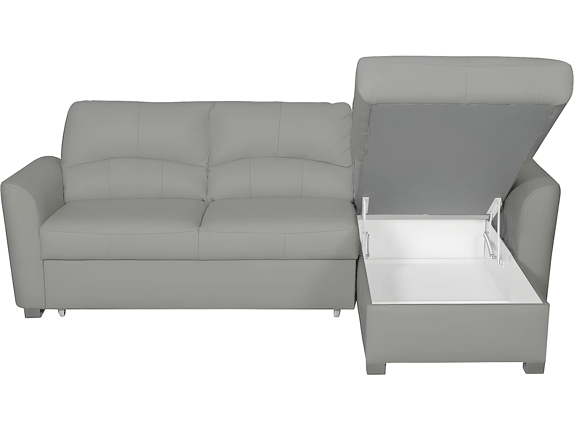 Canapé d'angle convertible en cuir de luxe italien , 5 places LUGANO, gris clair, angle droit