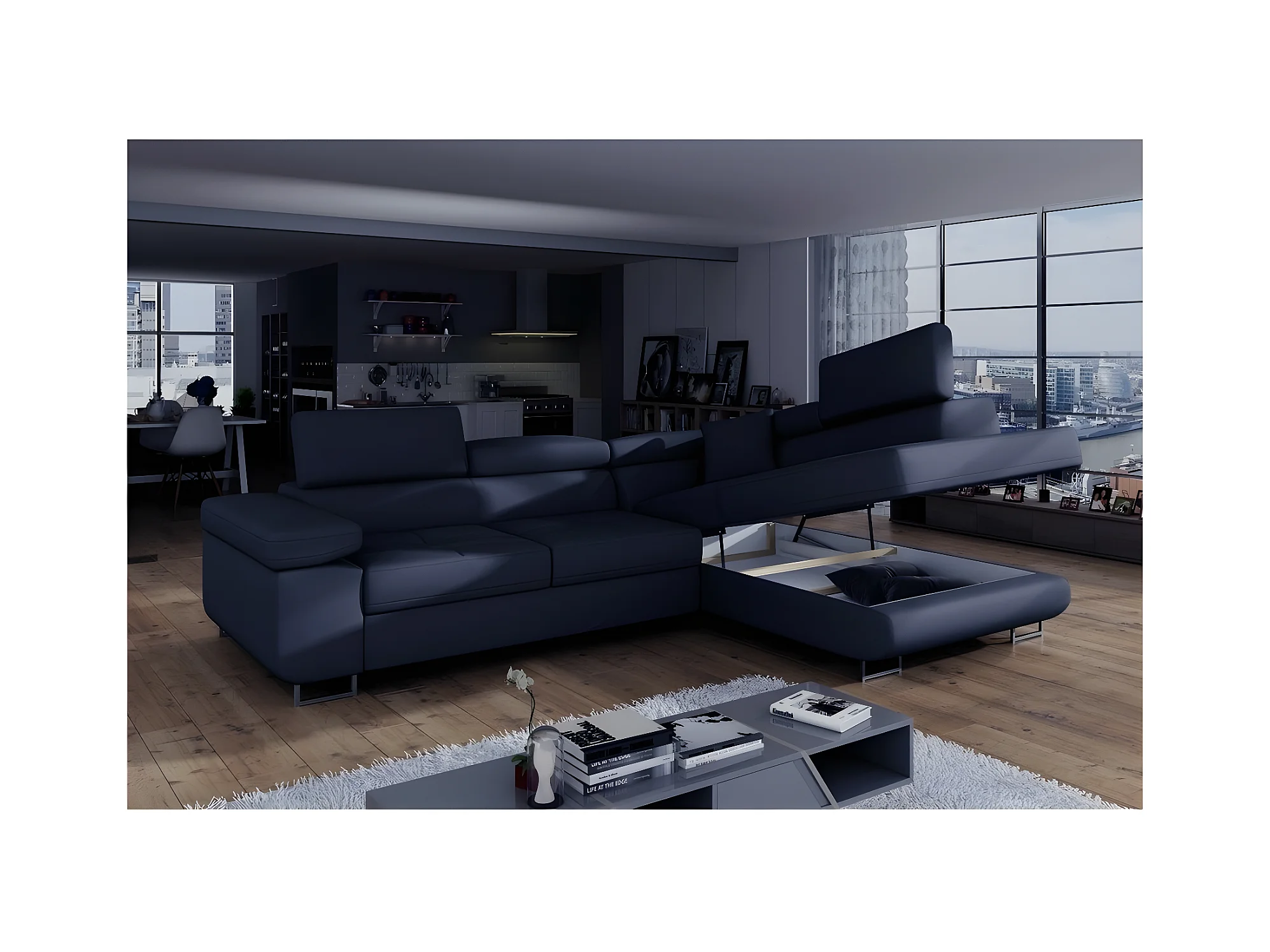 Canapé d'angle convertible en simili cuir 5 places, ANVERS SIMILI, bleu foncé, angle droit