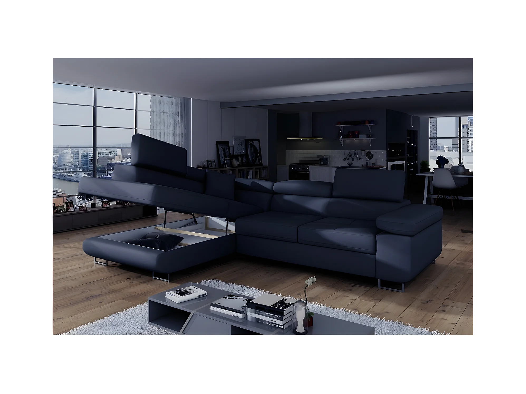 Canapé d'angle convertible en simili cuir 5 places, ANVERS SIMILI, bleu foncé, angle gauche