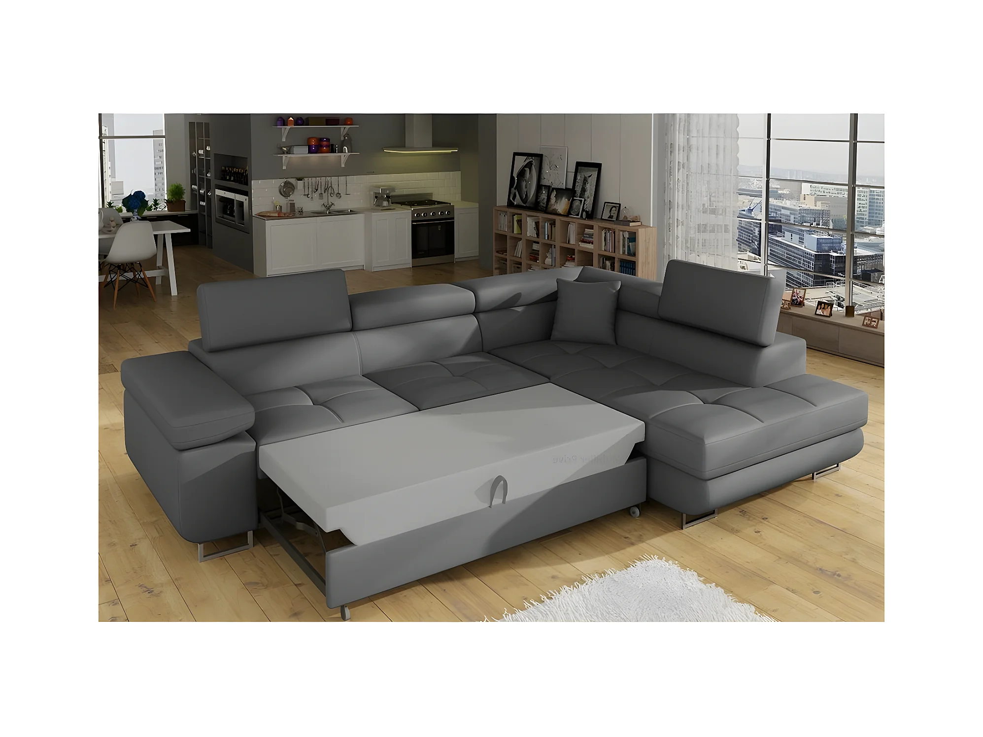 Canapé d'angle convertible en simili cuir 5 places, ANVERS SIMILI, gris foncé, angle droit