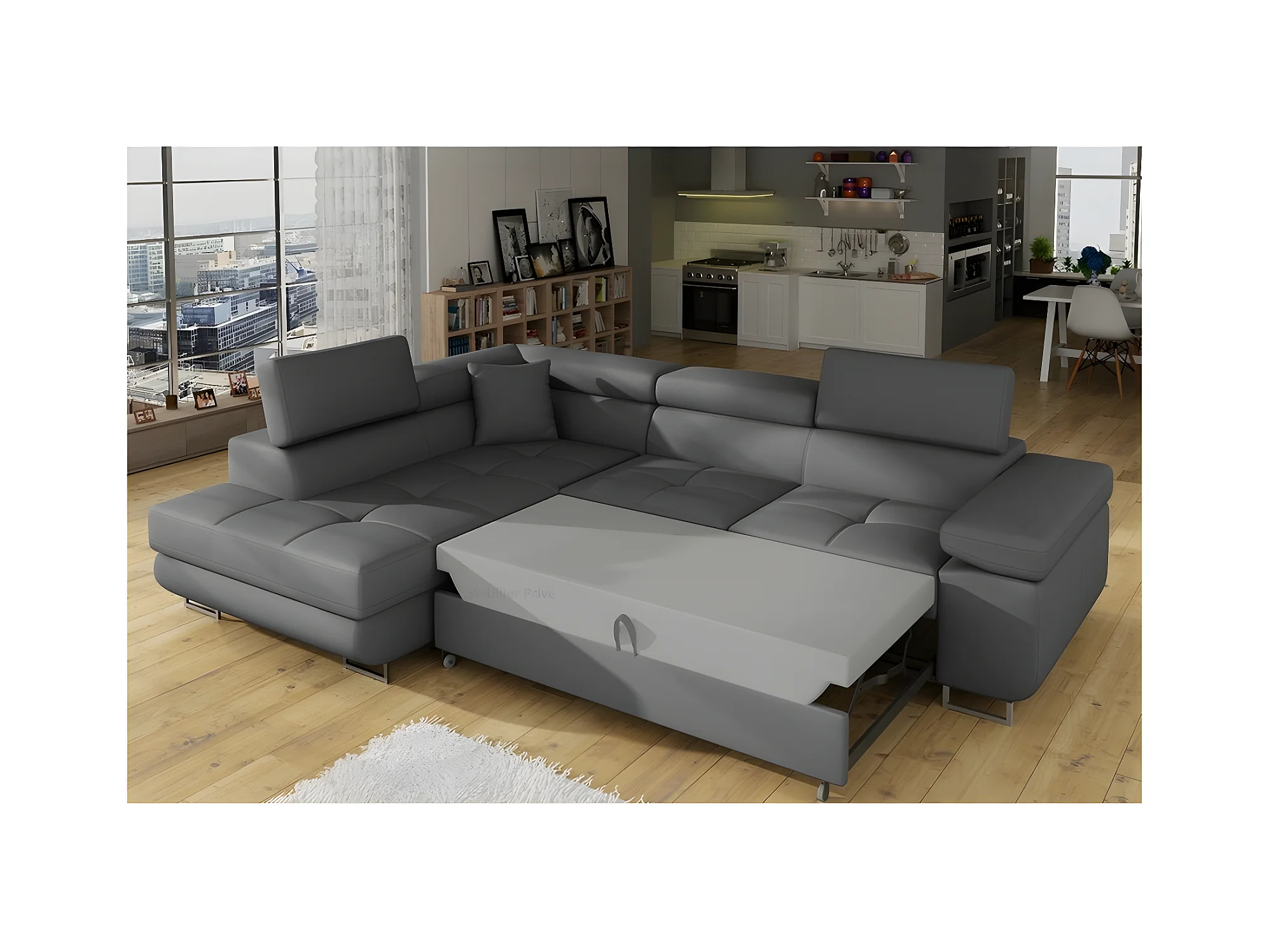 Canapé d'angle convertible en simili cuir 5 places, ANVERS SIMILI, gris foncé, angle gauche