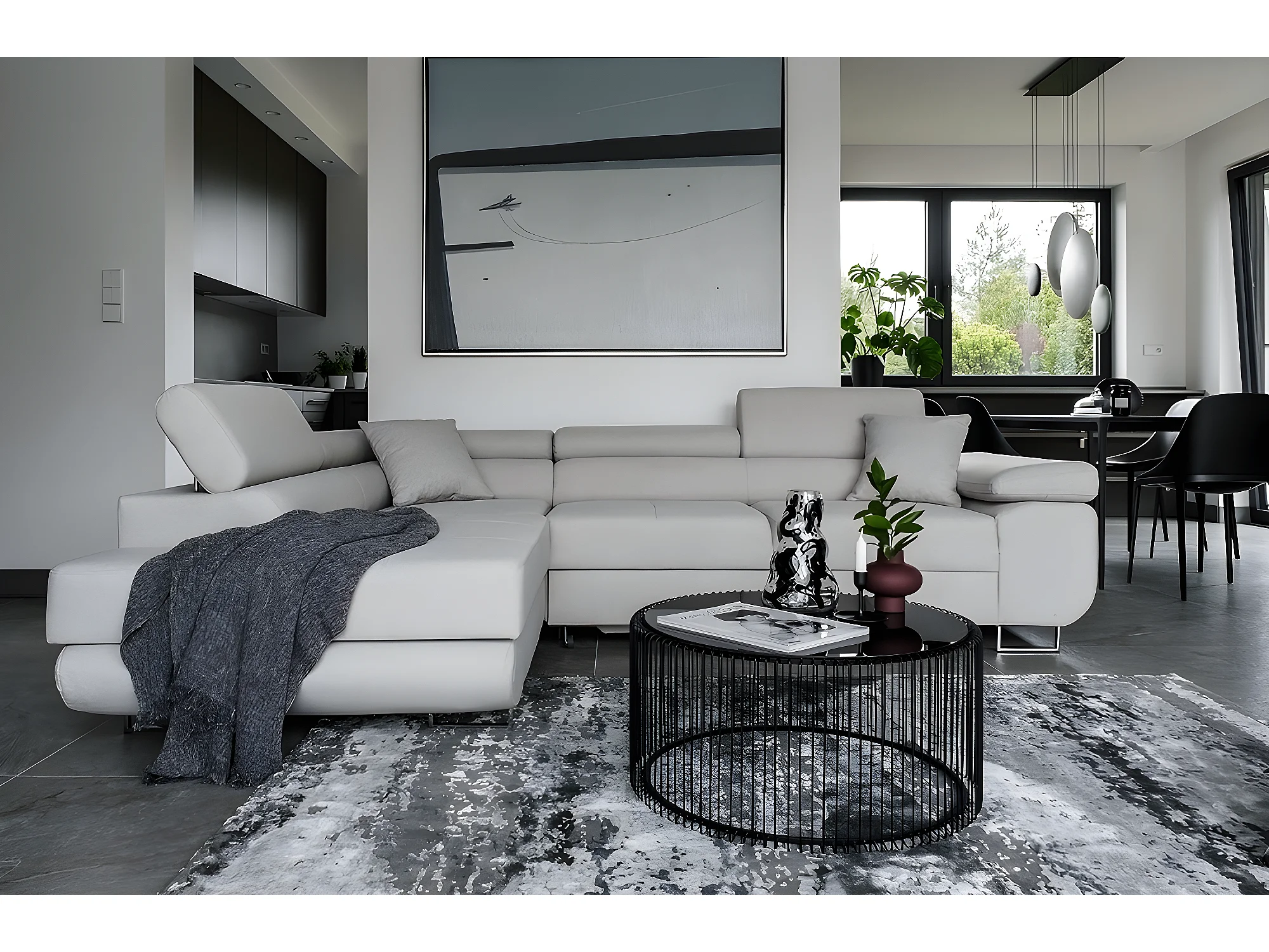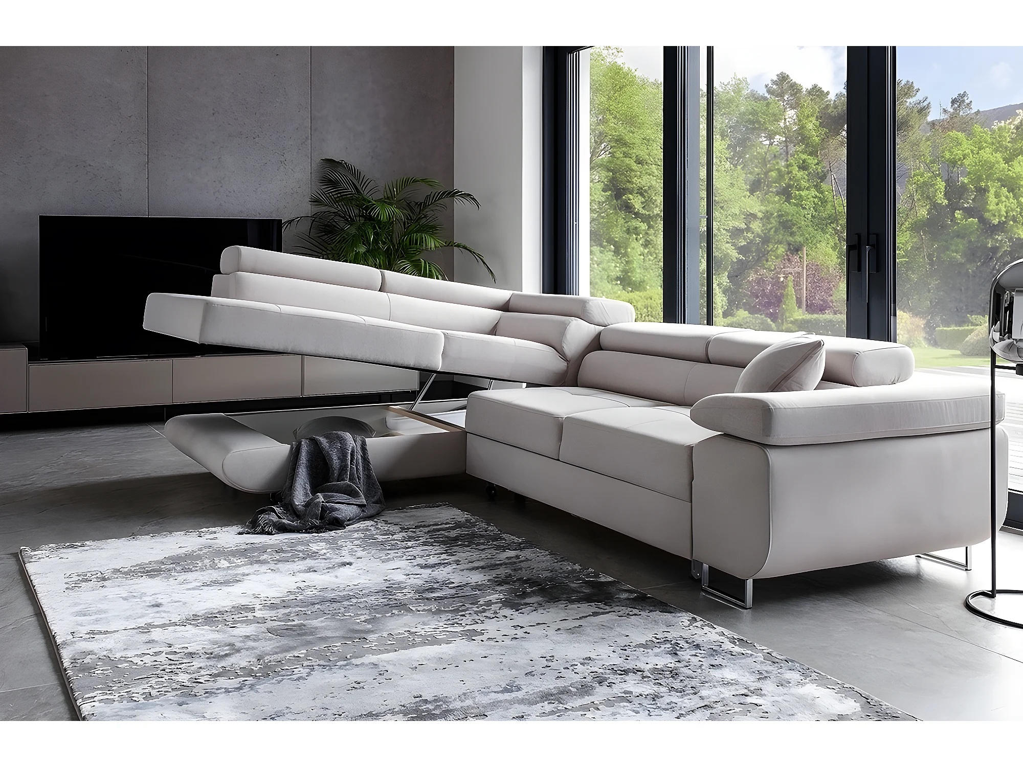 Canapé d'angle convertible en tissu luxe 5 places, ANNECY, couleur gris clair, angle gauche