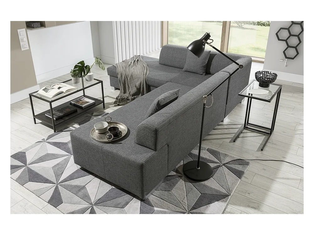Canapé d'angle convertible en tissu luxe 5 places, coffre - gris clair, angle gauche (vu de face), PORTOFINO
