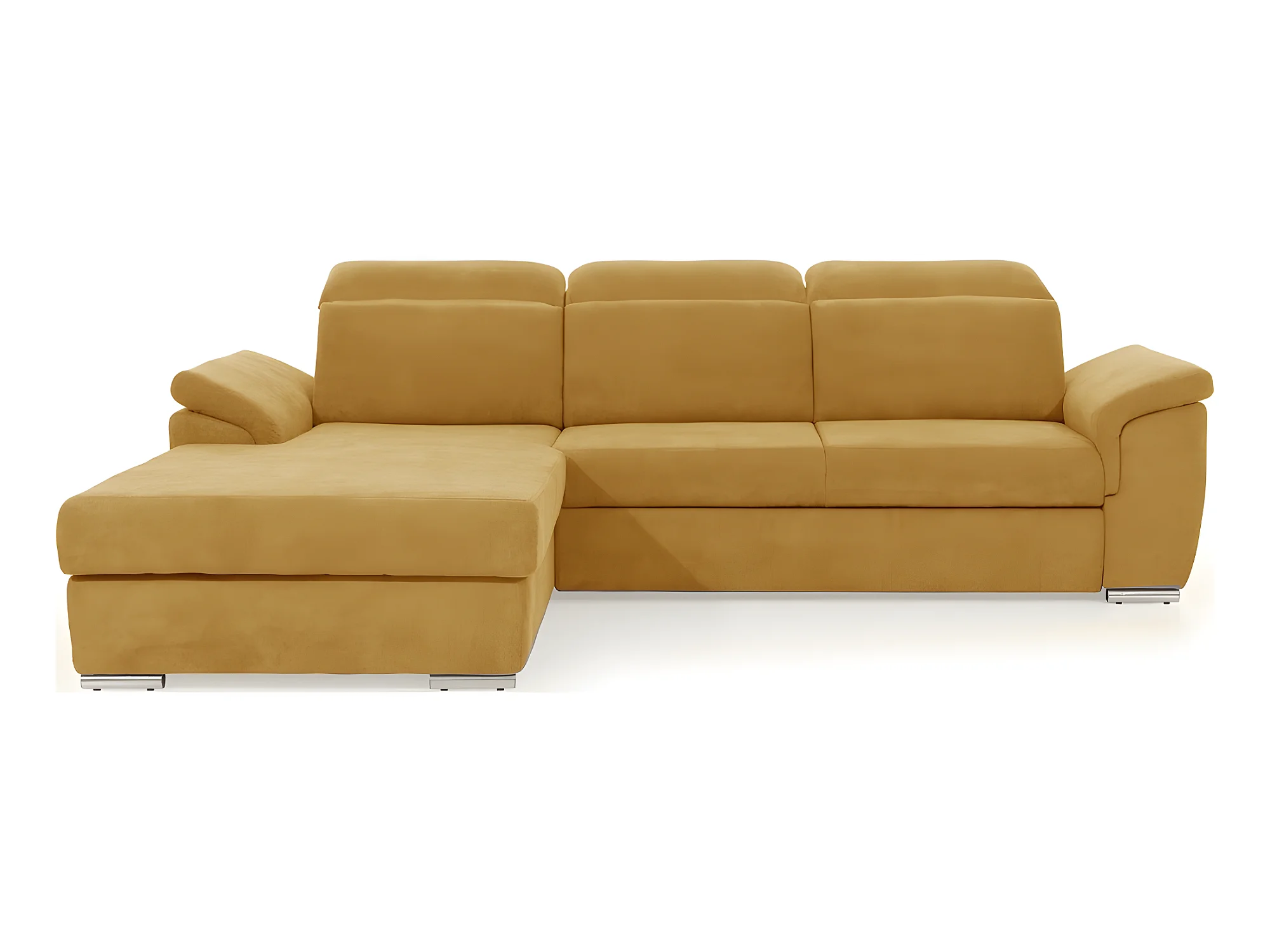 Canapé d'angle convertible en tissu Luxe, jaune moutarde, 5 places, angle gauche (vu de face) , TRESOR
