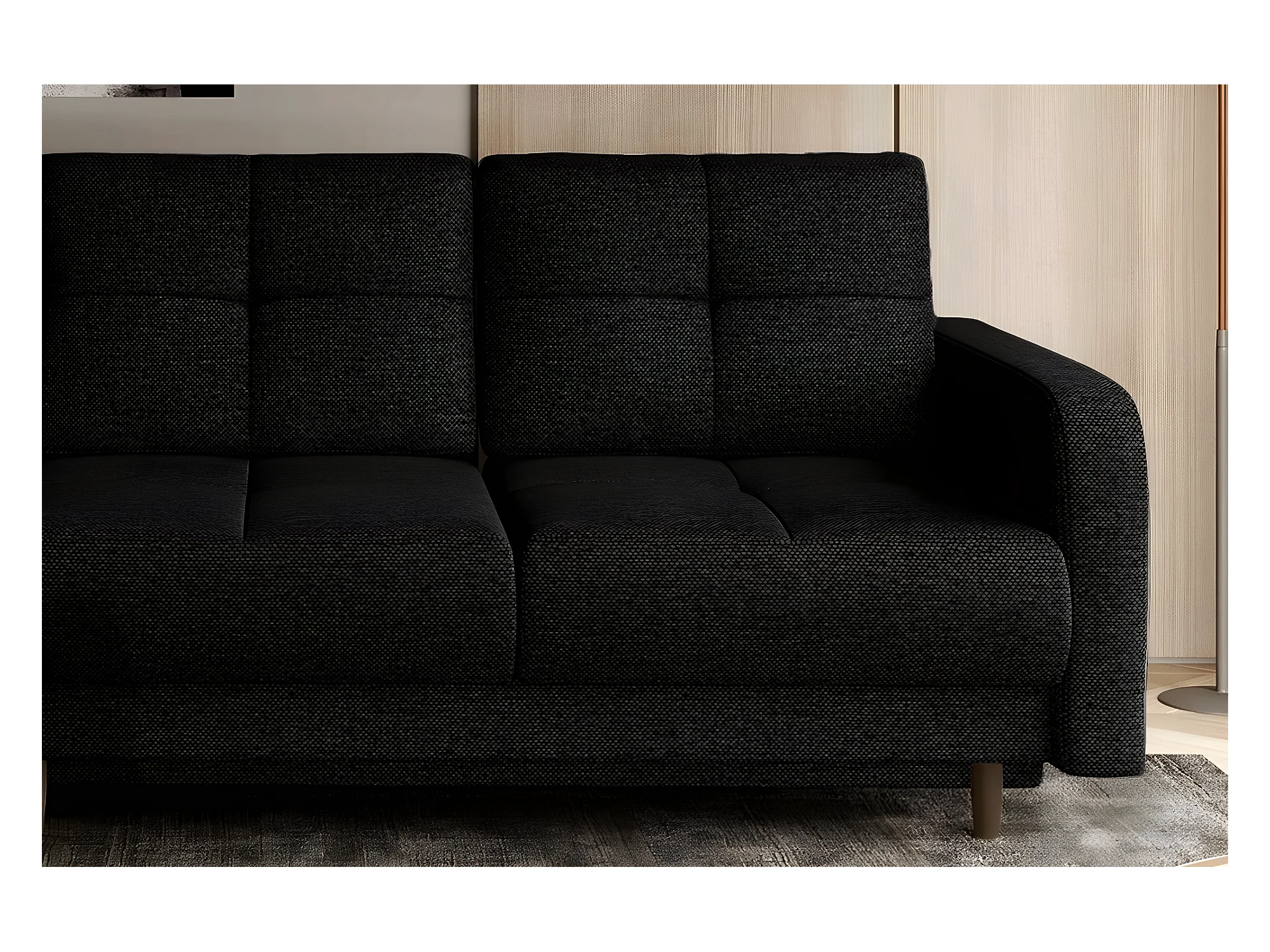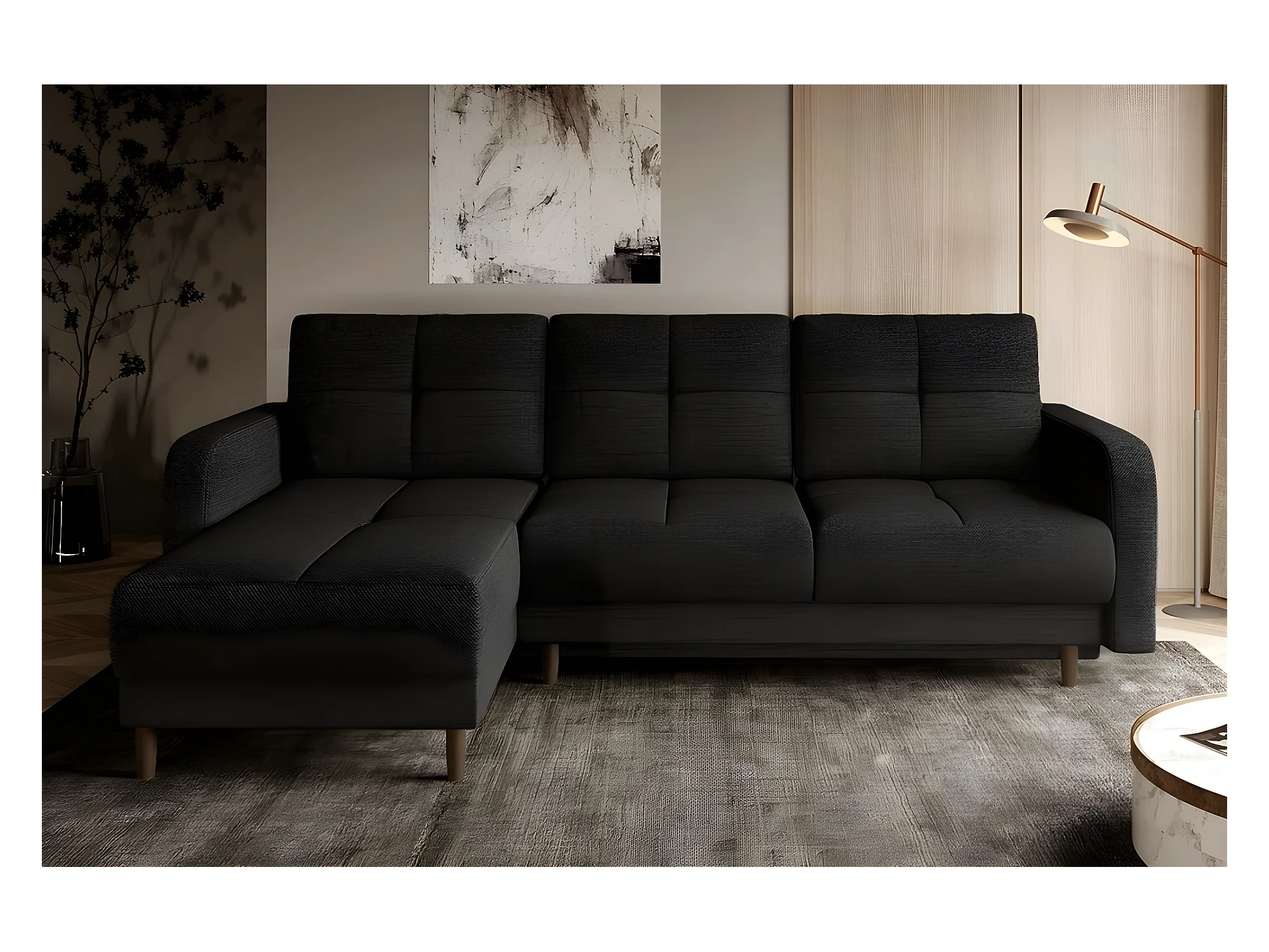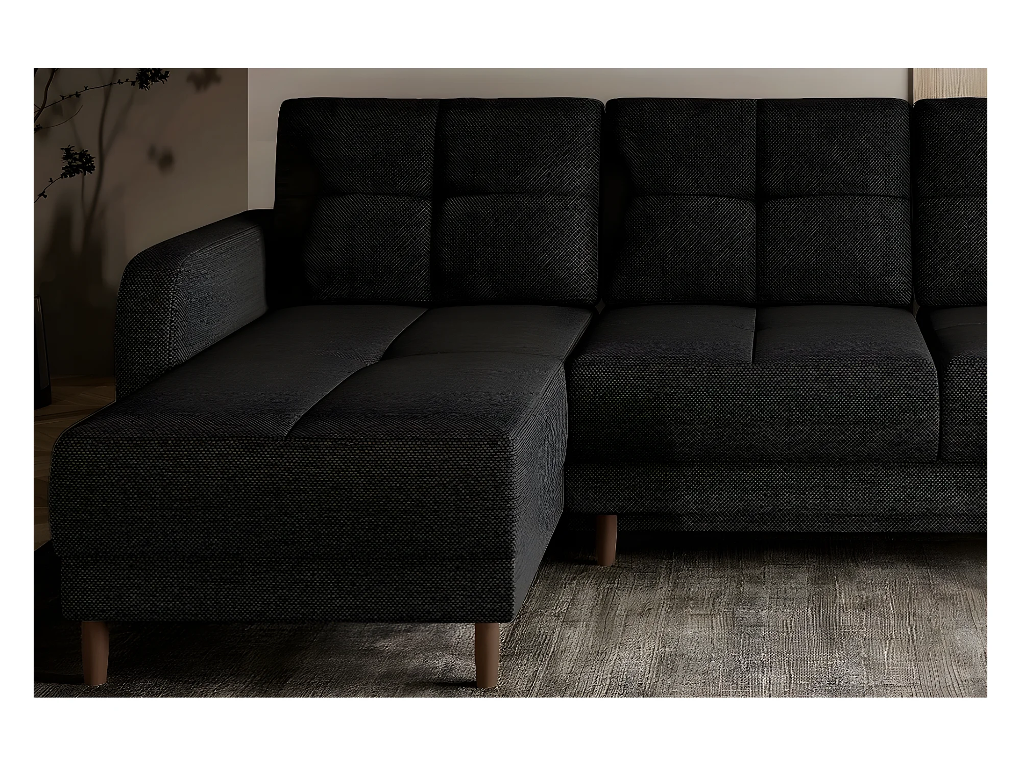 Canapé d'angle convertible en tissu luxe, rangement - noir, angle gauche (vu de face), ROXANE