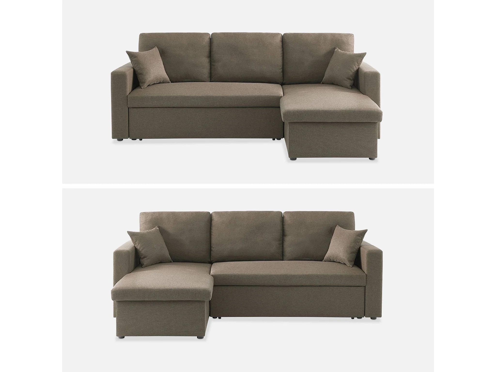 Canapé d'angle convertible en tissu marron - IDA - 3 places. fauteuil d'angle réversible coffre rangement lit modulable