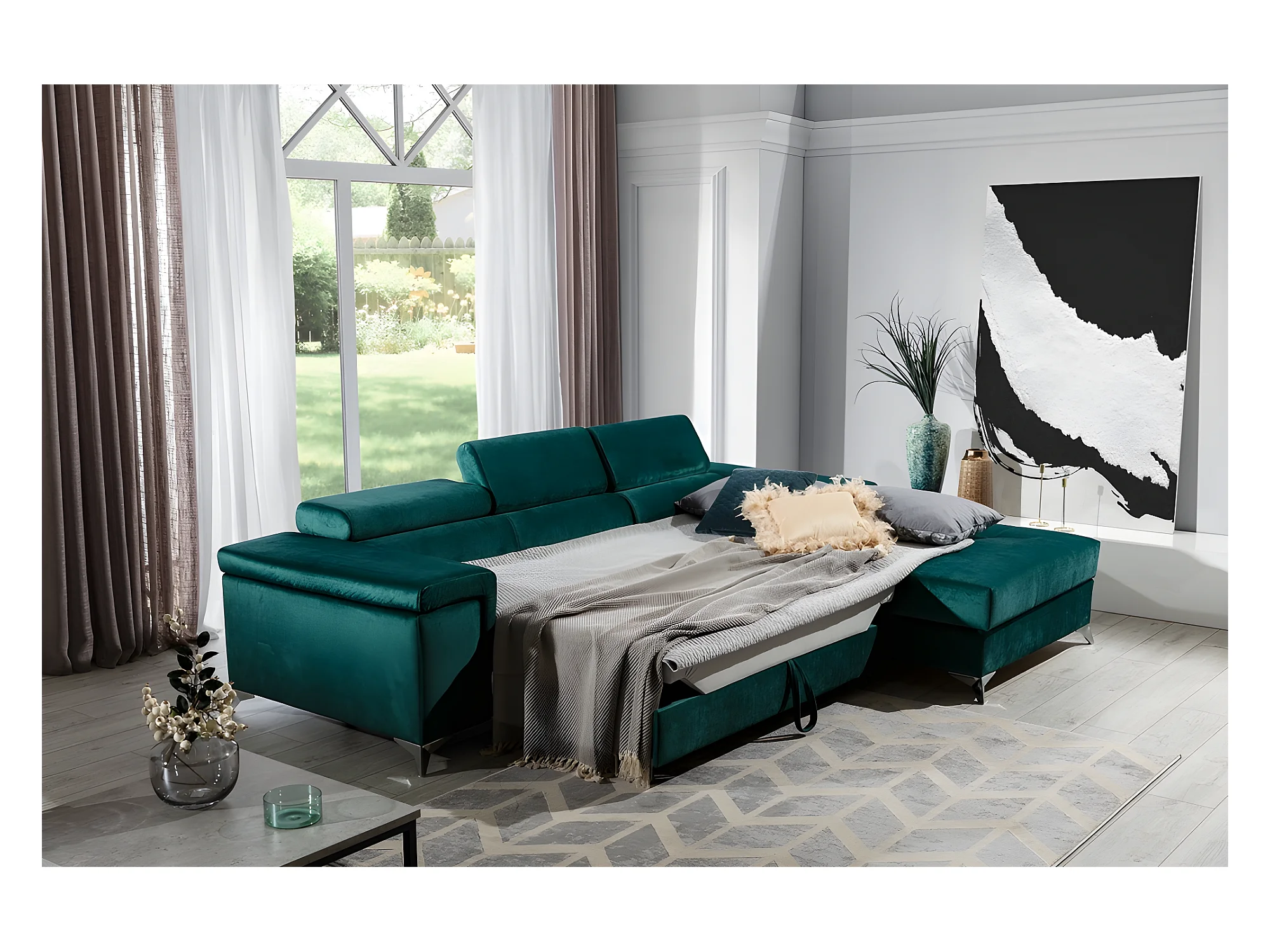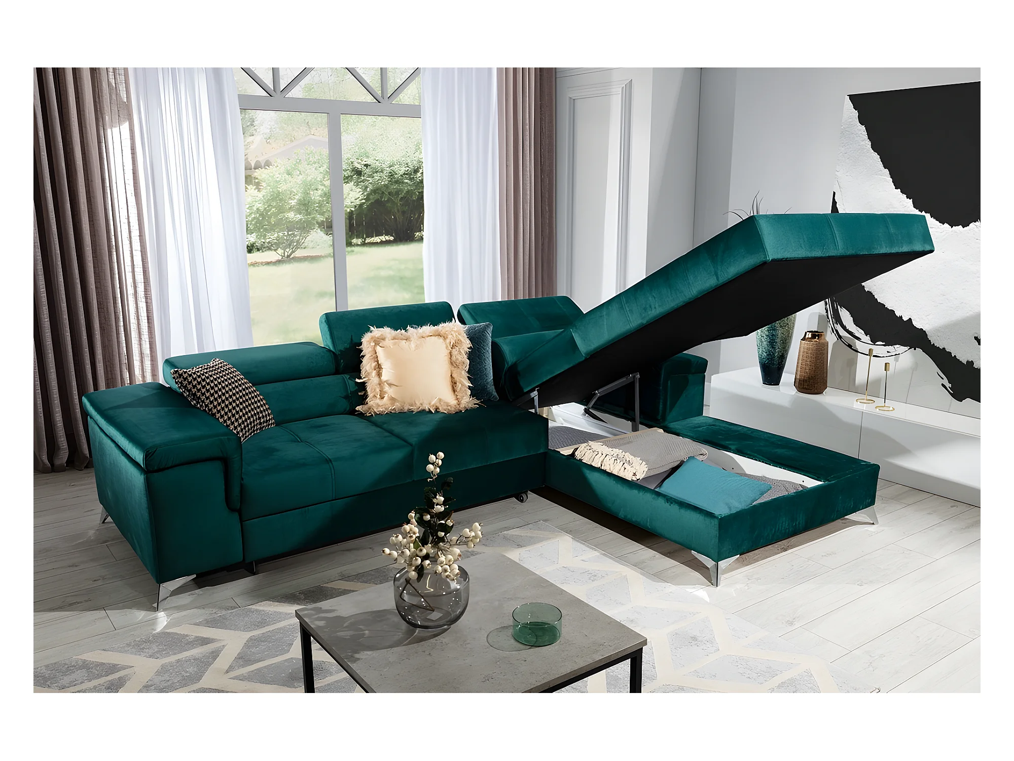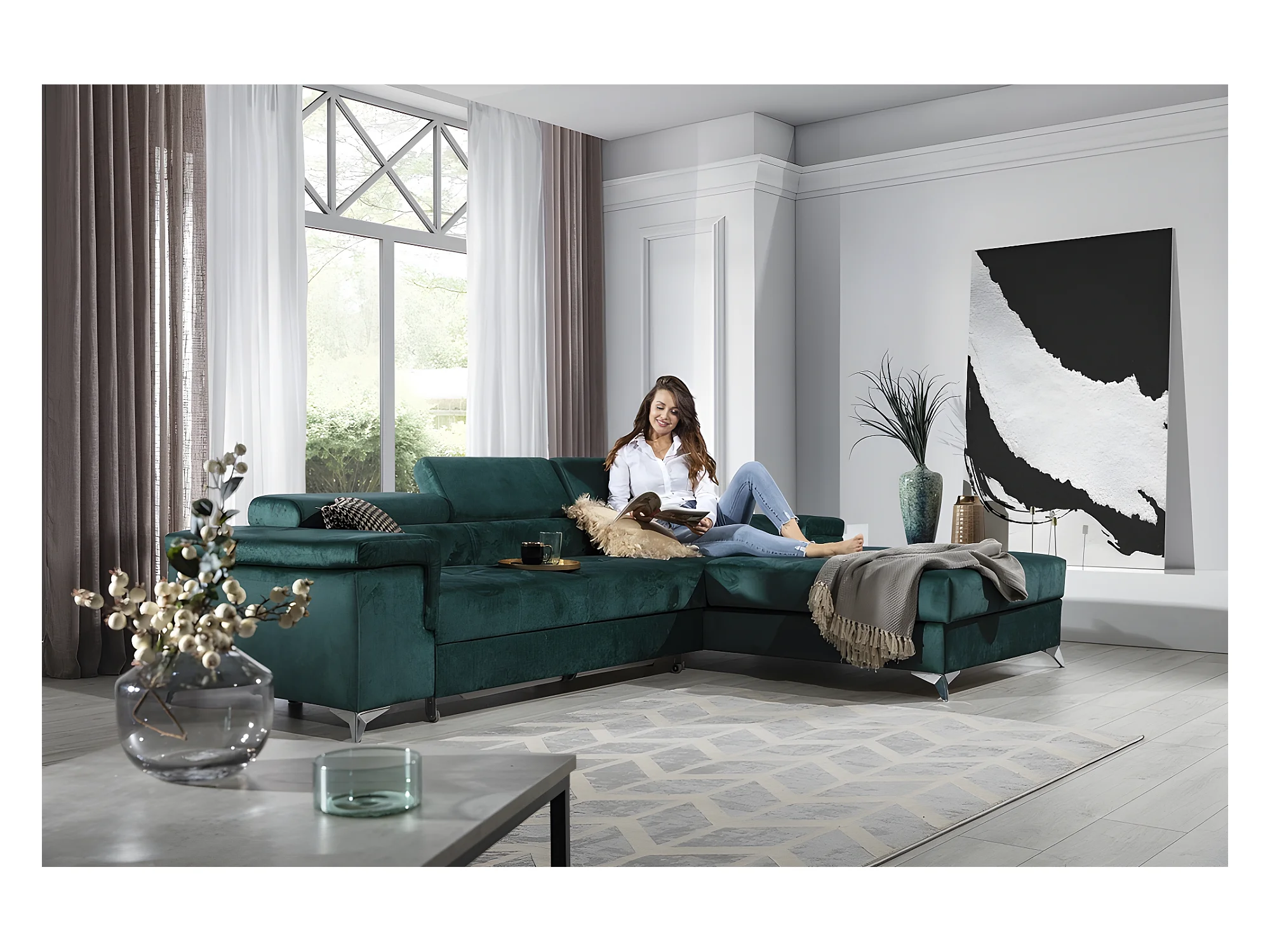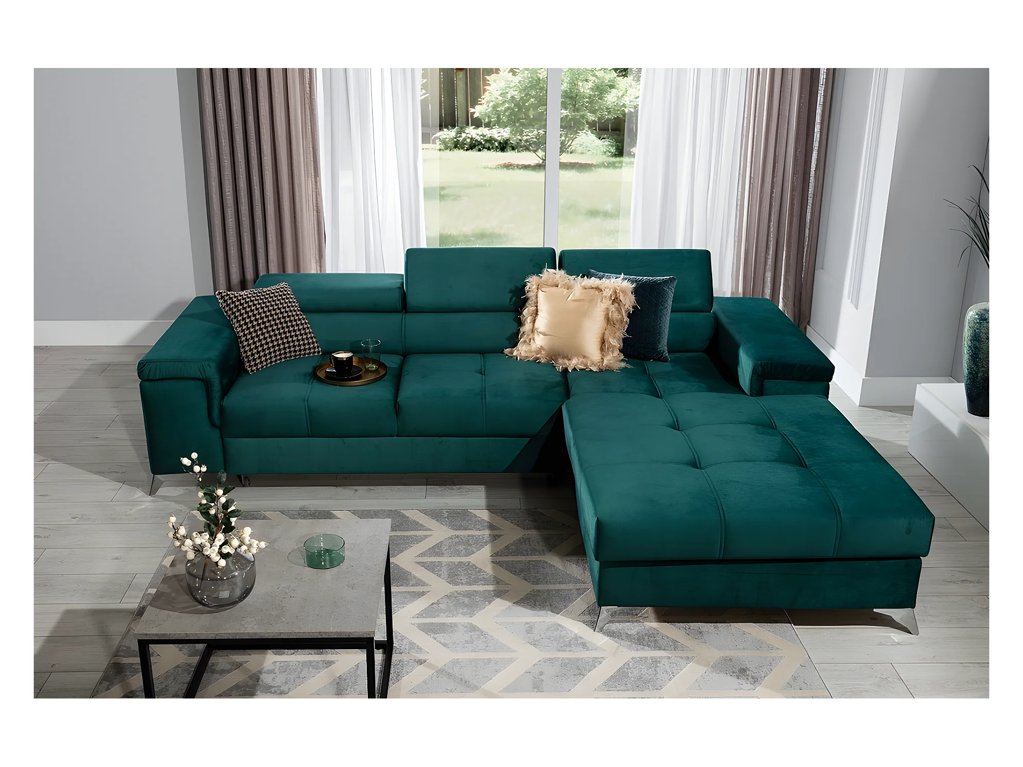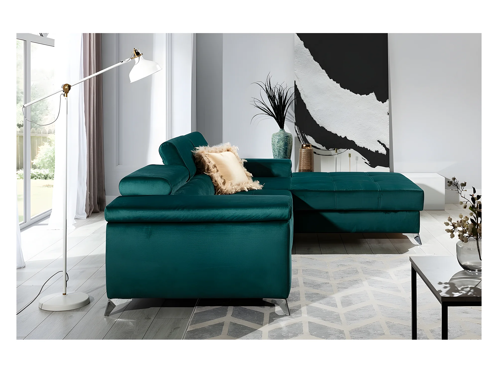 Canapé d'angle convertible en tissu velours luxe 5 places, RICHARD, vert, angle droit