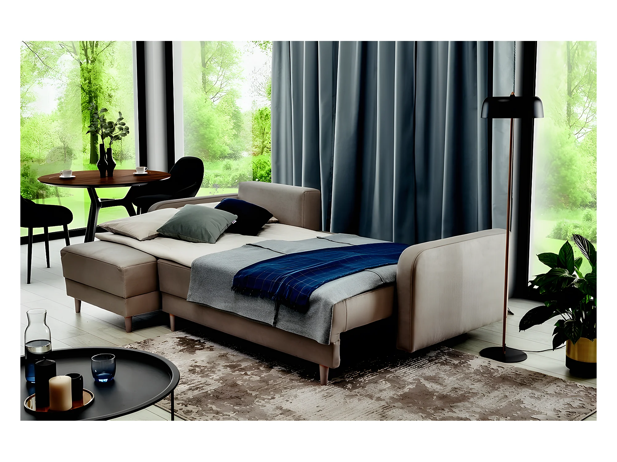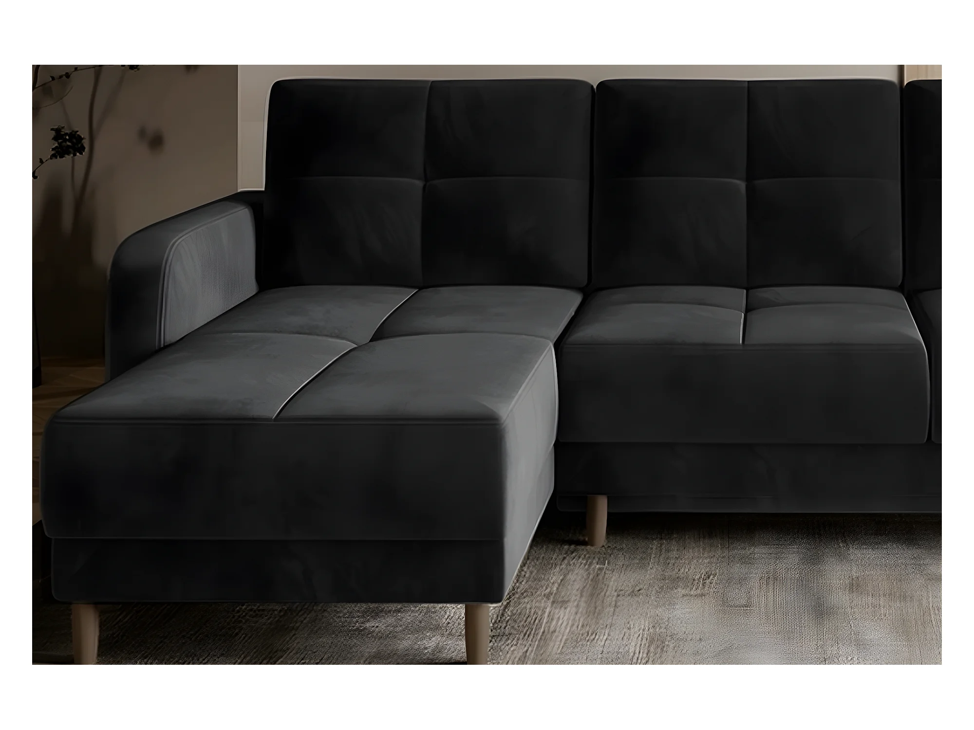 Canapé d'angle convertible en tissu velours luxe, rangement - noir, angle gauche (vu de face), ROXANE VELOURS