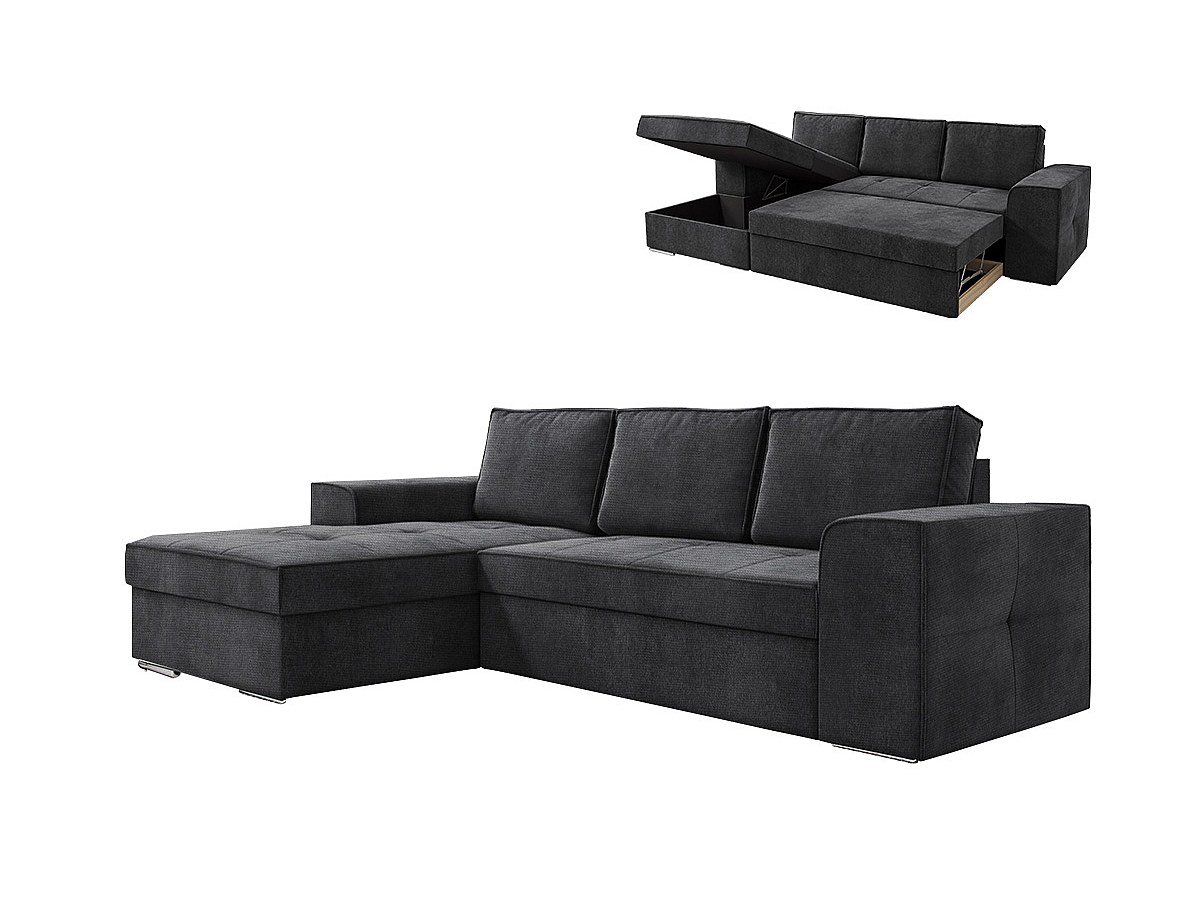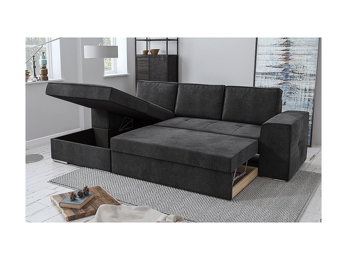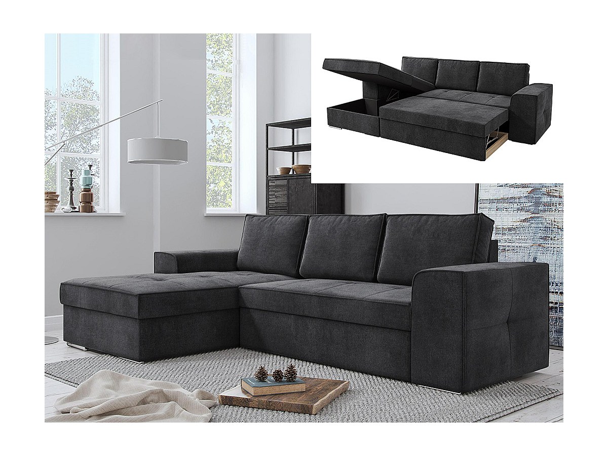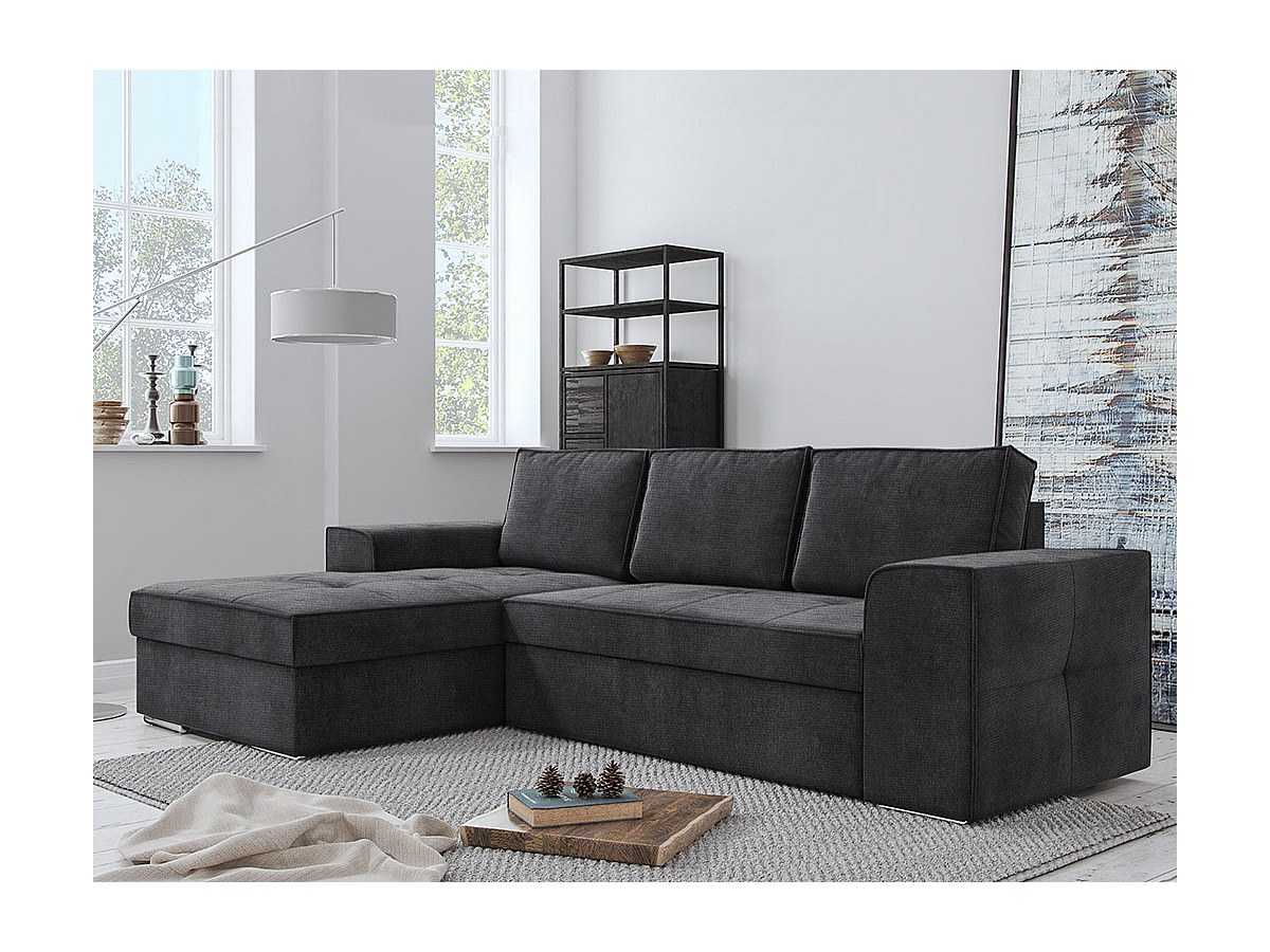 Canapé d'angle convertible en tissu ZACARY - Anthracite - Angle gauche