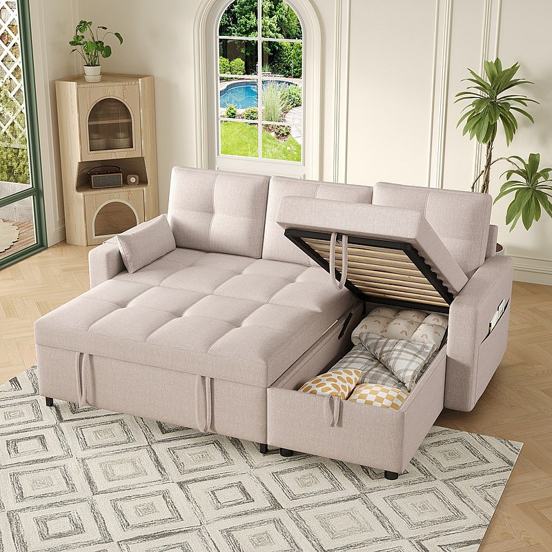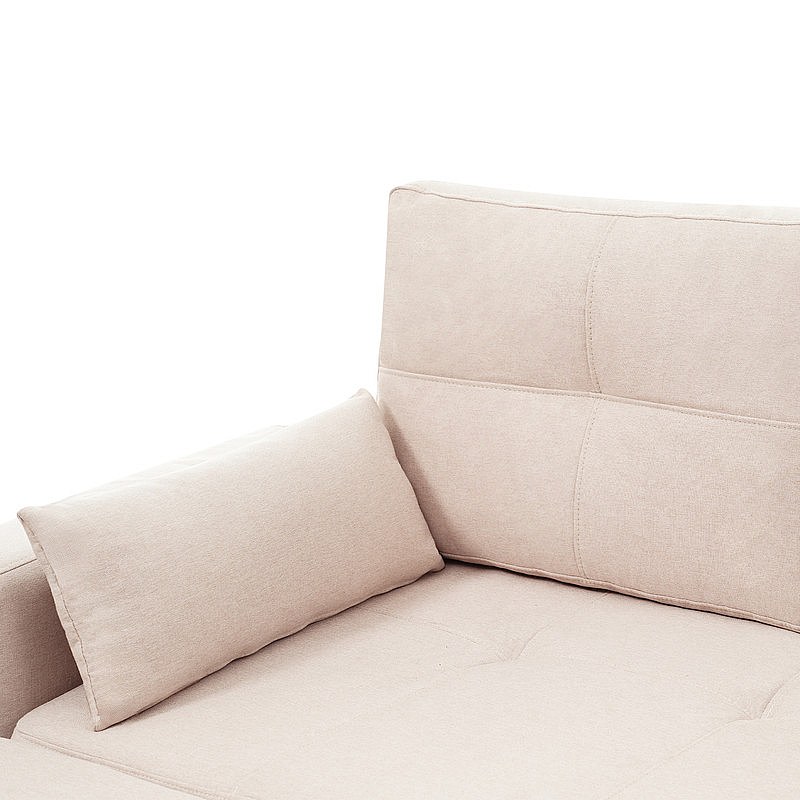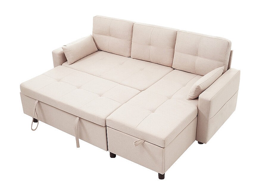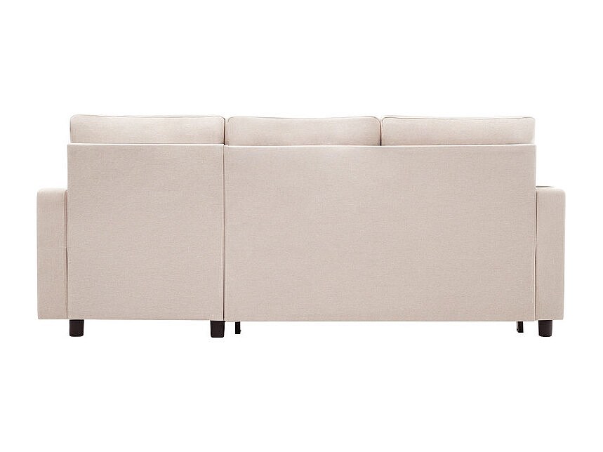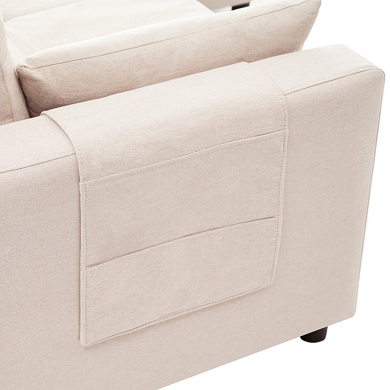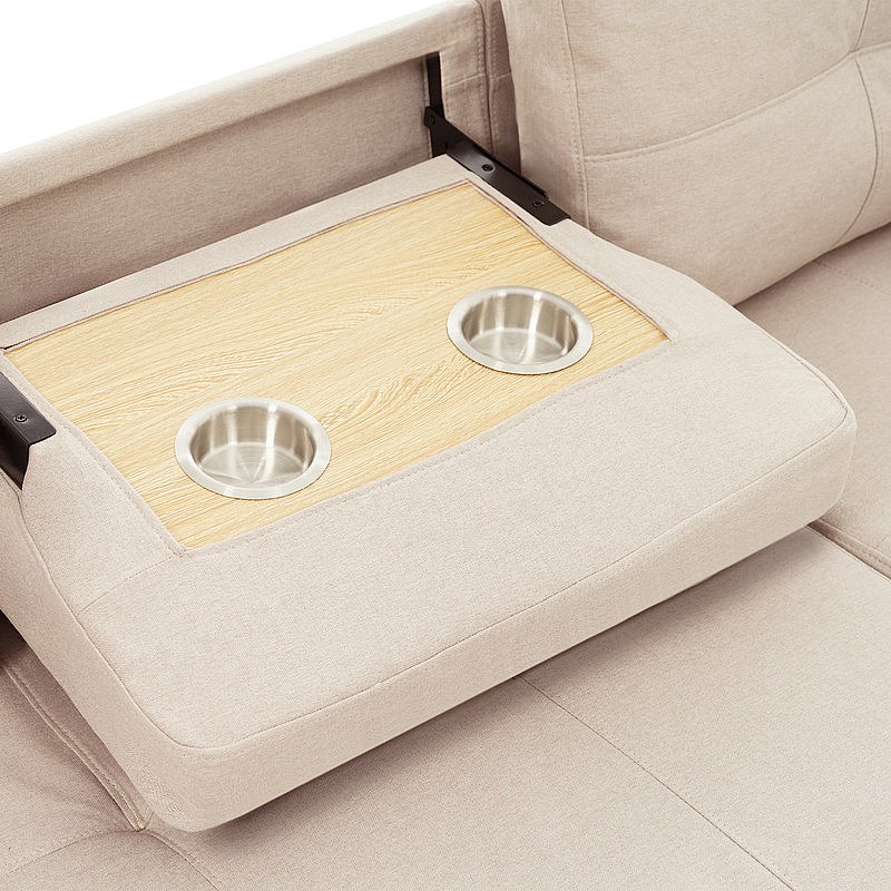Canapé d'angle convertible en velours - 3 places - avec rangement, porte-gobelets en acier inoxydable - 205x139x87cm - Beige