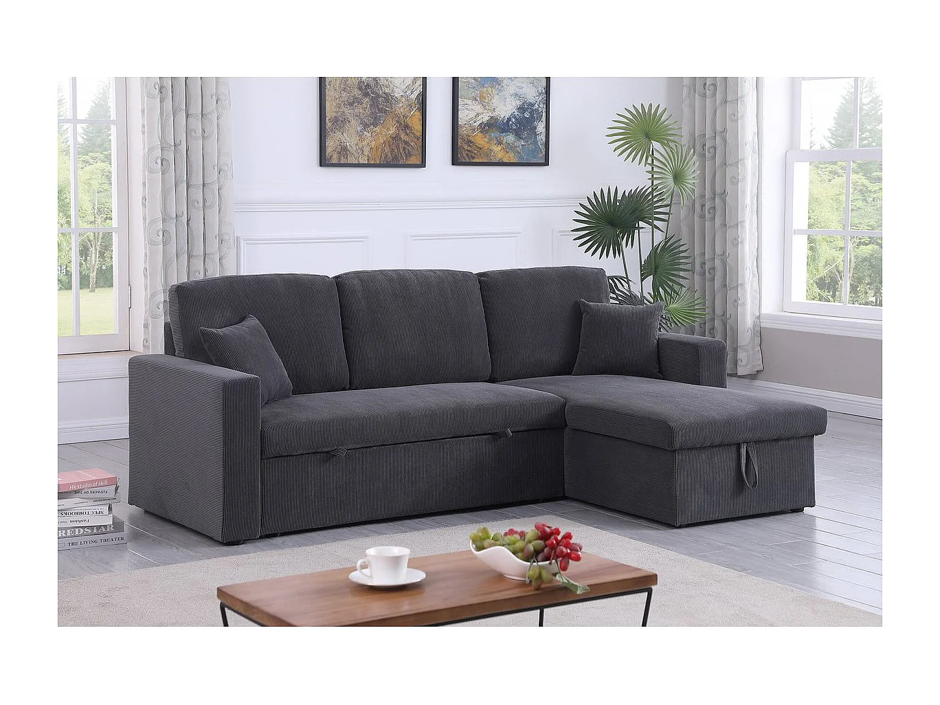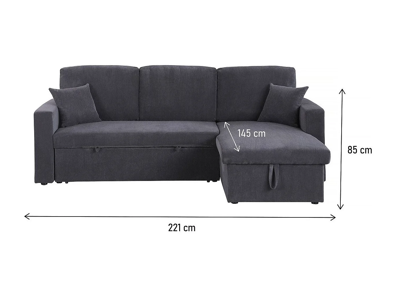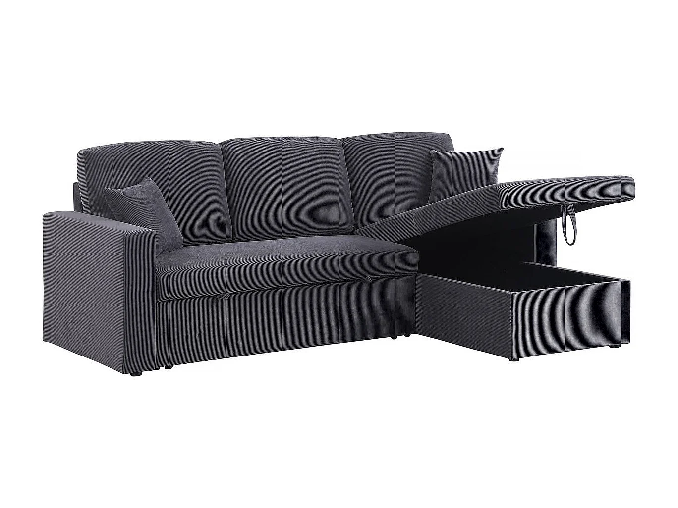 Canapé d'angle convertible en velours côtelé "Alain" - 3 places - Gris