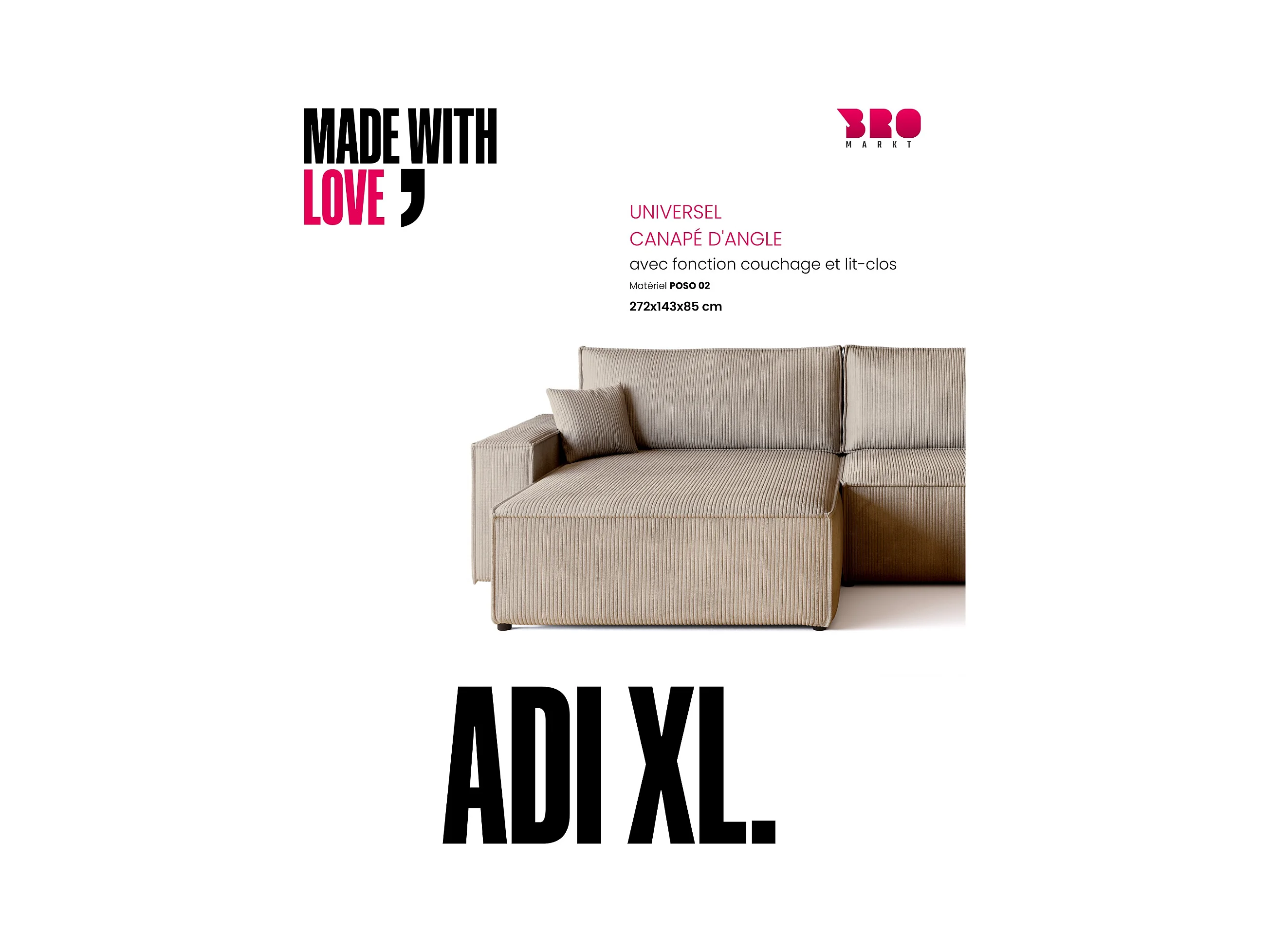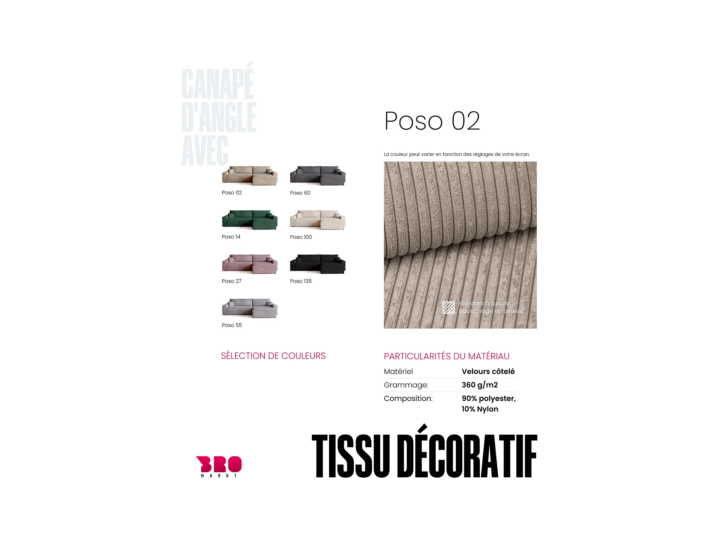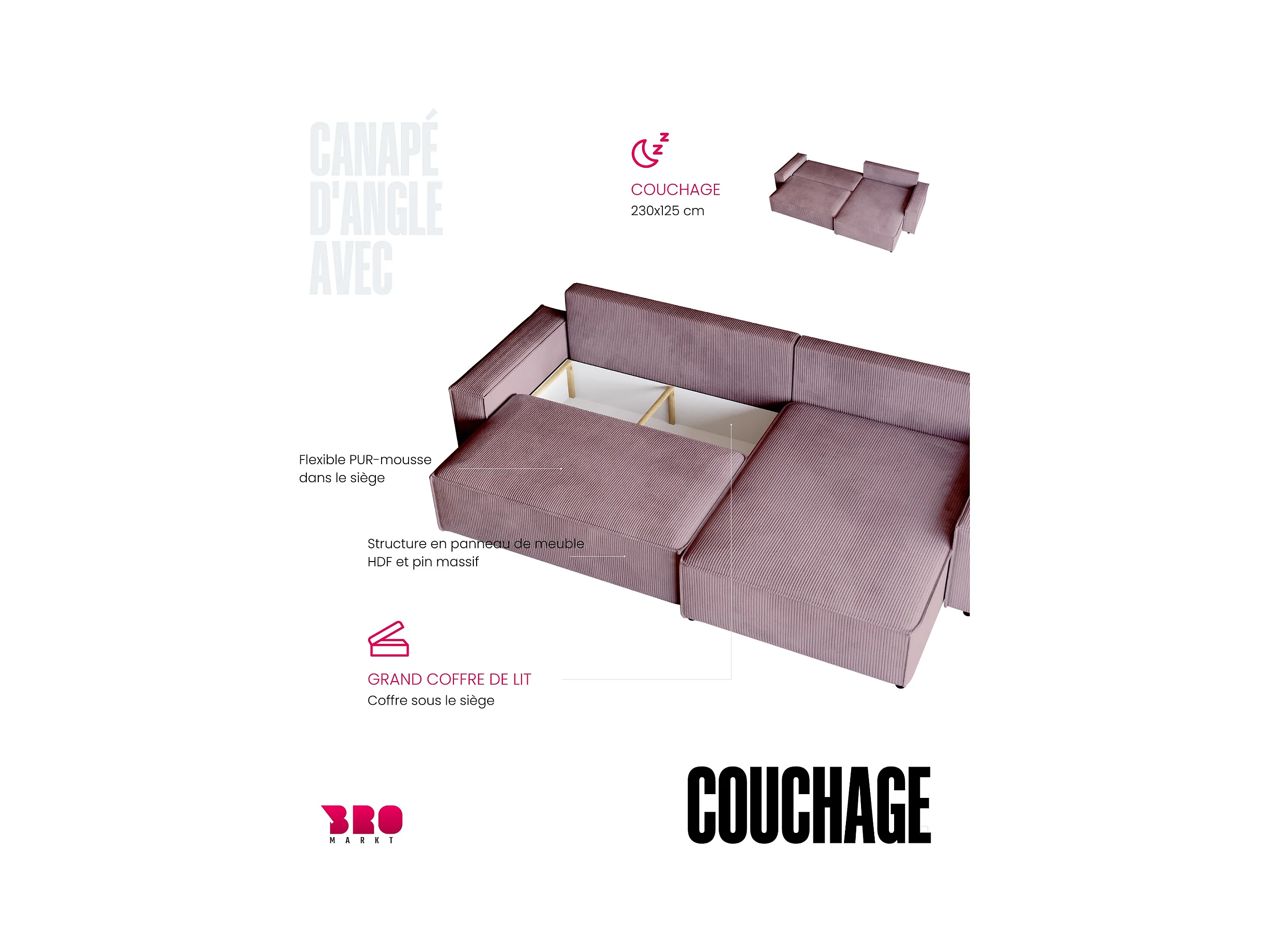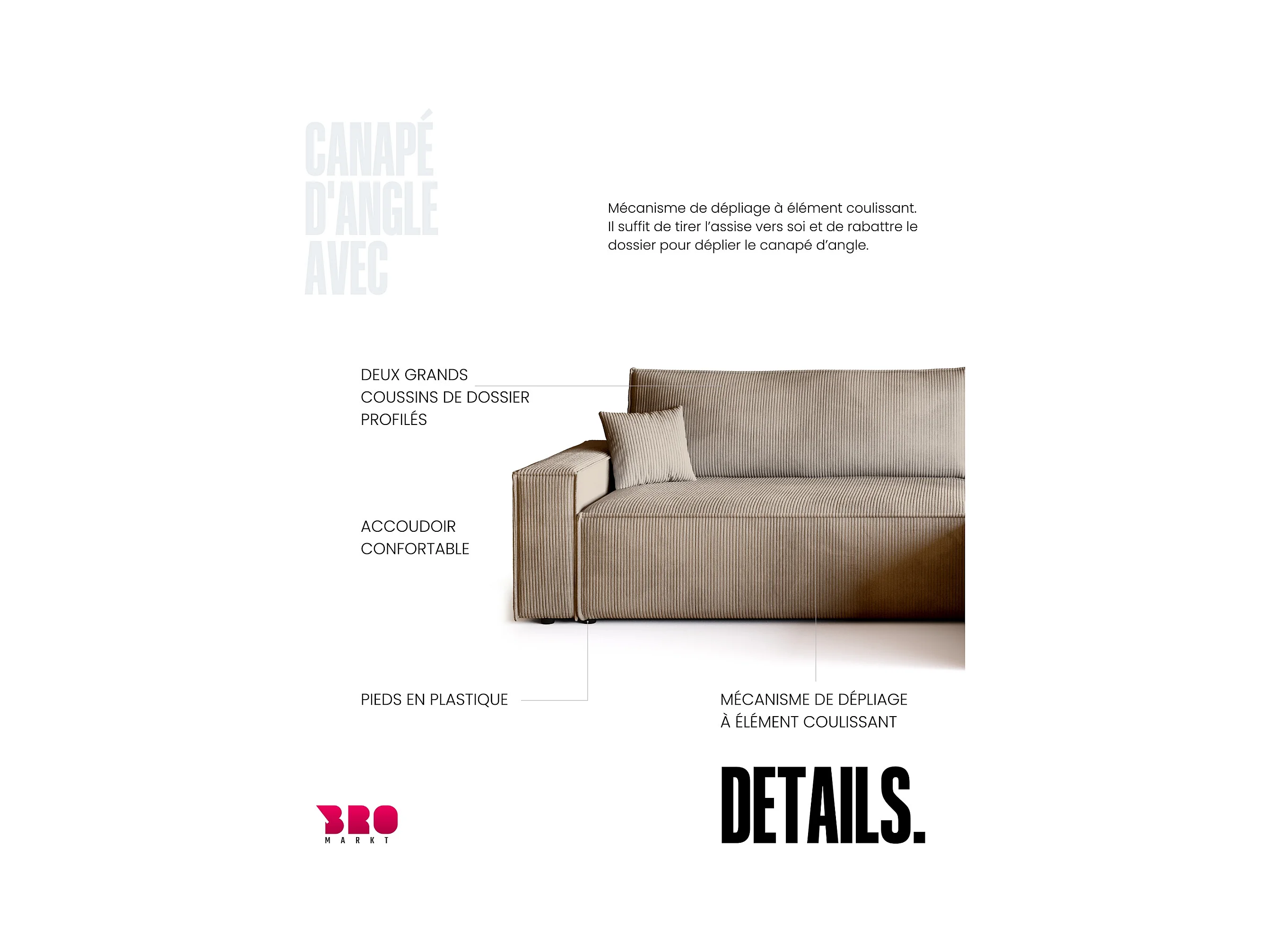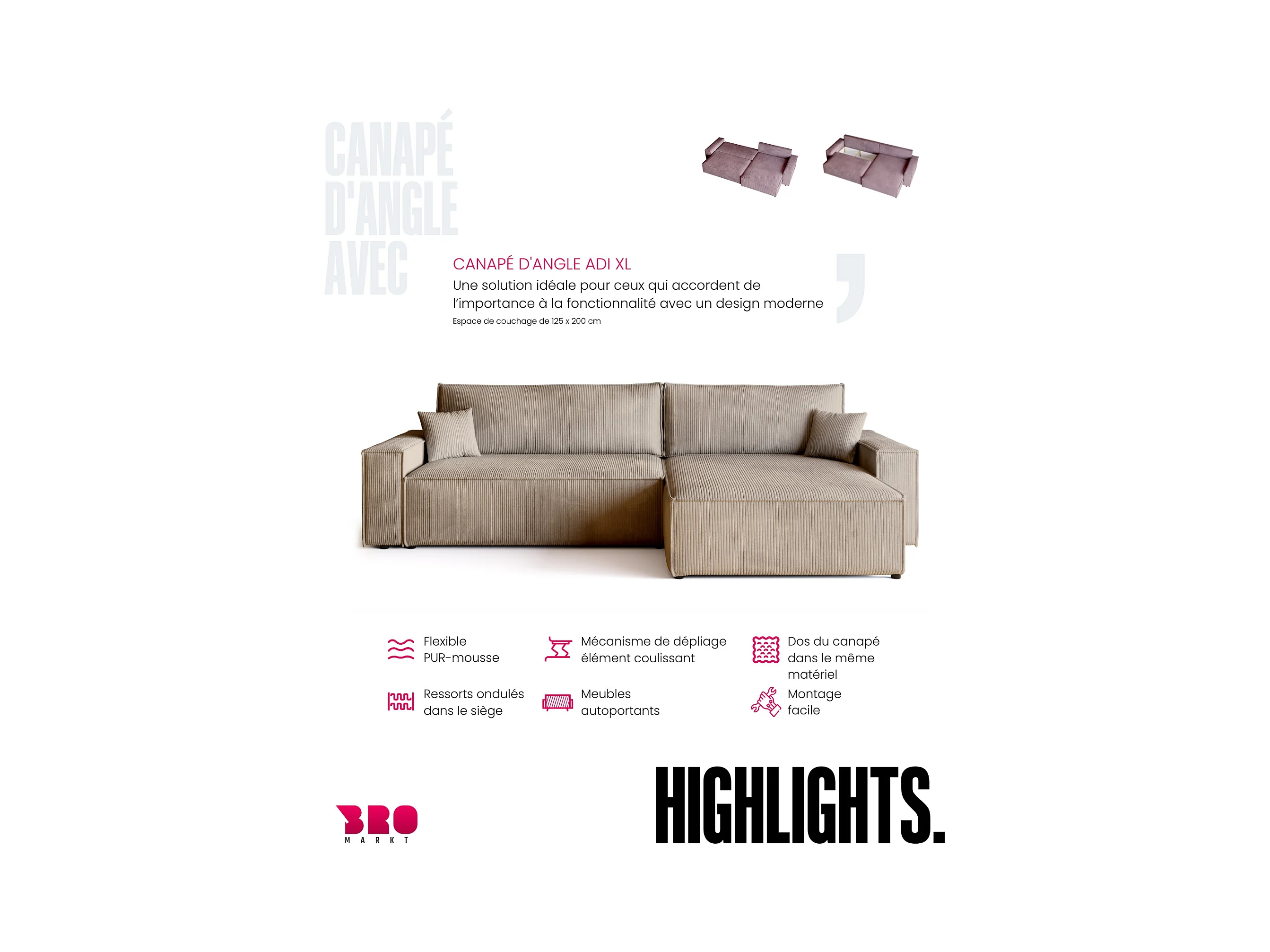 Canapé d'angle convertible en velours côtelé beige ADI XL
