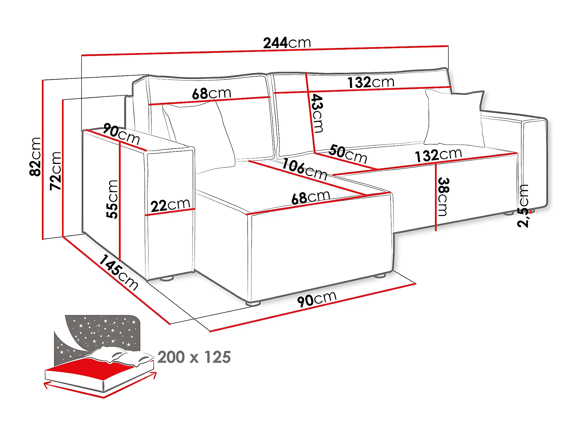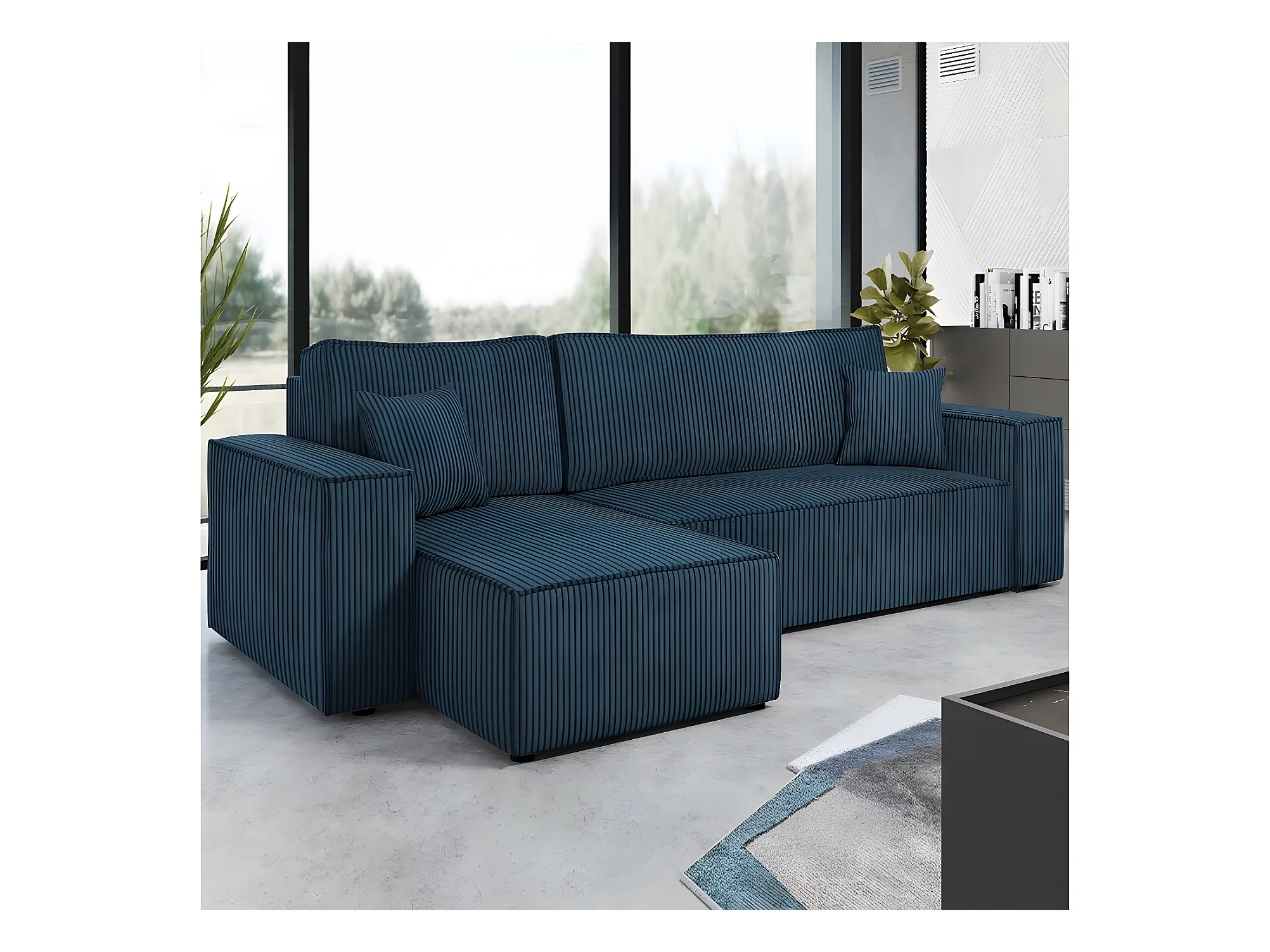Canapé d'angle convertible en velours côtelé "Karl " - 3 places - Bleu
