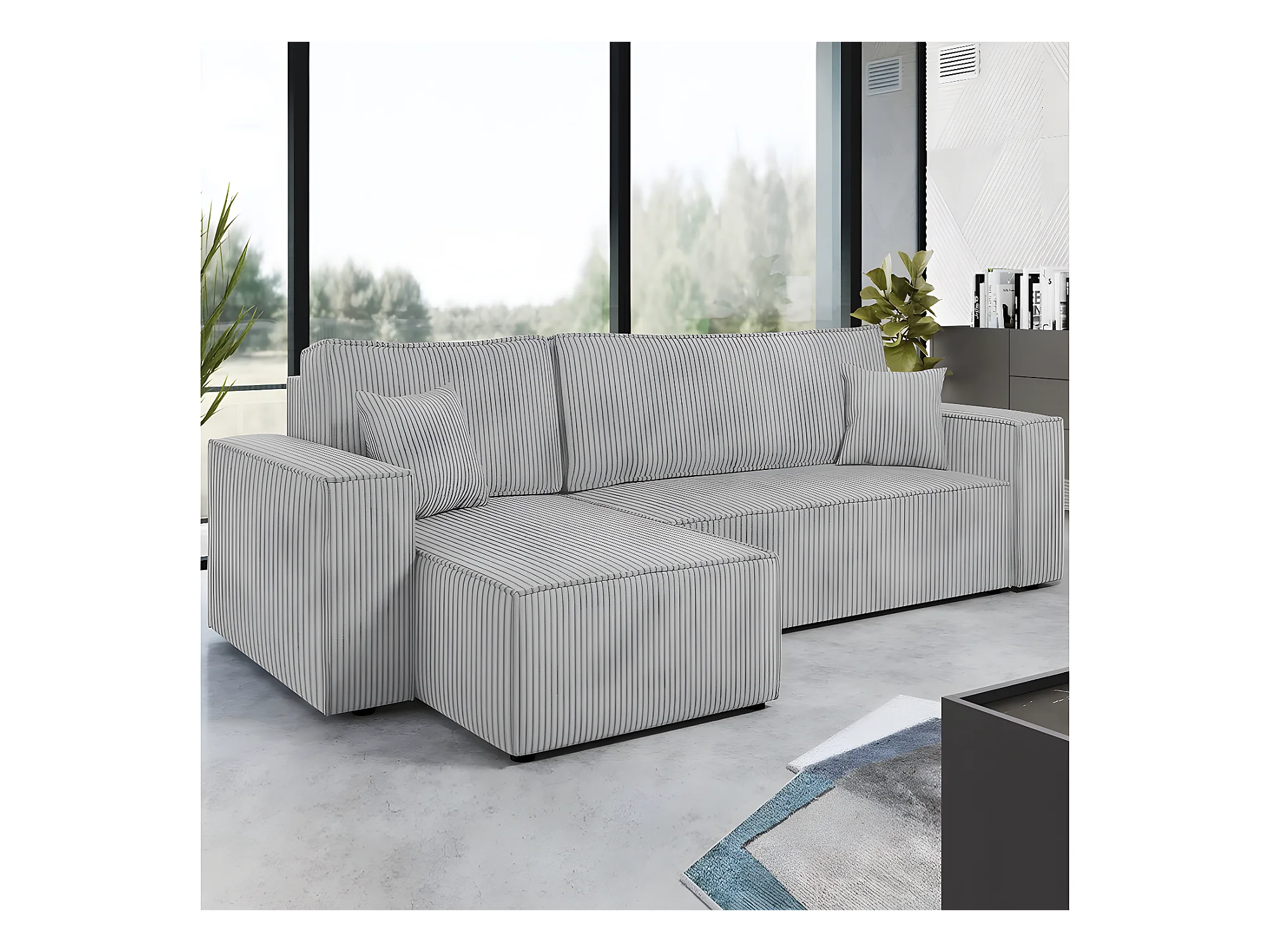 Canapé d'angle convertible en velours côtelé "Karl " - 3 places - Gris clair