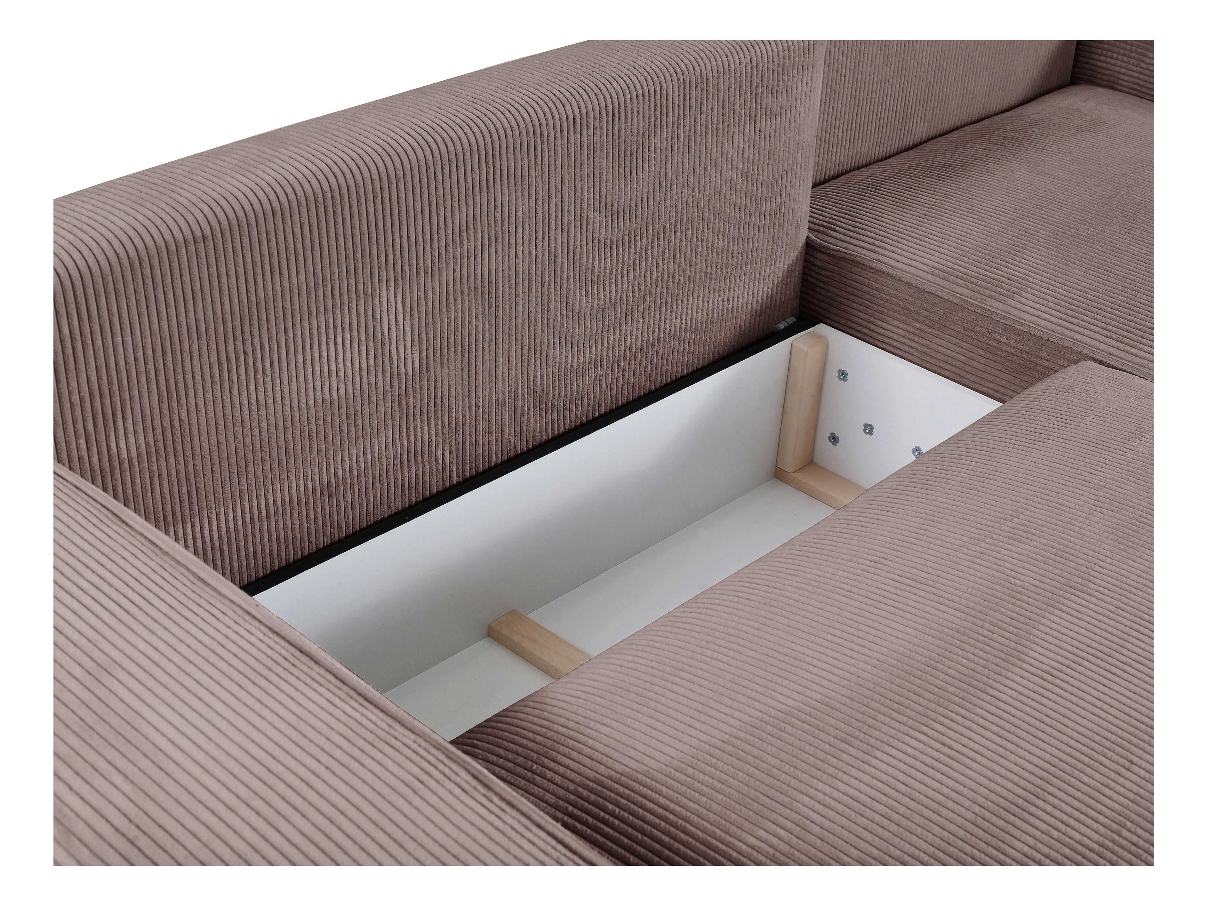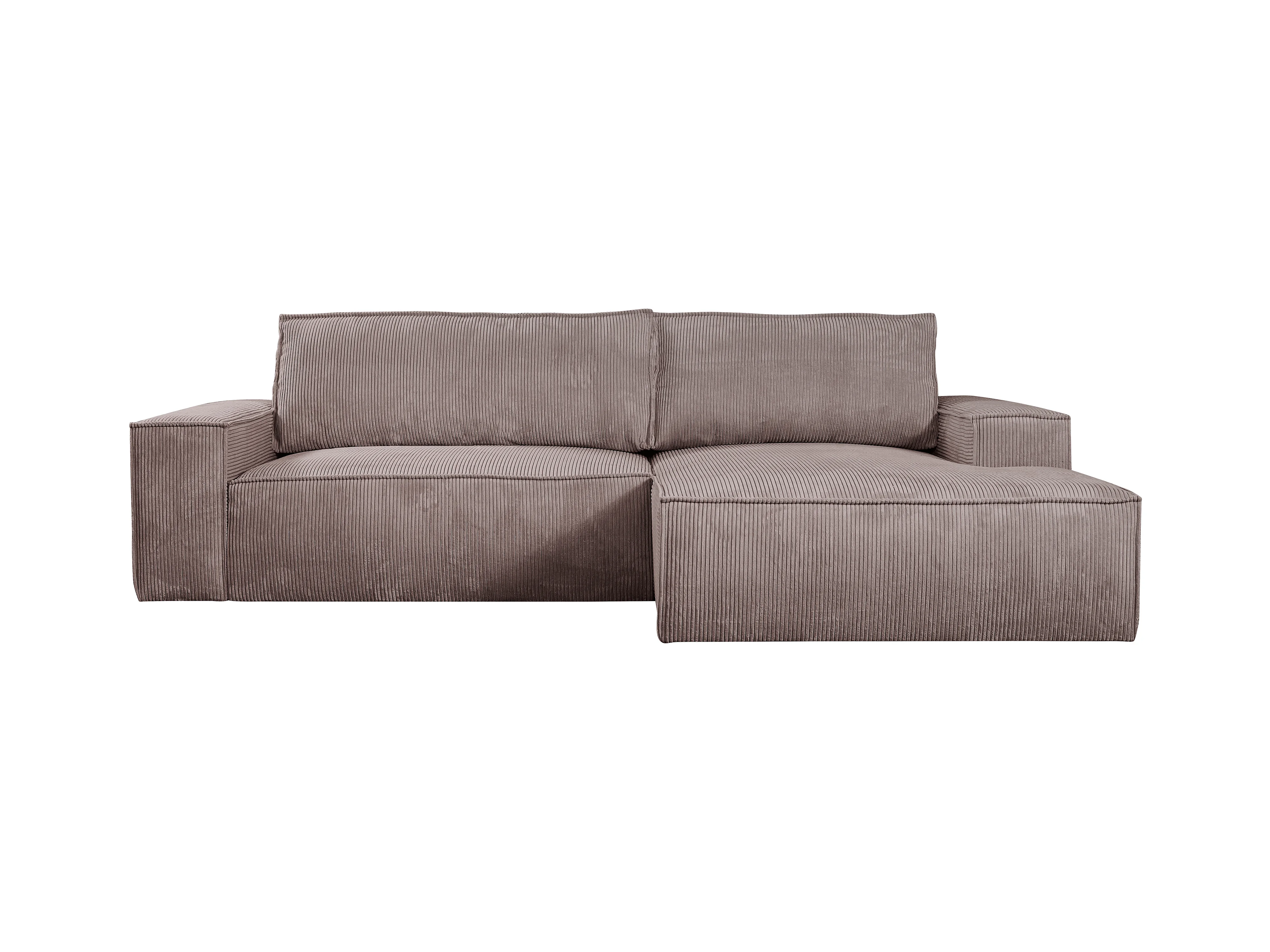 Canapé d'angle droit convertible en velours côtelé mauve AMELIA
