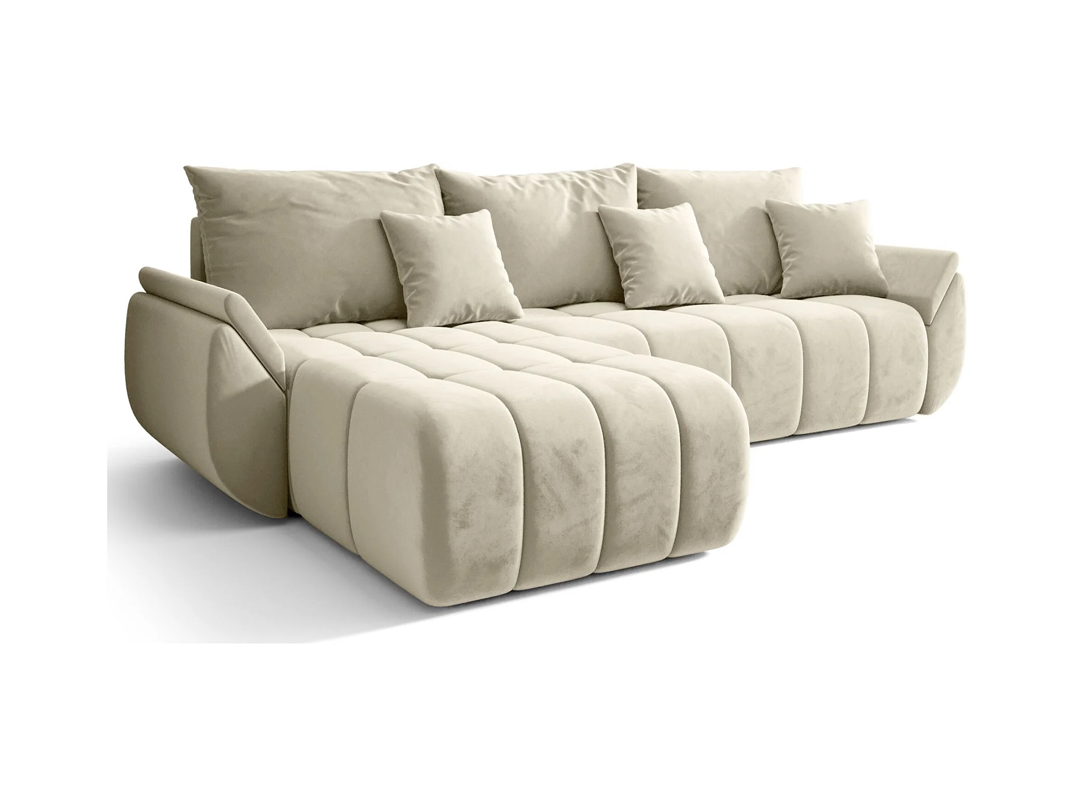 Canapé d'angle convertible - en velours crème - côté gauche - ROMULDI
