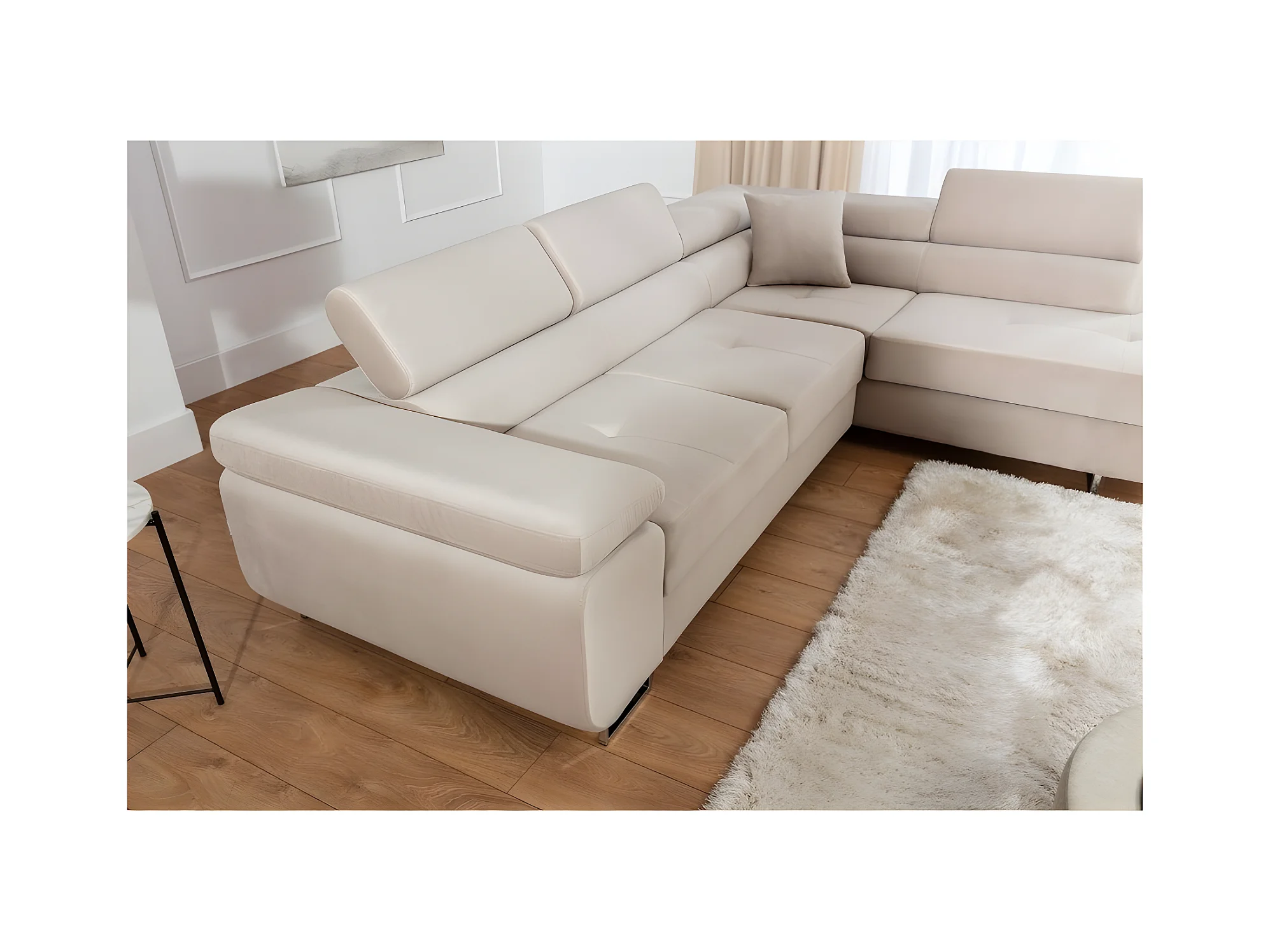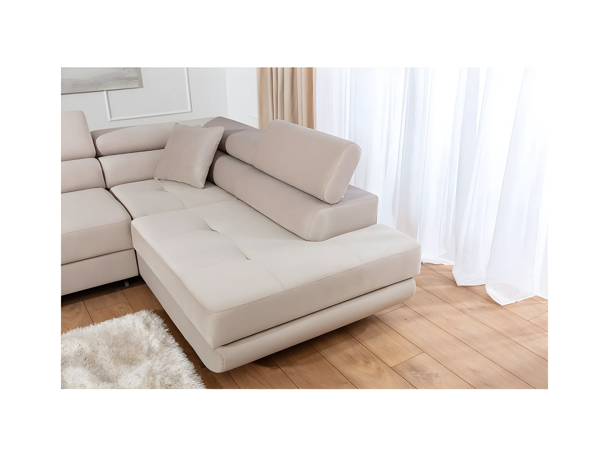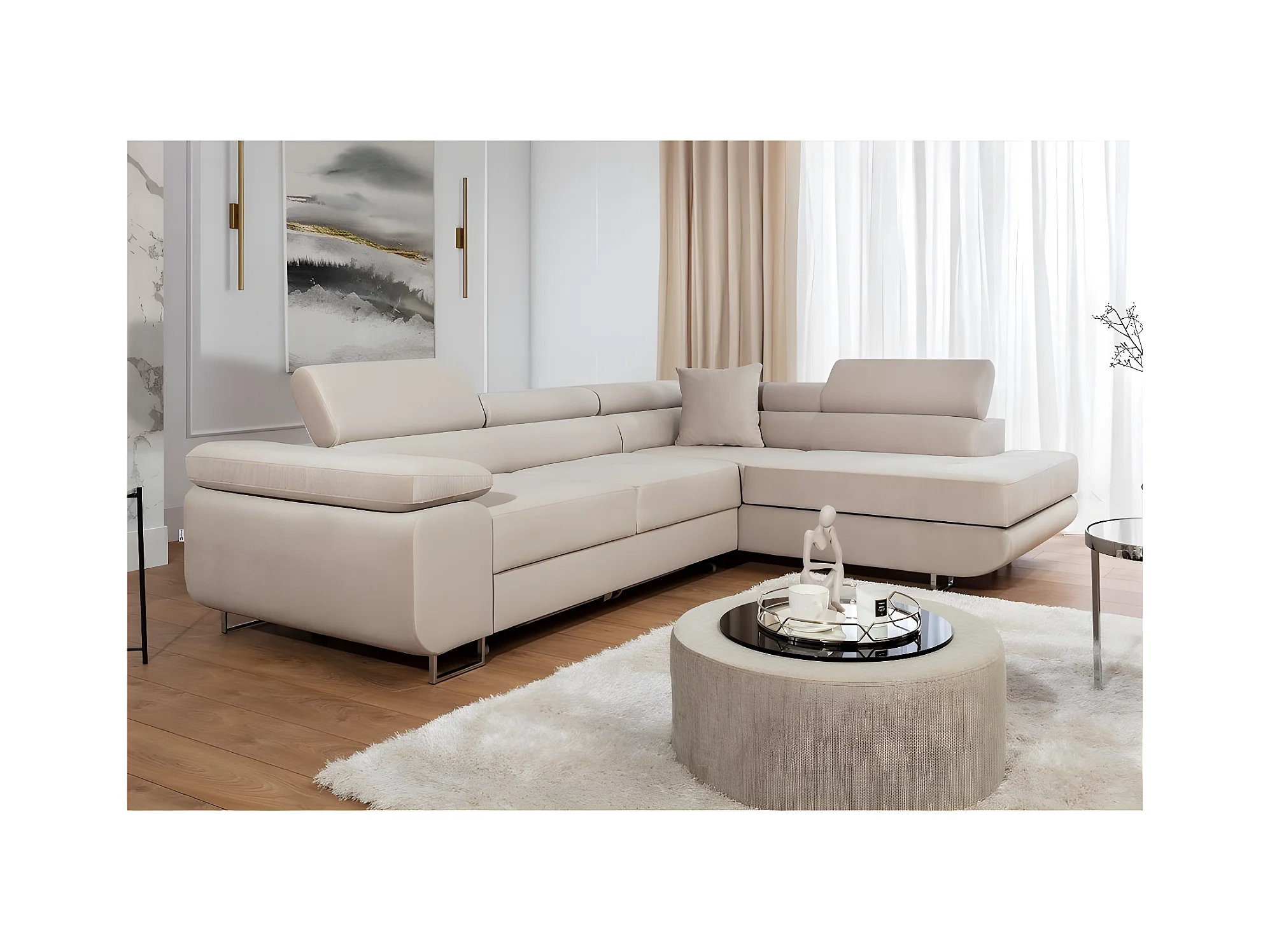 Canapé d'angle convertible en velours luxe 5 places, avec coffre, beige, angle droit (vu de face), ANNECY VELOURS