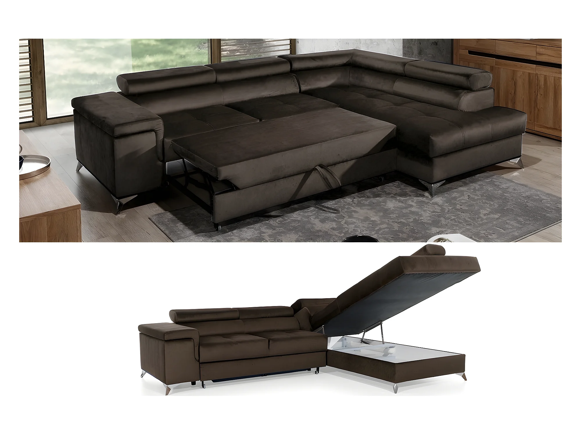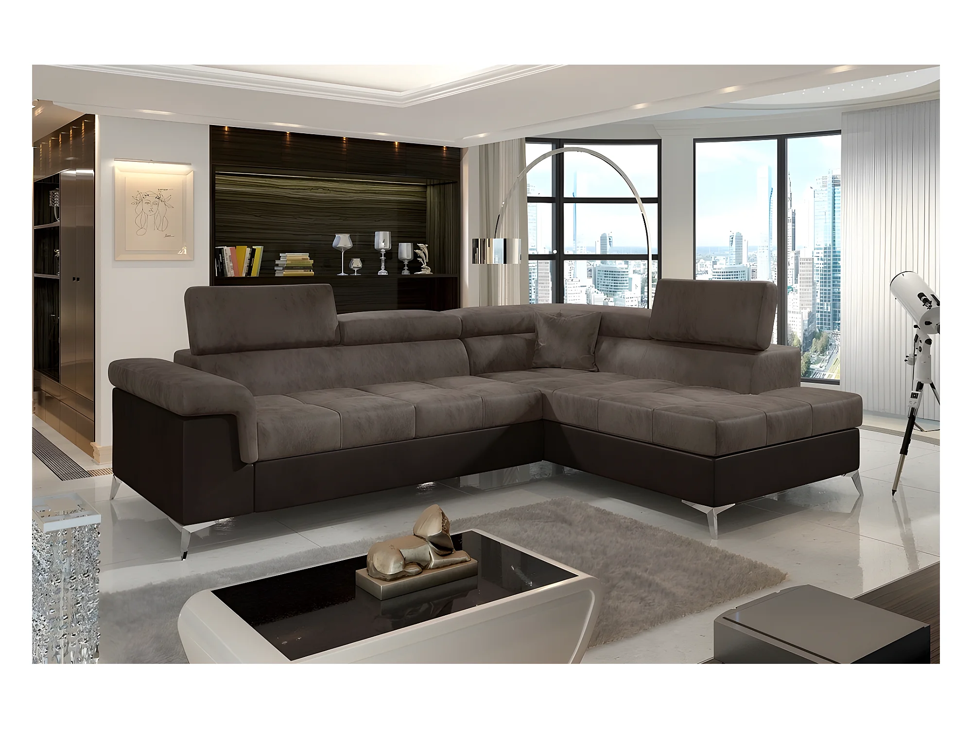 Canapé d'angle convertible - ERIKA - en tissu luxe 5 places, marron et chocolat, angle droit (vu de face)